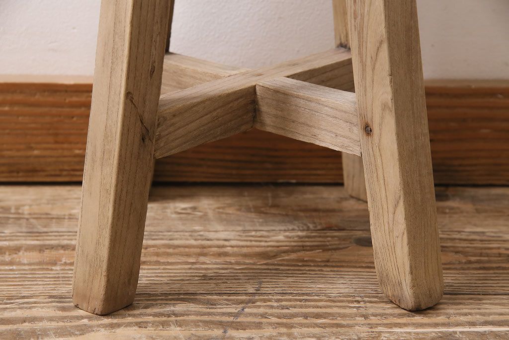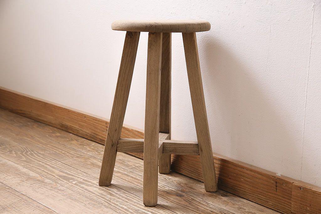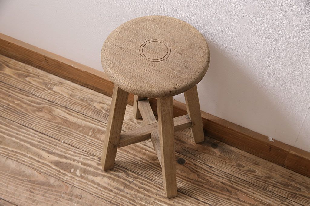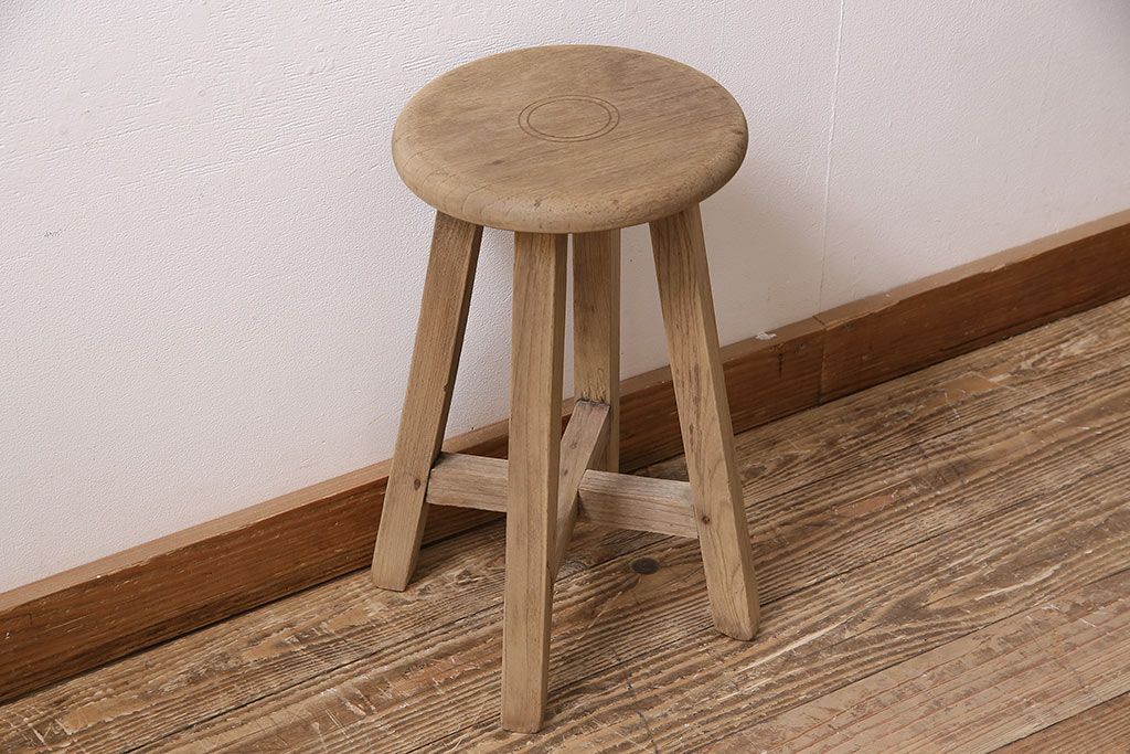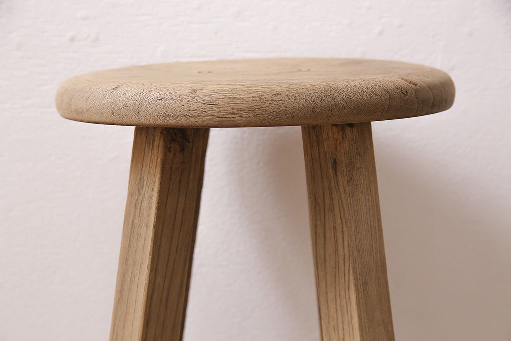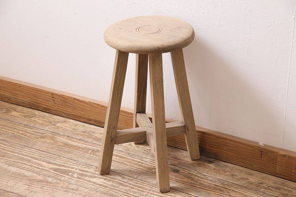 レトロ家具 ストリップド(剥離) ナラ材 木の質感が味わい深い木製スツール(椅子、花台)(R-046431)