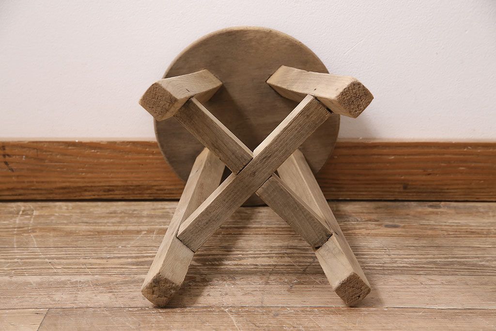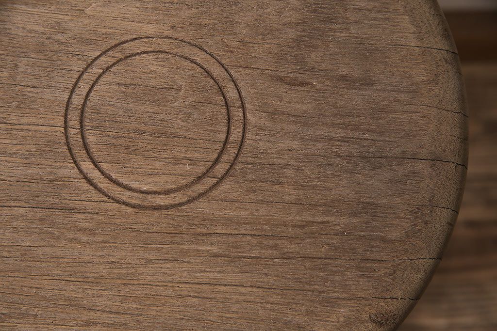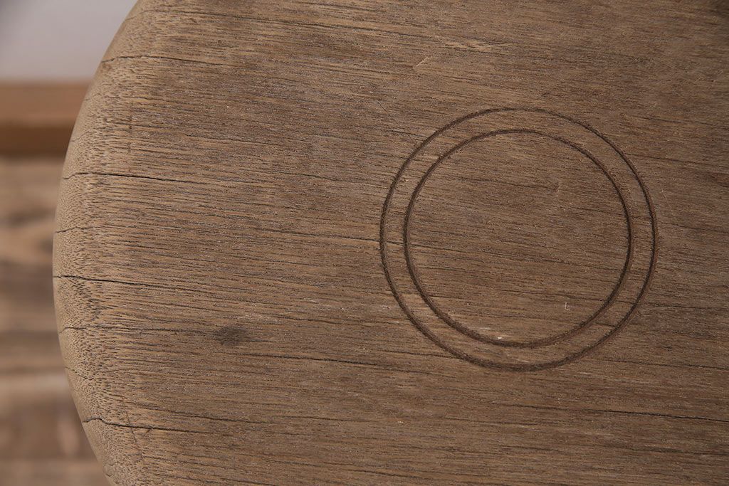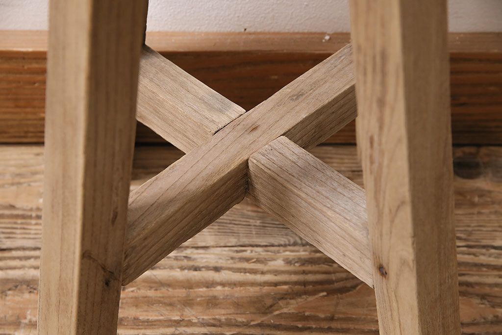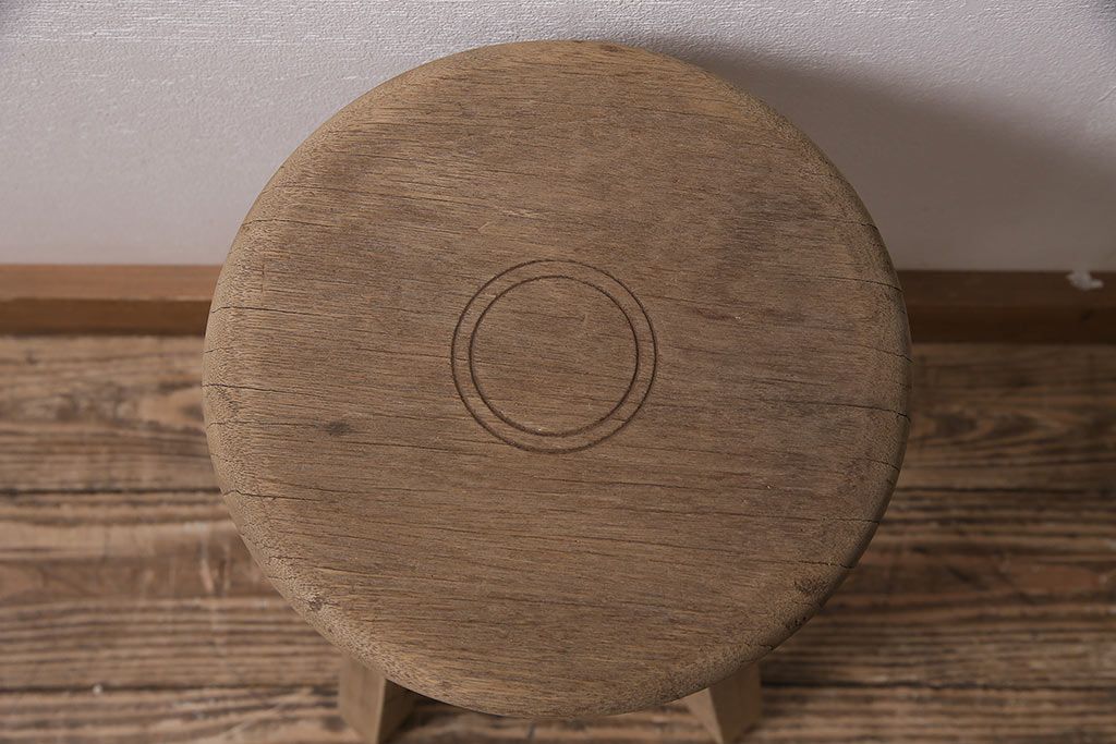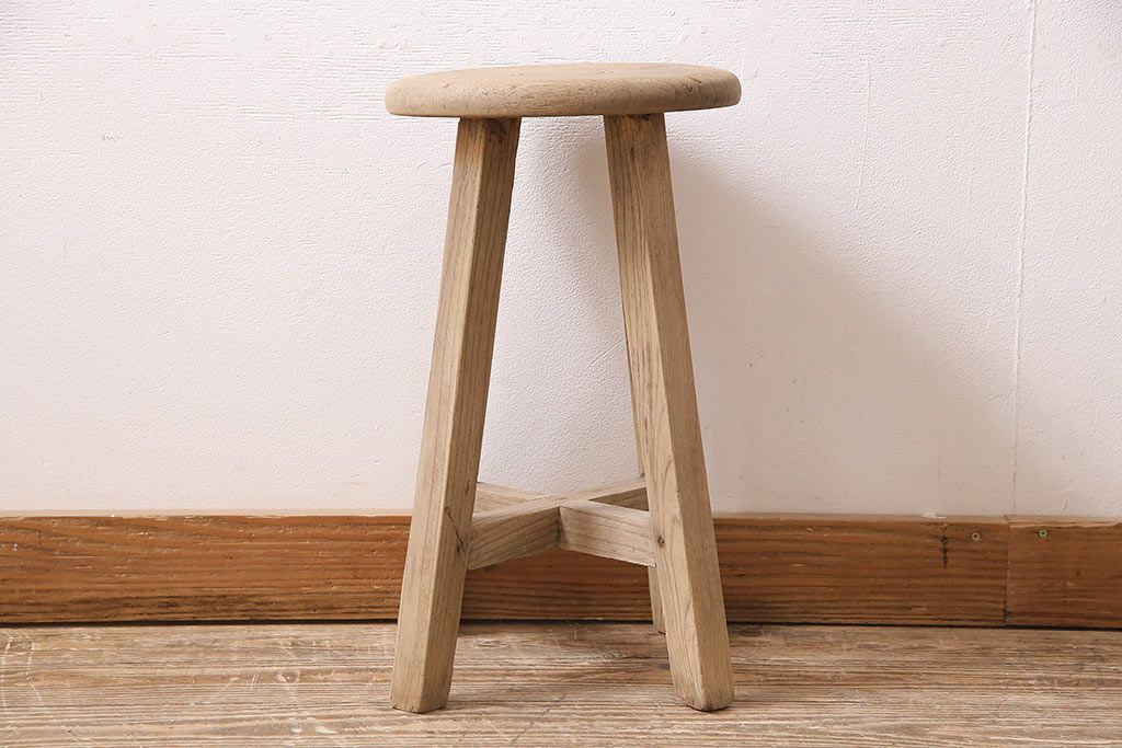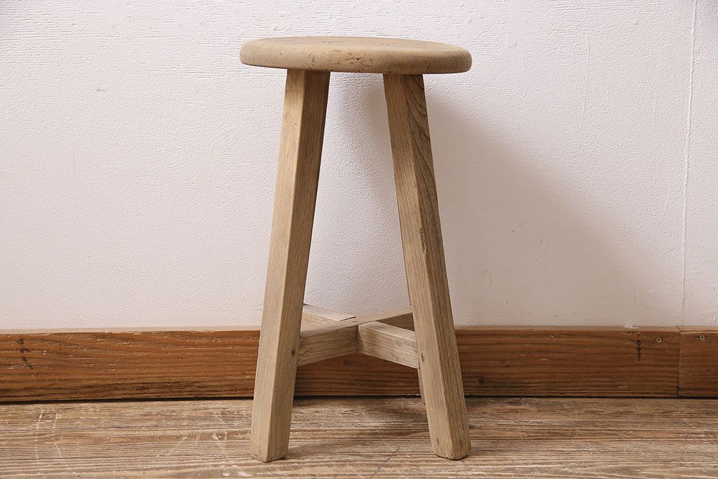 レトロ家具 ストリップド(剥離) ナラ材 木の質感が味わい深い木製スツール(椅子、花台)(R-046431)