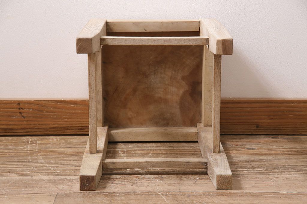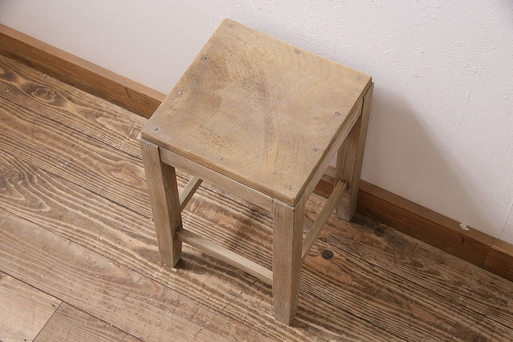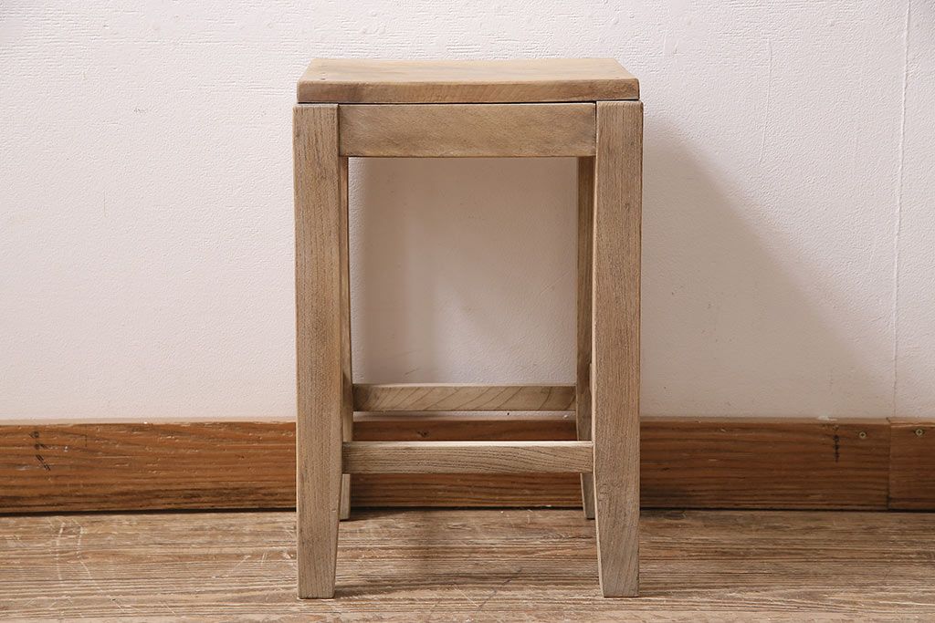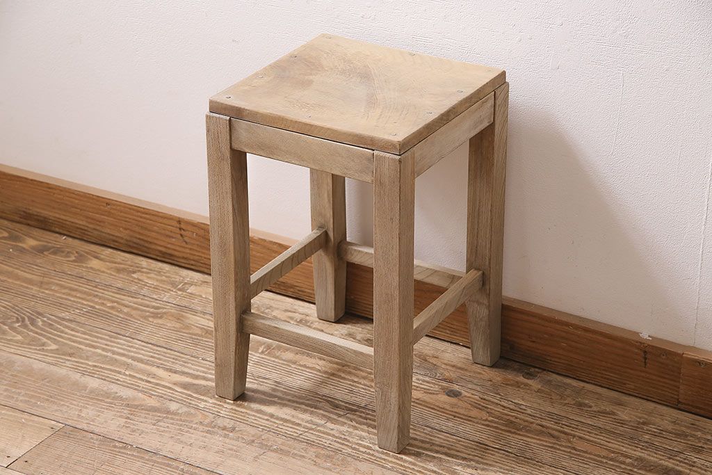 レトロ家具 ストリップド(剥離) ナラ材 木の質感が味わい深い木製の角スツール(椅子、花台)(R-046432)