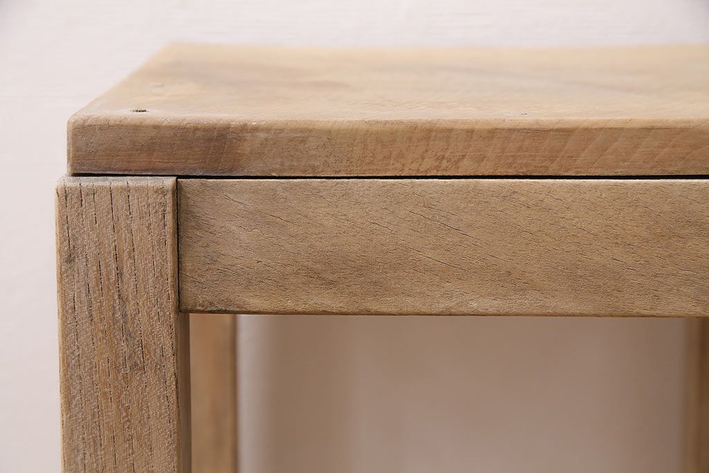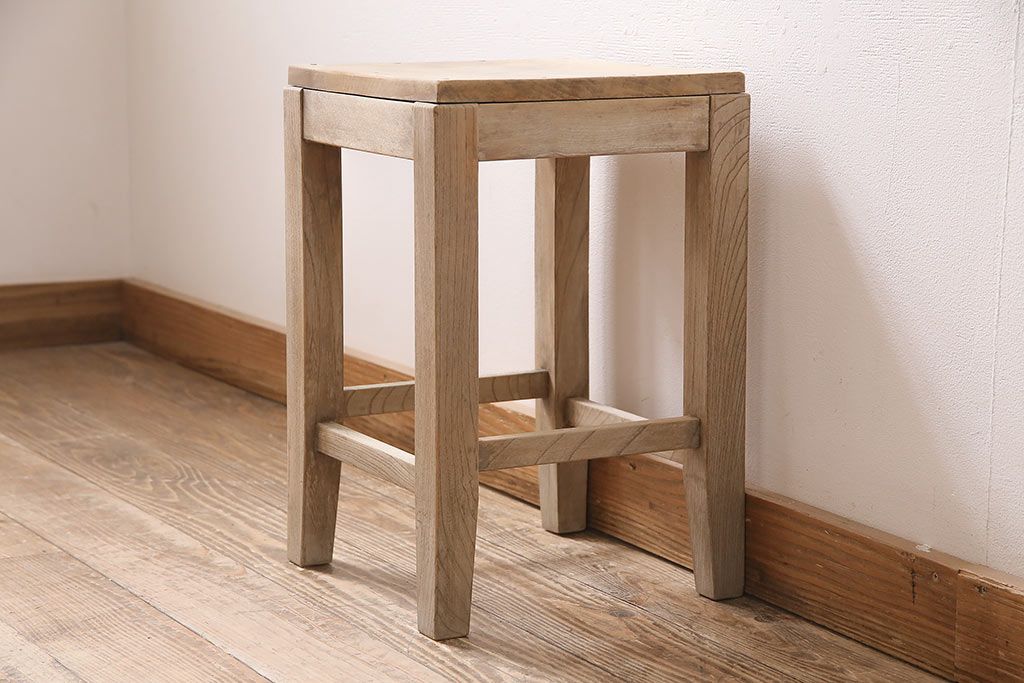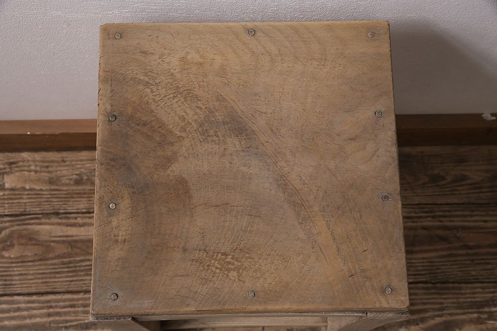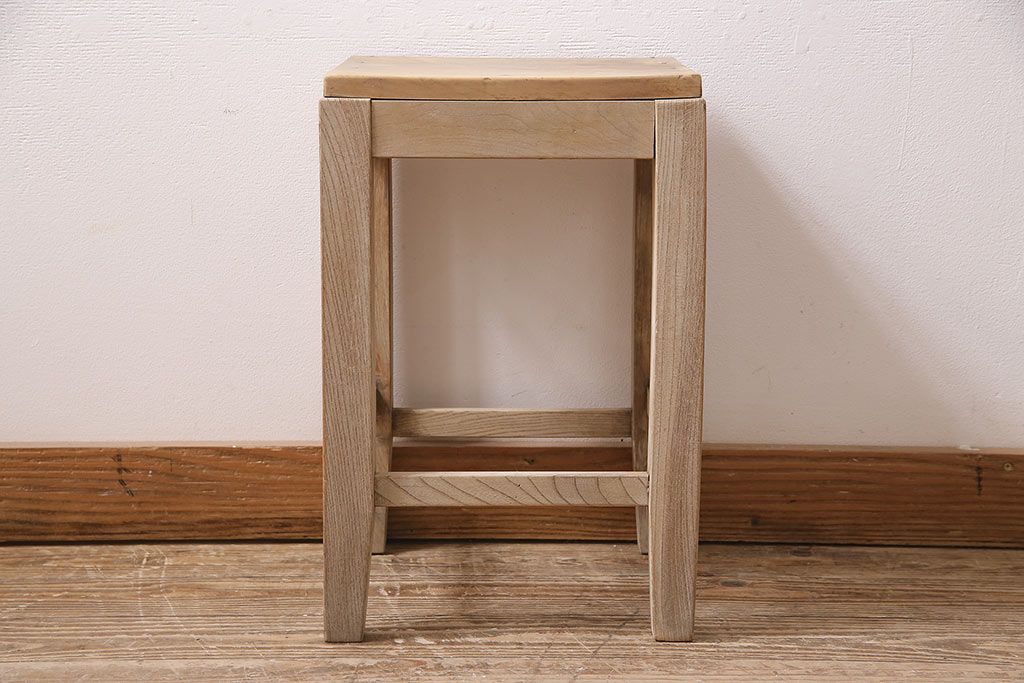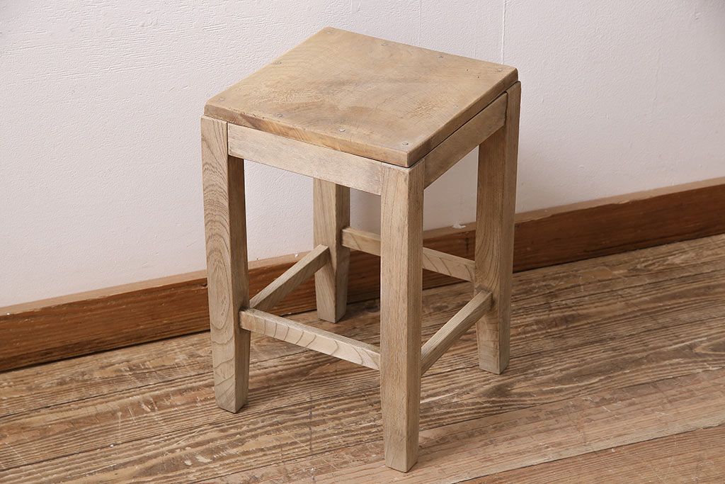 レトロ家具 ストリップド(剥離) ナラ材 木の質感が味わい深い木製の角スツール(椅子、花台)(R-046432)