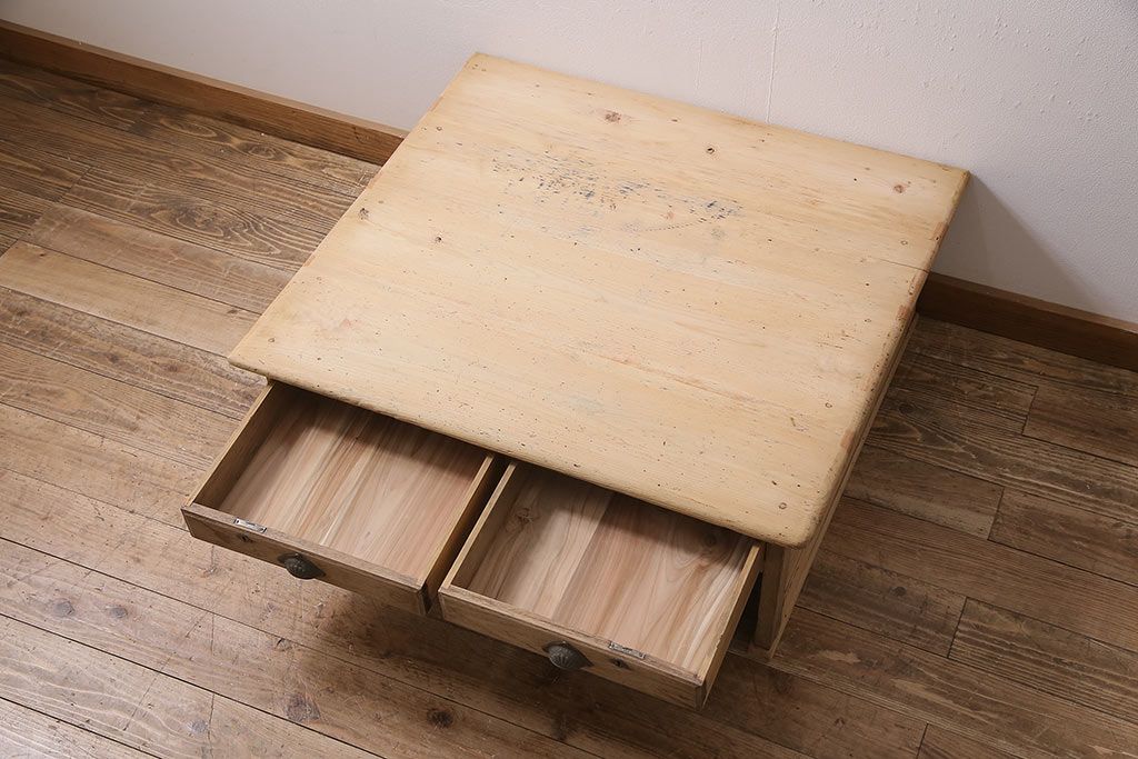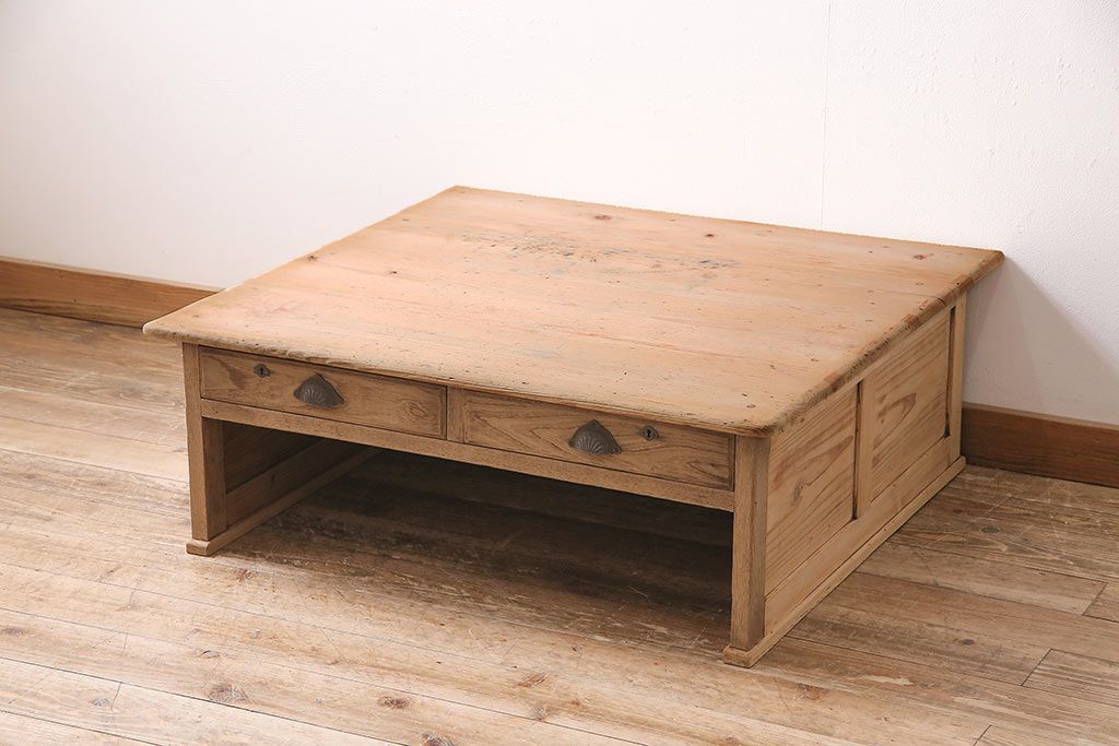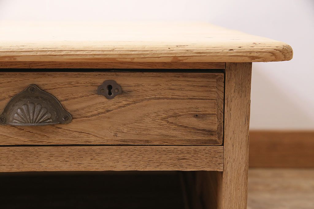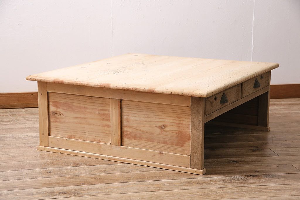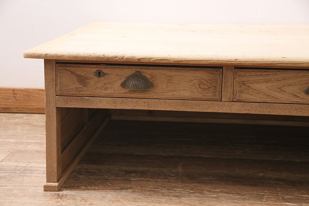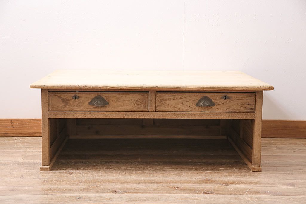 テーブル> センターテーブル・ローテーブル > アンティーク家具 昭和初期 ストリップド(剥離) 天板ヒノキ材 大振りサイズのシンプルな文机(ローテーブル、センターテーブル、座卓)(R-046444)