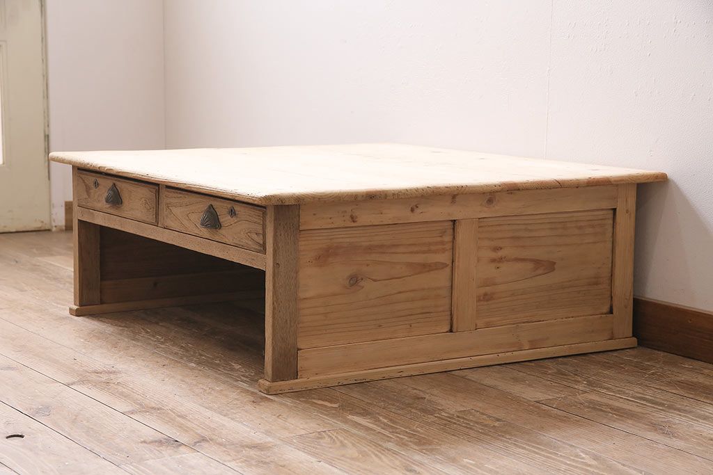ストリップド(剥離)家具 > アンティーク家具 昭和初期 ストリップド(剥離) 天板ヒノキ材 大振りサイズのシンプルな文机(ローテーブル、センターテーブル、座卓)(R-046444)
