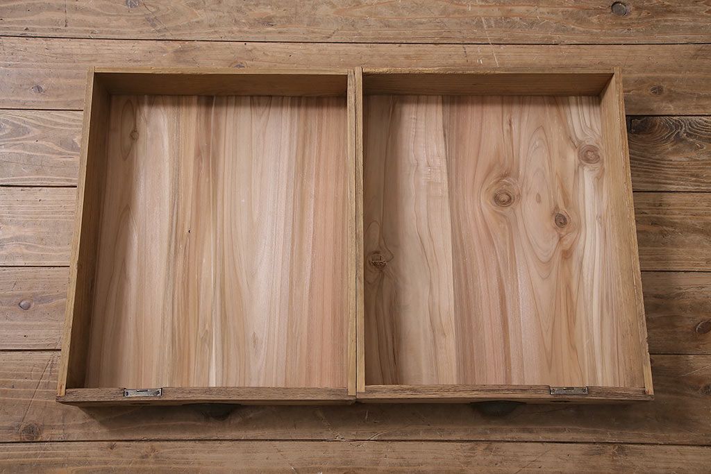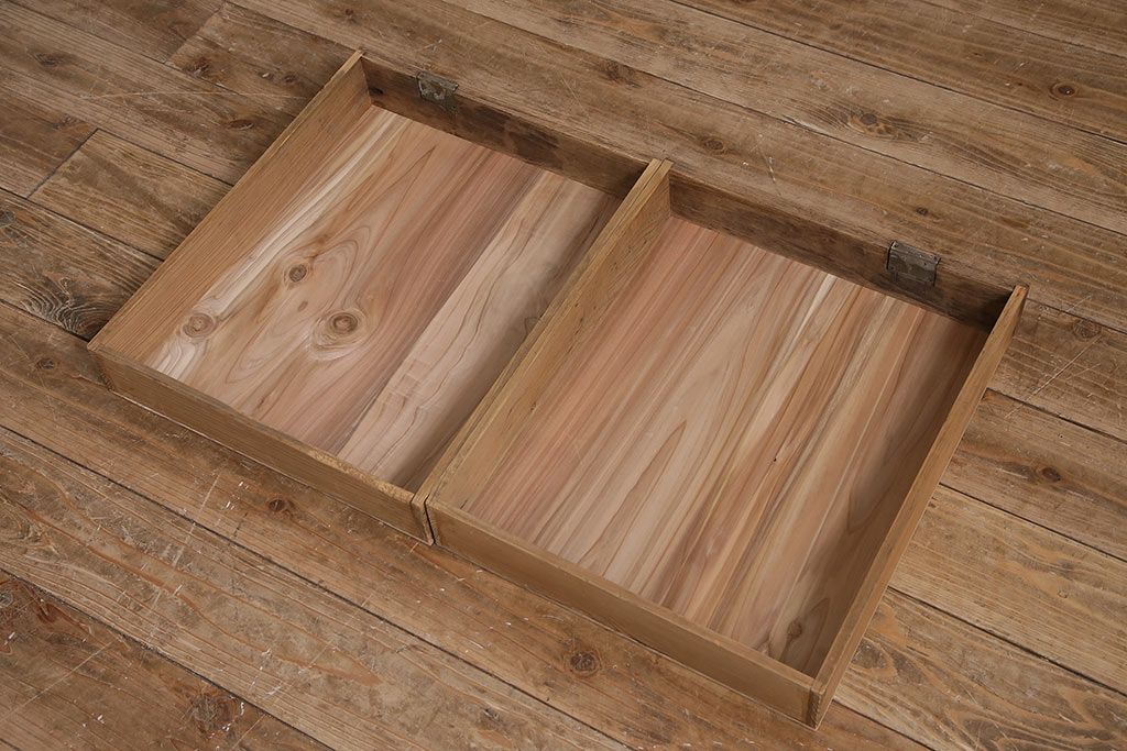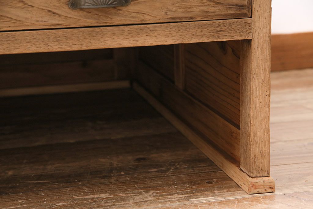 デスク> 文机・座机 > アンティーク家具 昭和初期 ストリップド(剥離) 天板ヒノキ材 大振りサイズのシンプルな文机(ローテーブル、センターテーブル、座卓)(R-046444)