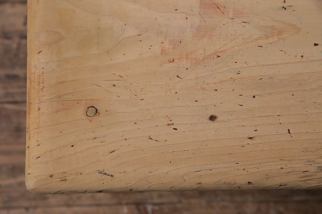 テーブル> 座卓 > アンティーク家具 昭和初期 ストリップド(剥離) 天板ヒノキ材 大振りサイズのシンプルな文机(ローテーブル、センターテーブル、座卓)(R-046444)