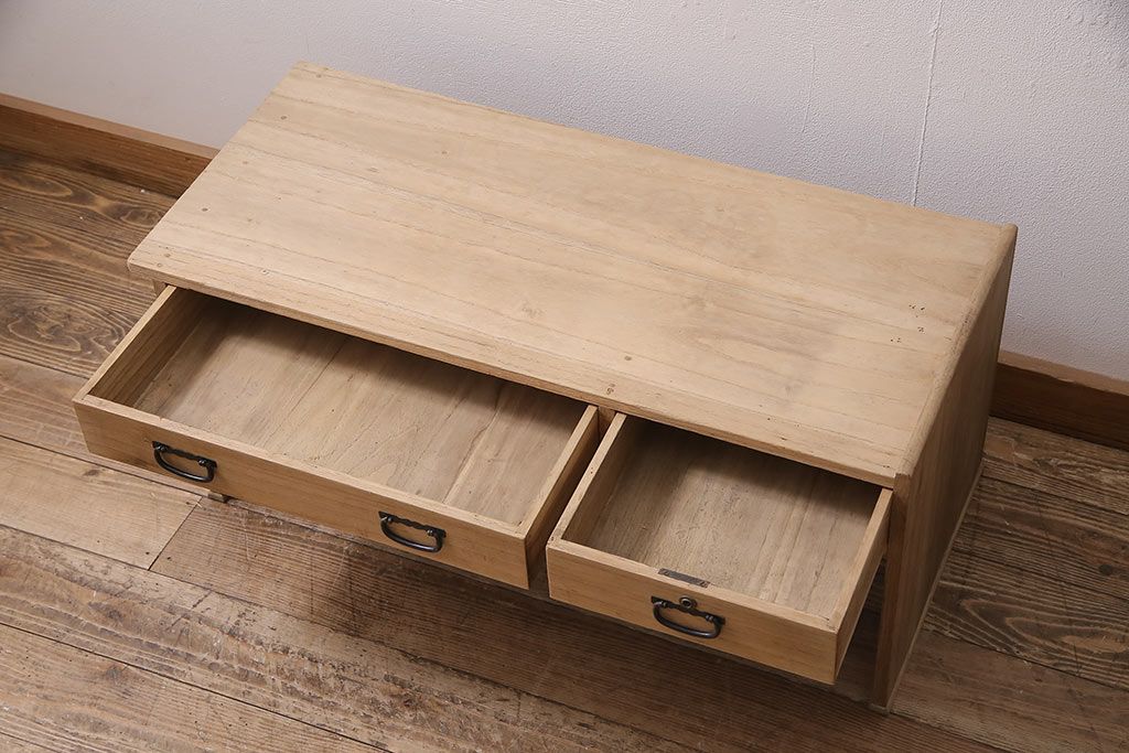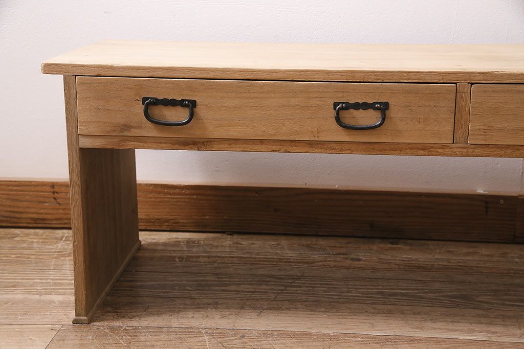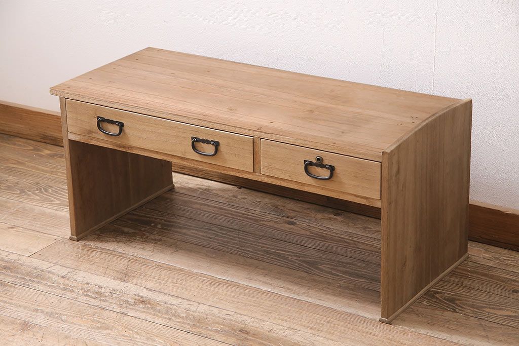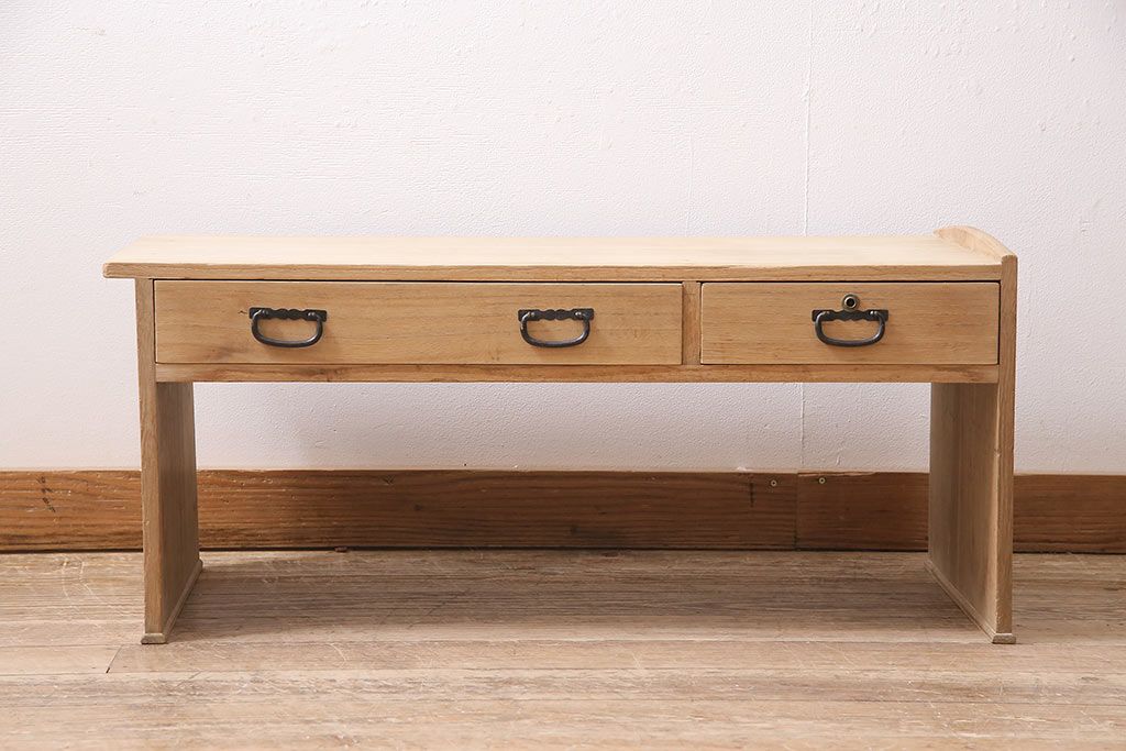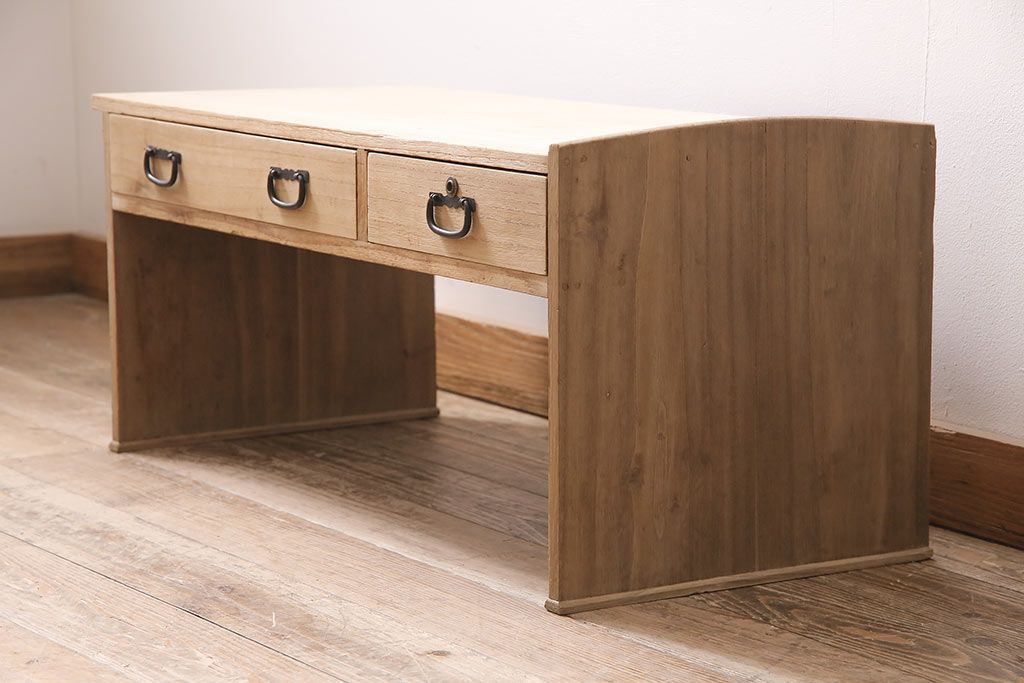 デスク> 文机・座机 > アンティーク家具 昭和初期 ストリップド(剥離) 桐材 引手金具がアクセントの文机(ローテーブル、センターテーブル、座卓)(R-046442)