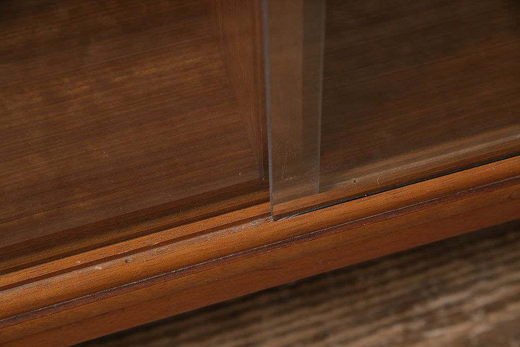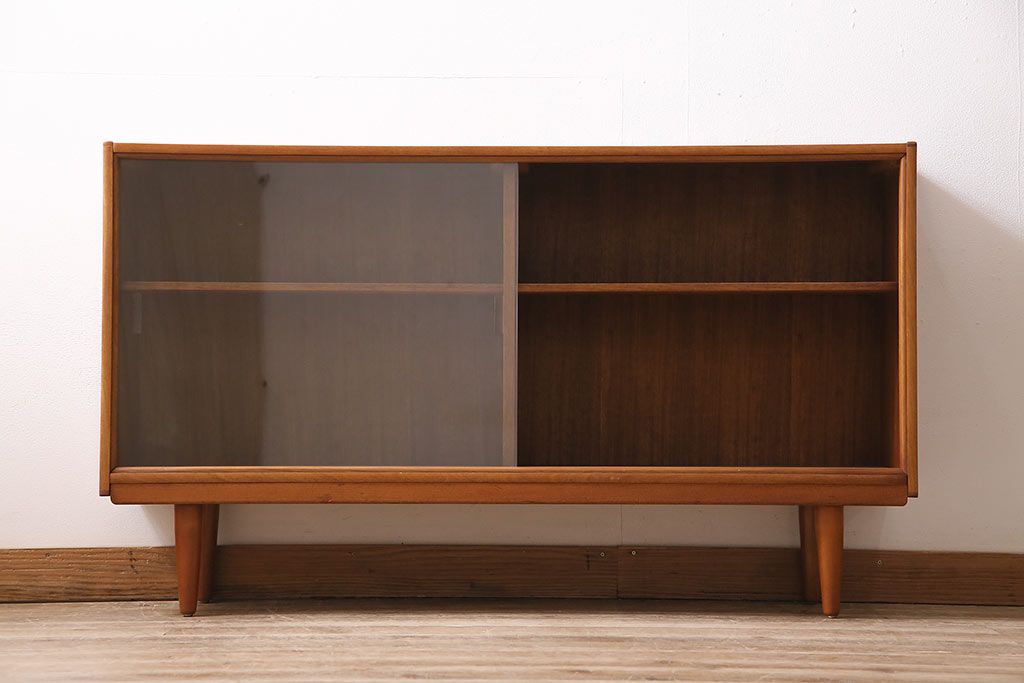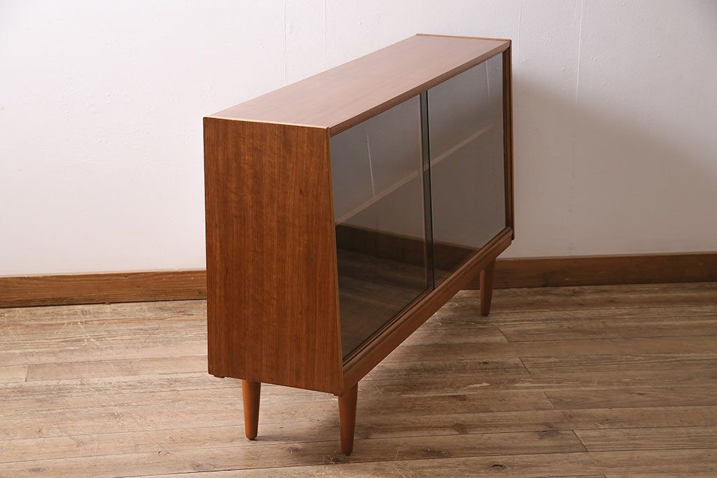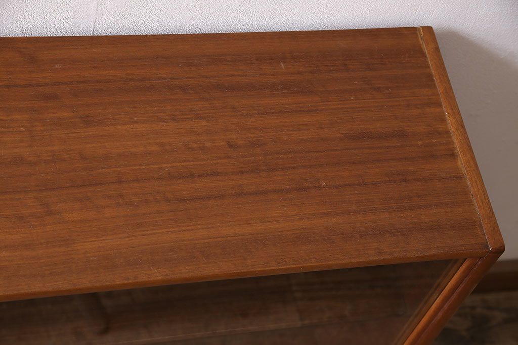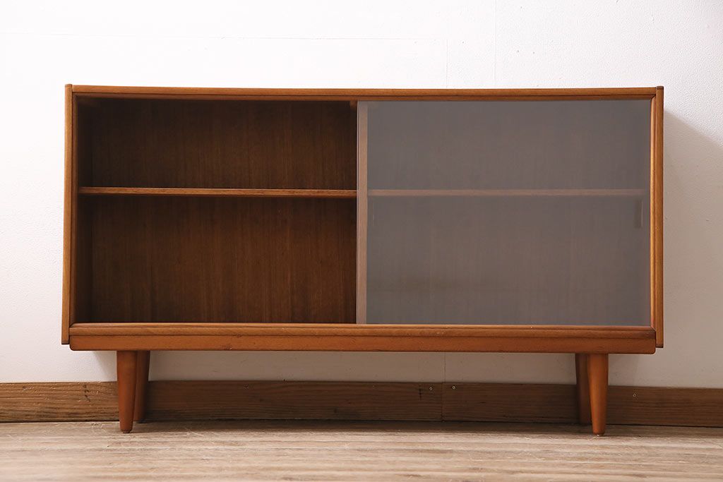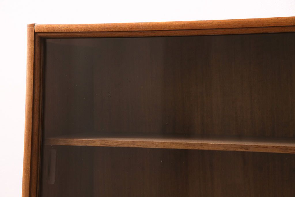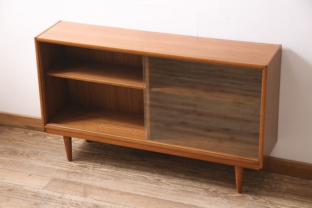 北欧ビンテージ チーク材 ガラス戸のシンプルなサイドボード(キャビネット、本箱、飾り棚、カップボード)(R-046467)