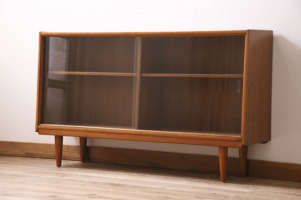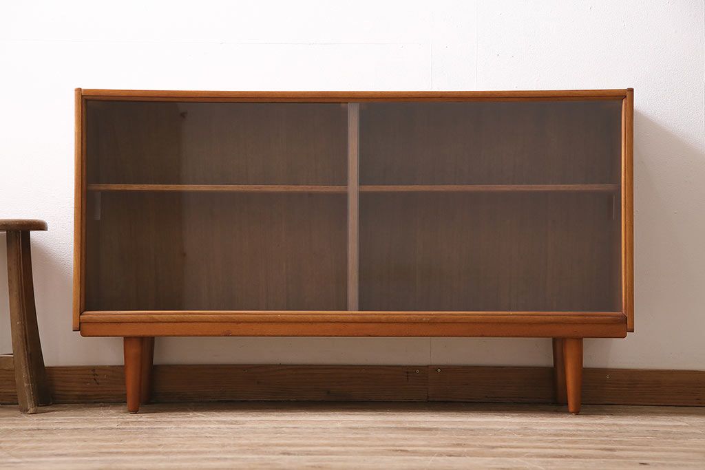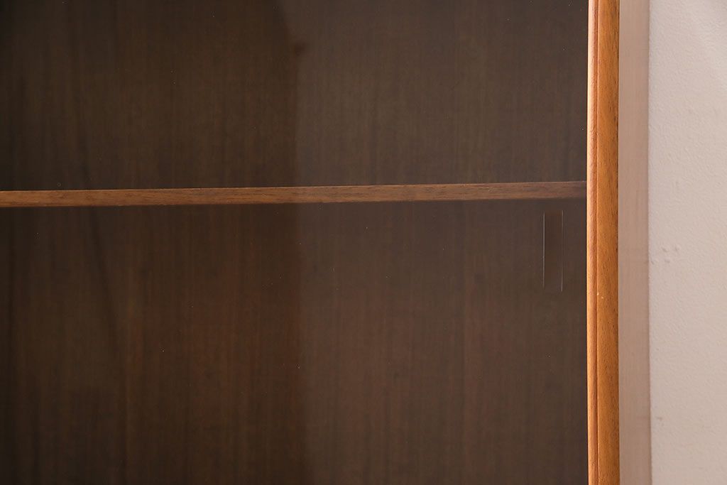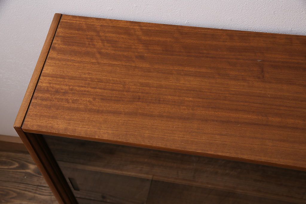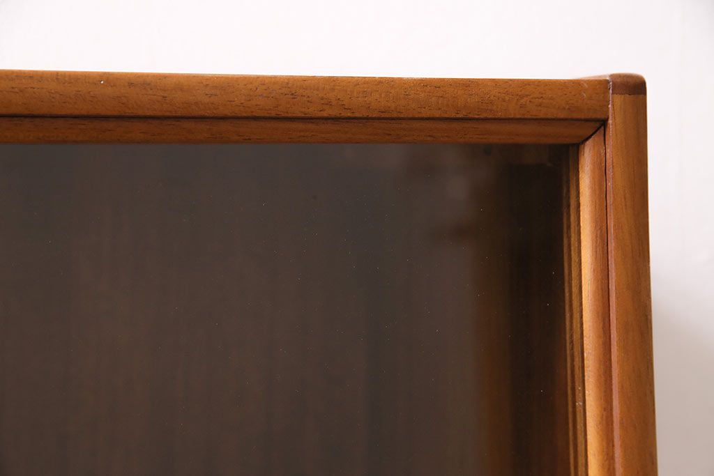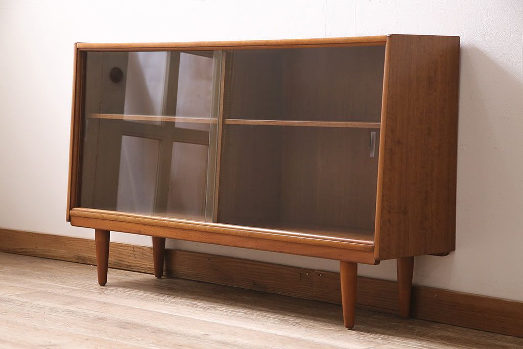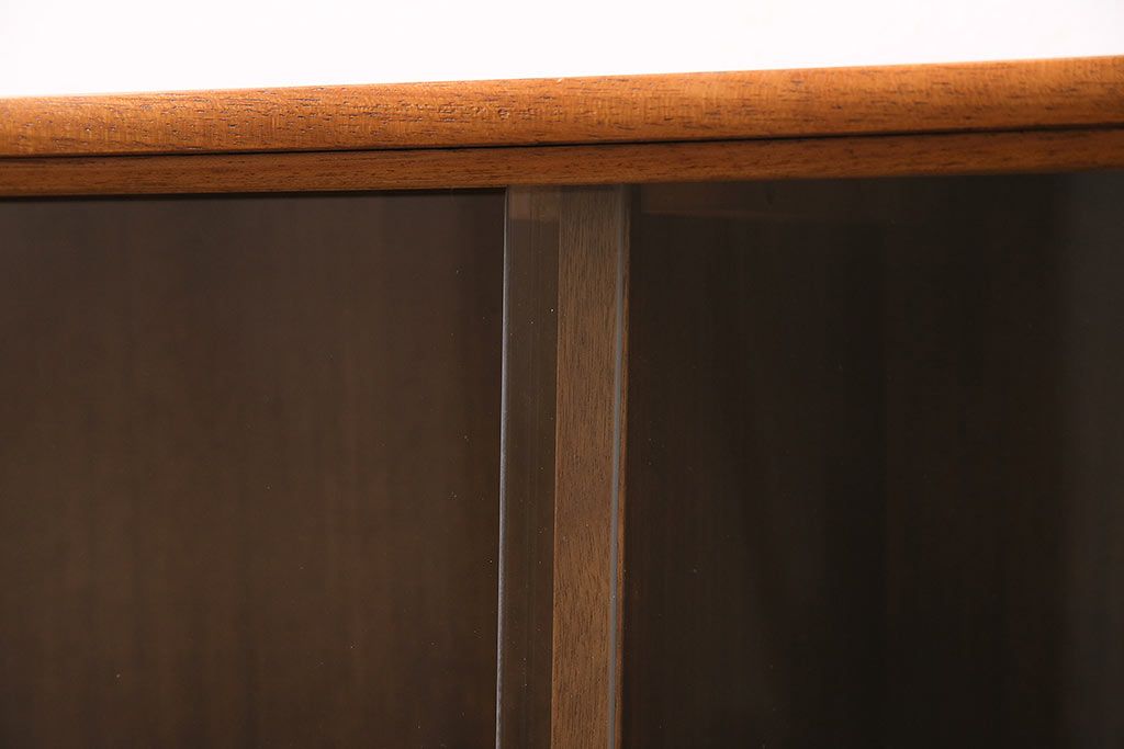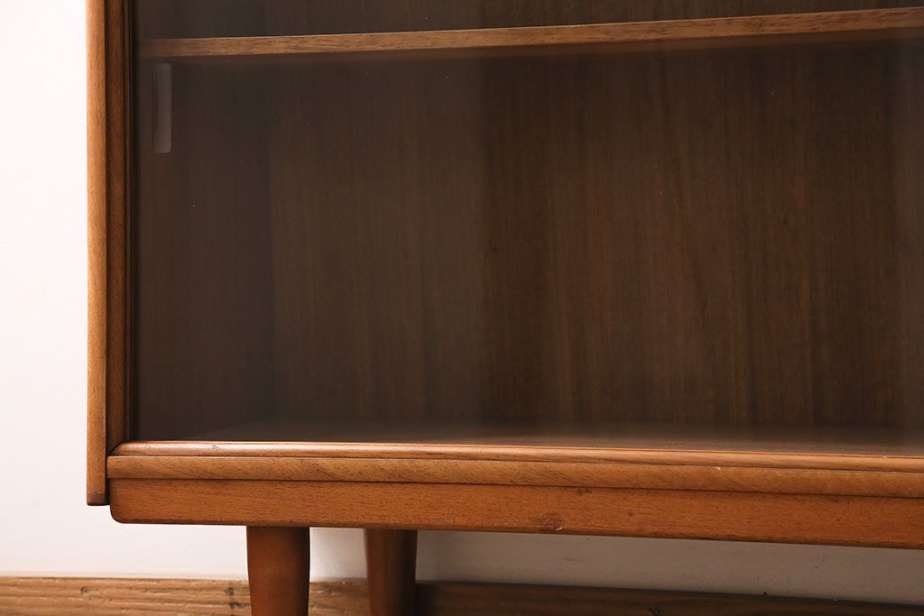 北欧ビンテージ チーク材 ガラス戸のシンプルなサイドボード(キャビネット、本箱、飾り棚、カップボード)(R-046467)