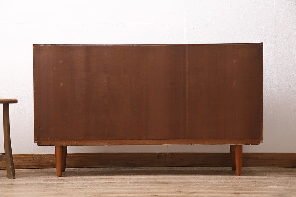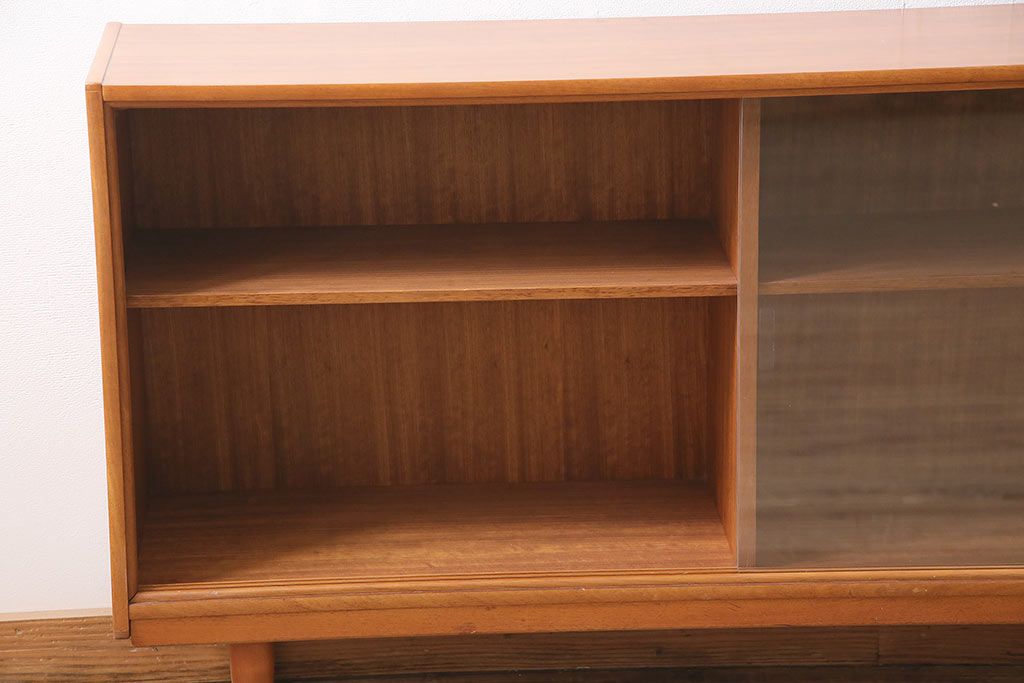 北欧ビンテージ チーク材 ガラス戸のシンプルなサイドボード(キャビネット、本箱、飾り棚、カップボード)(R-046467)です。