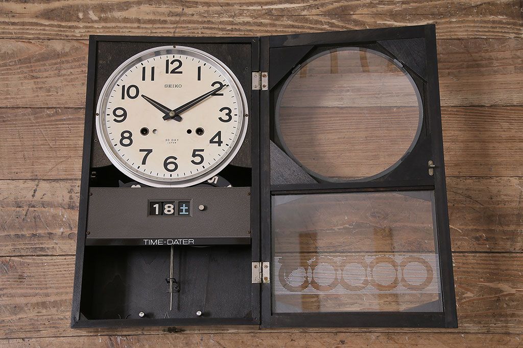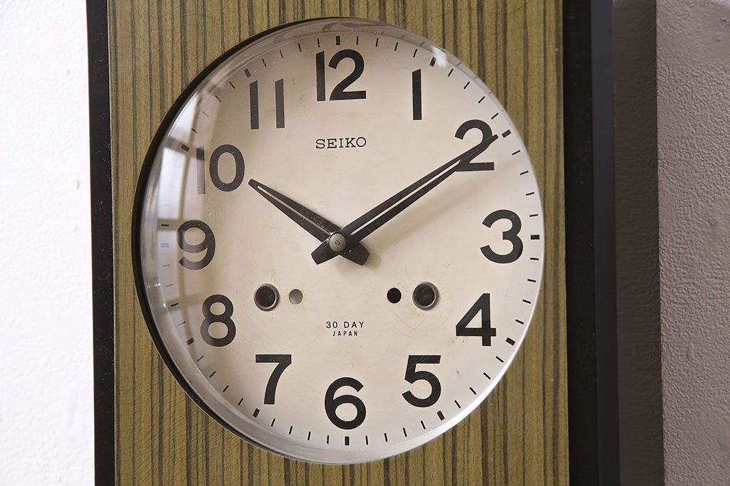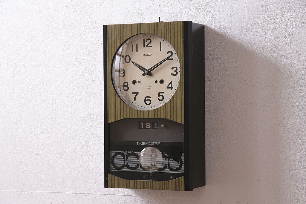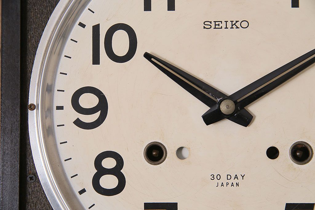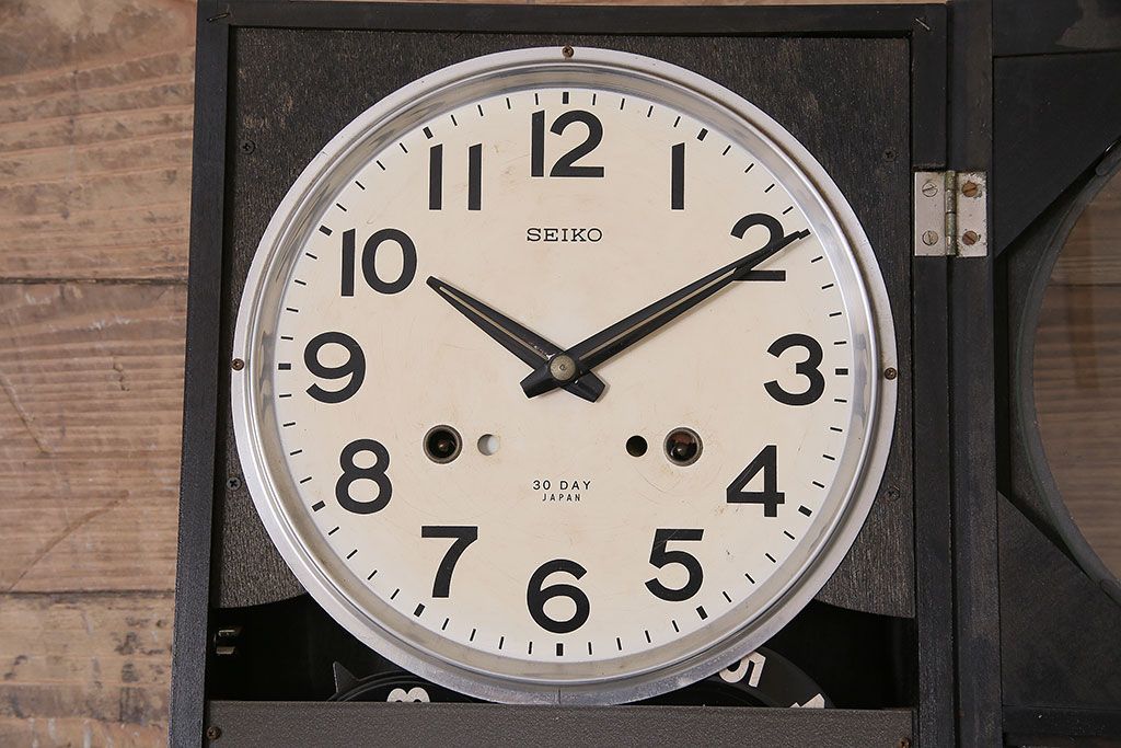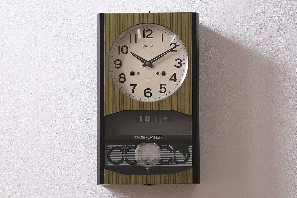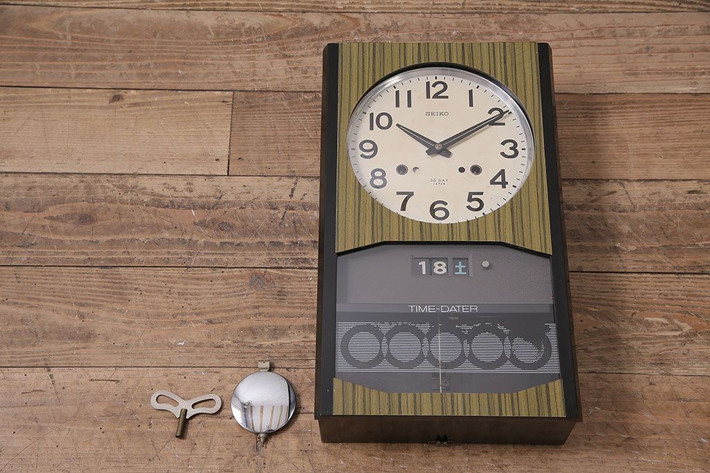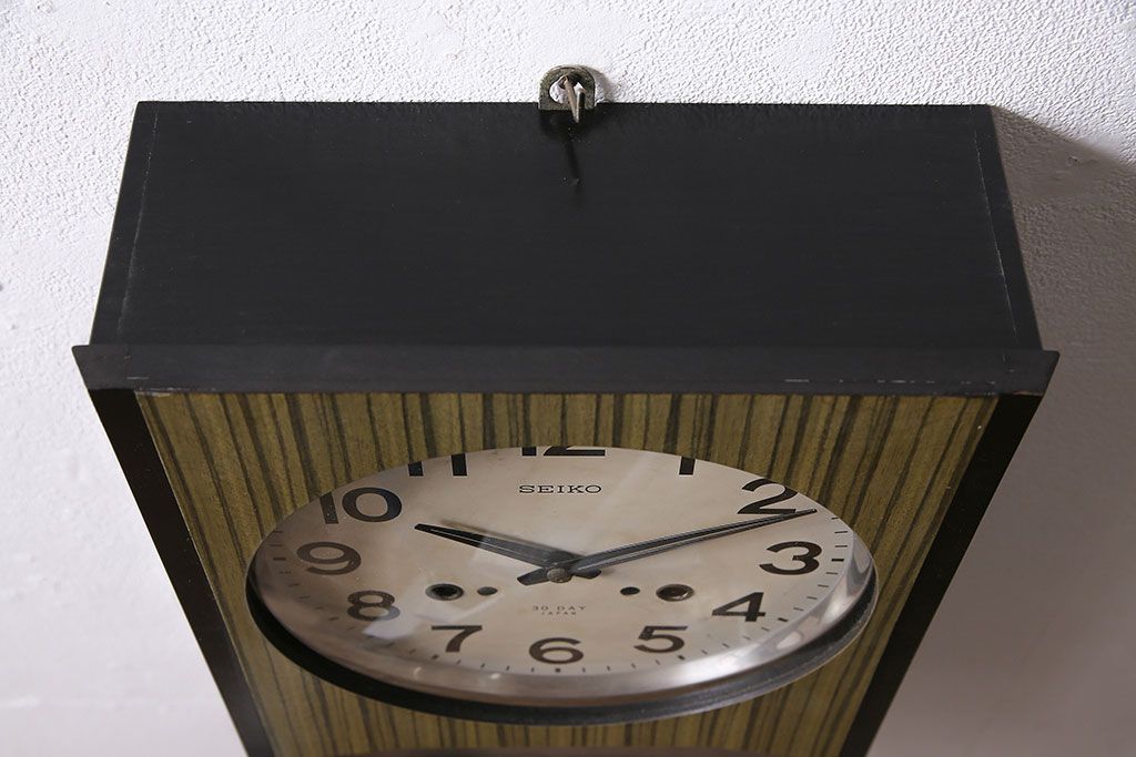 時計> 掛け時計 > アンティーク時計 昭和中期 SEIKO(セイコー) ゼンマイ式 カレンダー付き 30DAY 渋いデザインの掛け時計(柱時計、振り子時計)(R-046512)