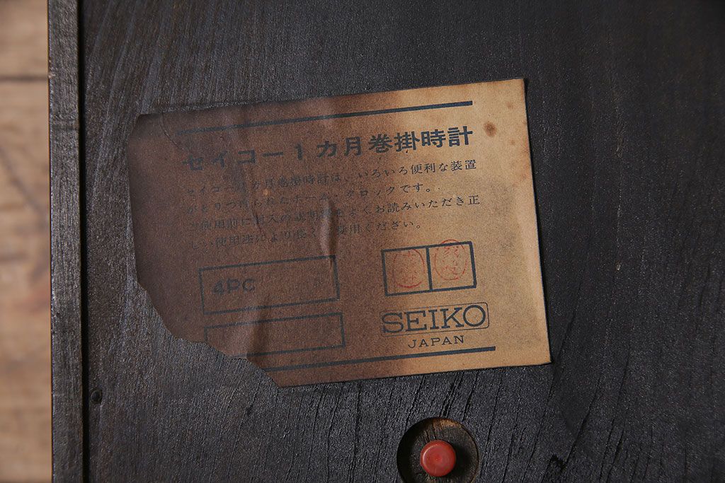 アンティーク時計 昭和中期 SEIKO(セイコー) ゼンマイ式 カレンダー付き 30DAY 渋いデザインの掛け時計(柱時計、振り子時計)(R-046512)