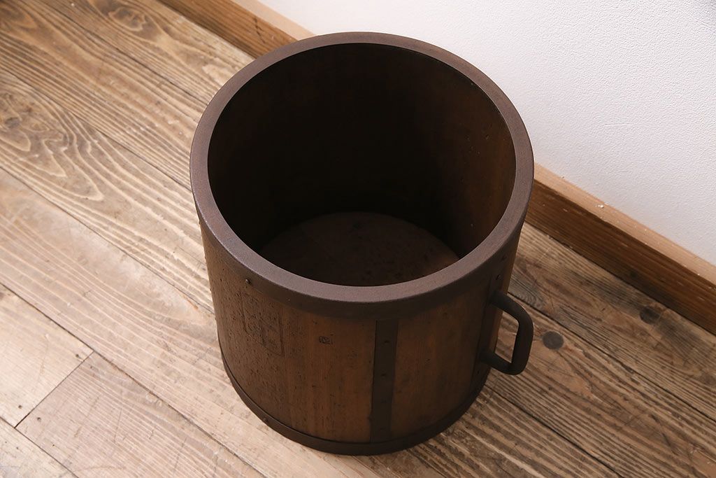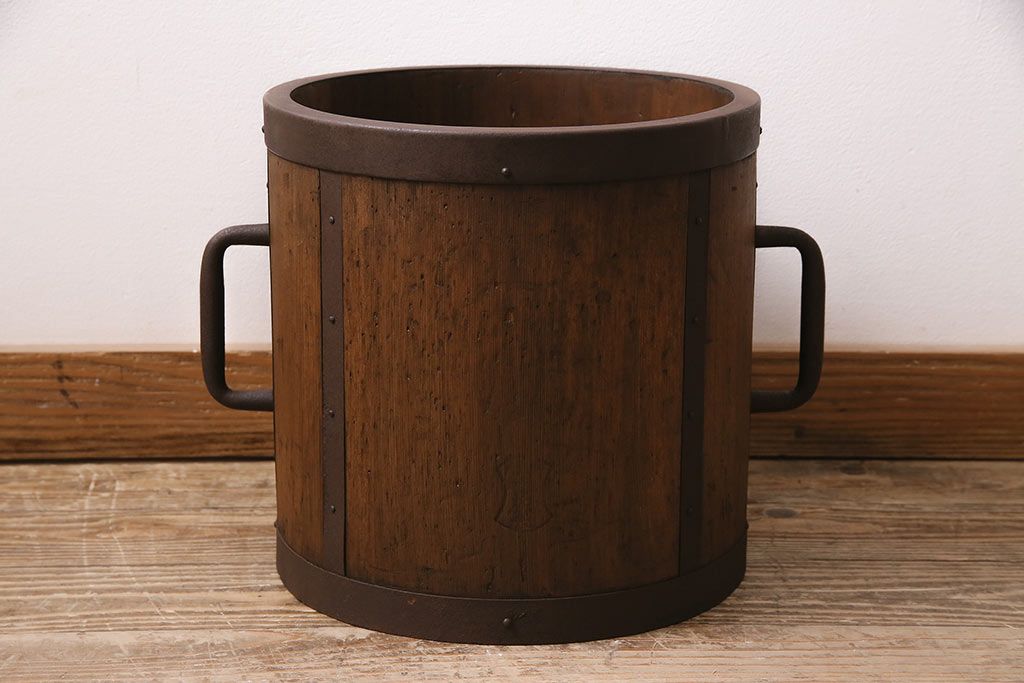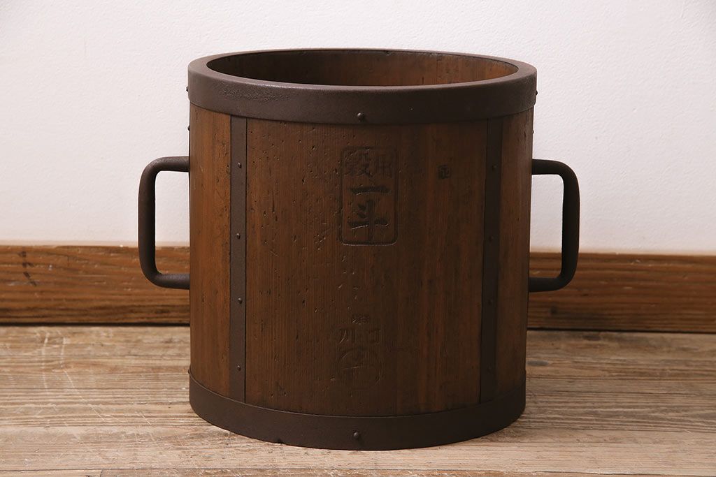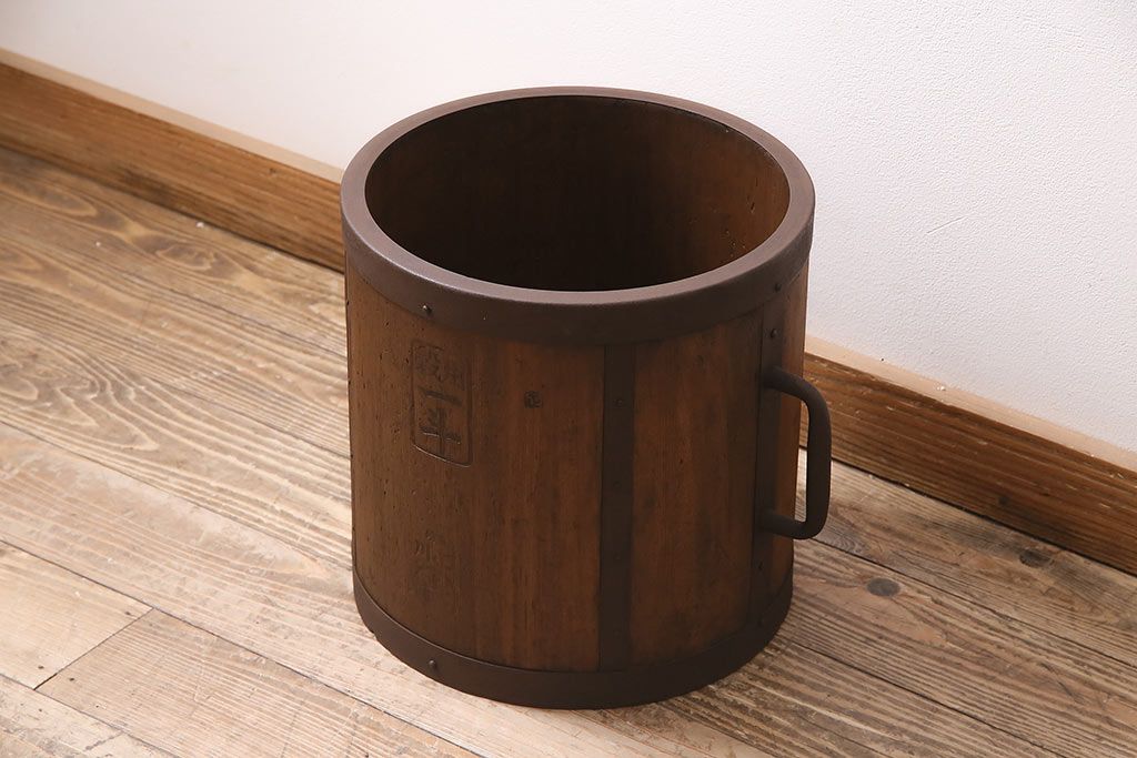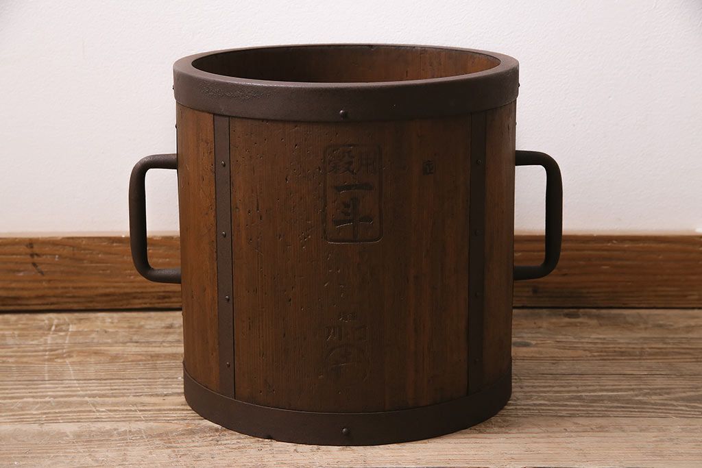 アンティーク雑貨 古い木の風合いが味わい深い取っ手付きの一斗升(マス)(R-046495)