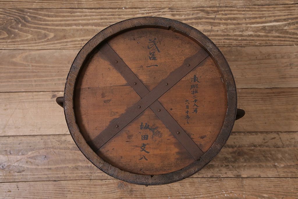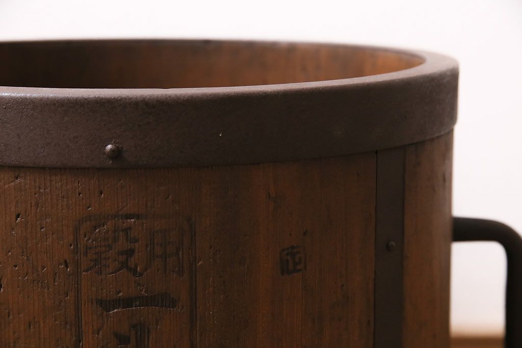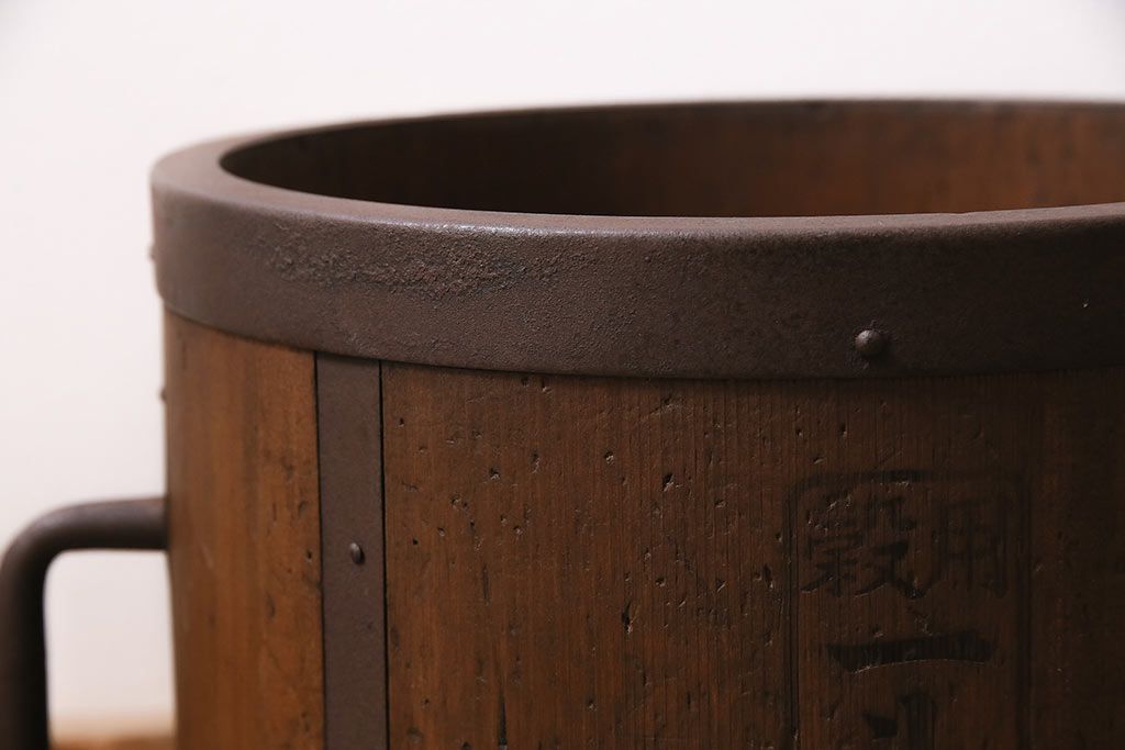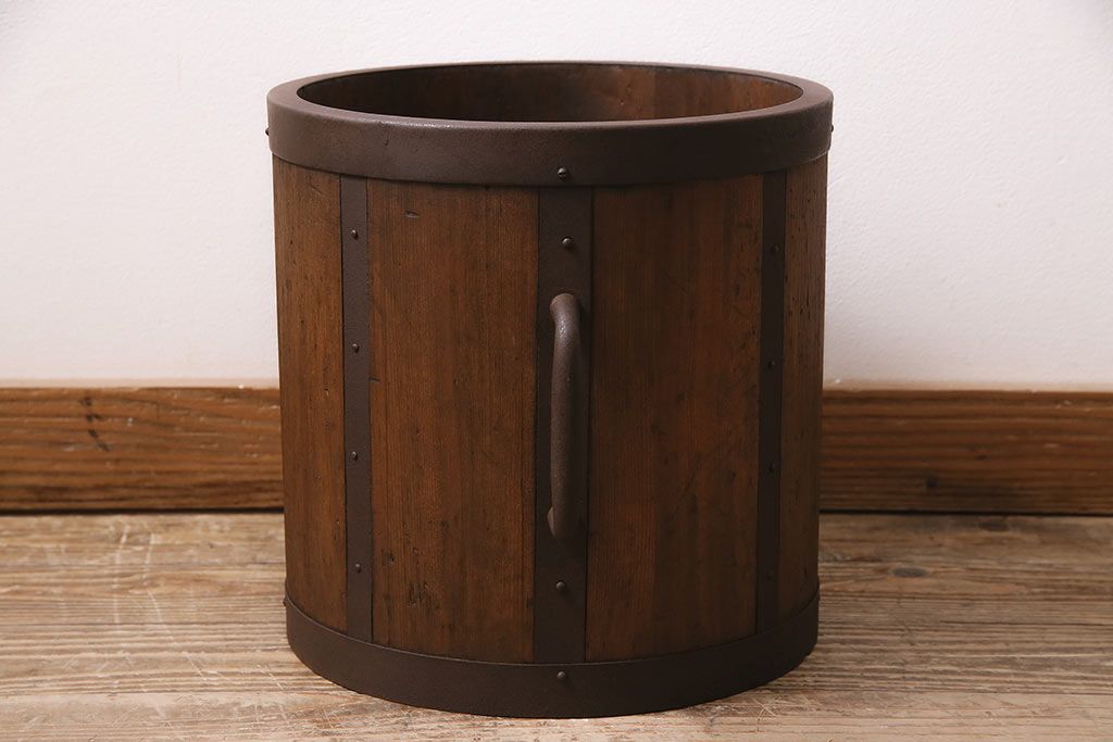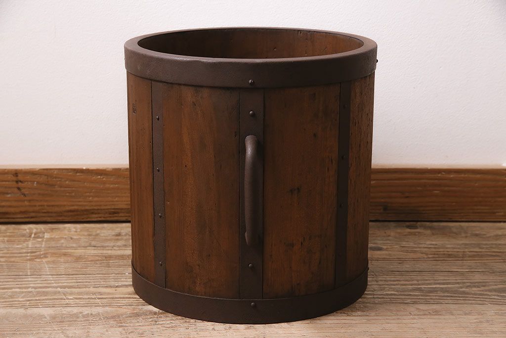 アンティーク雑貨 古い木の風合いが味わい深い取っ手付きの一斗升(マス)(R-046495)