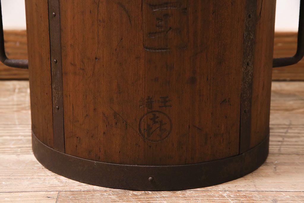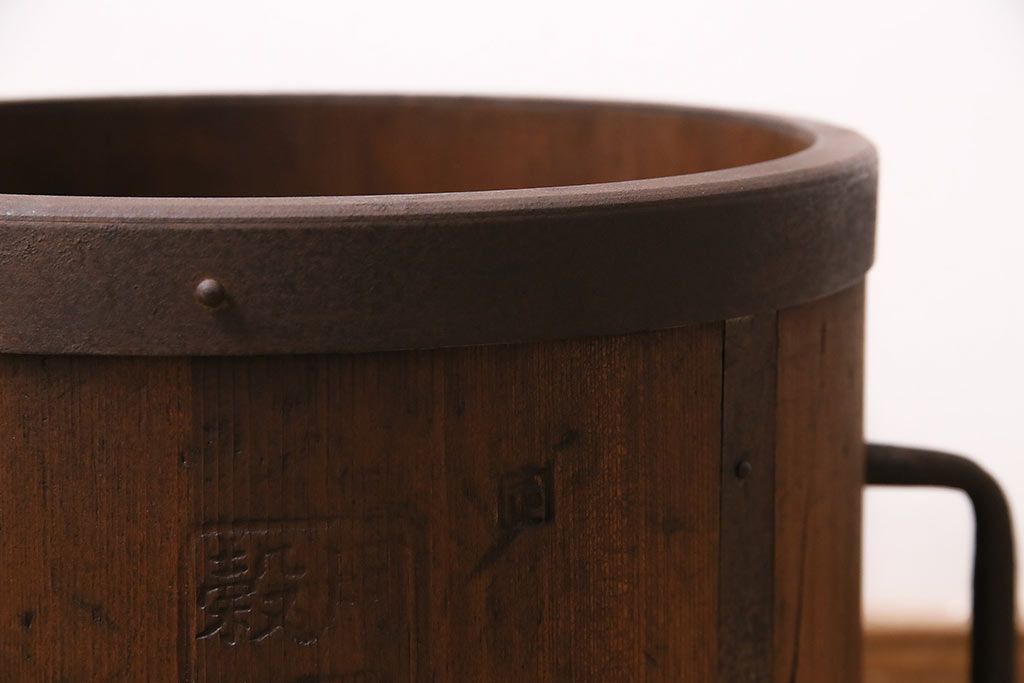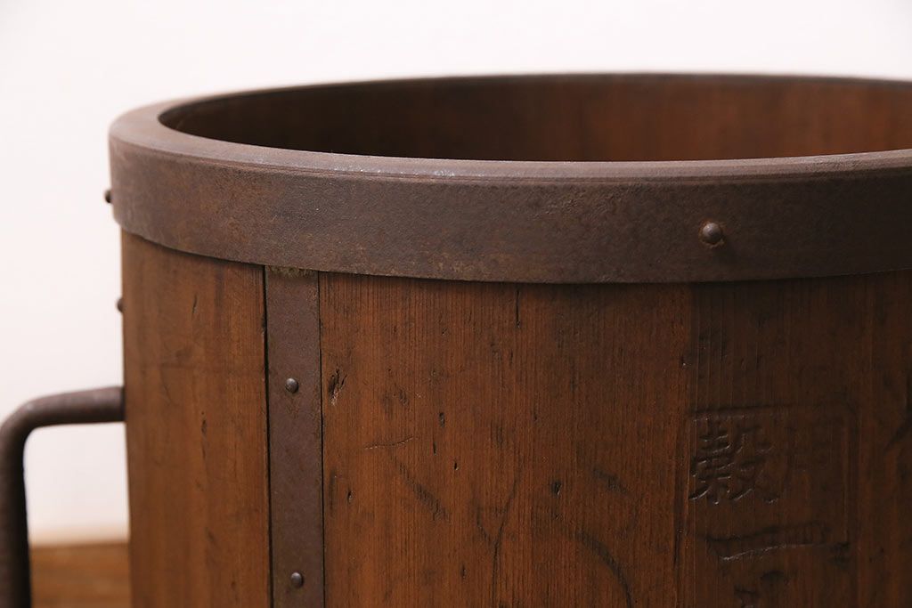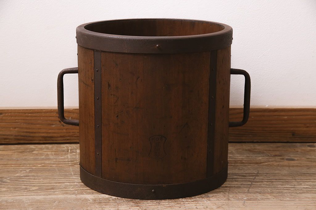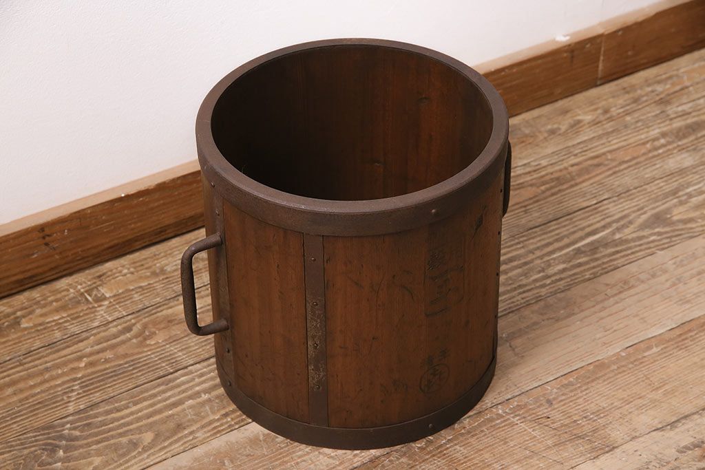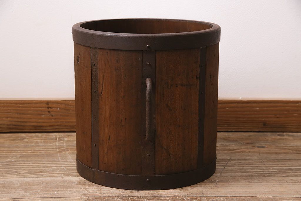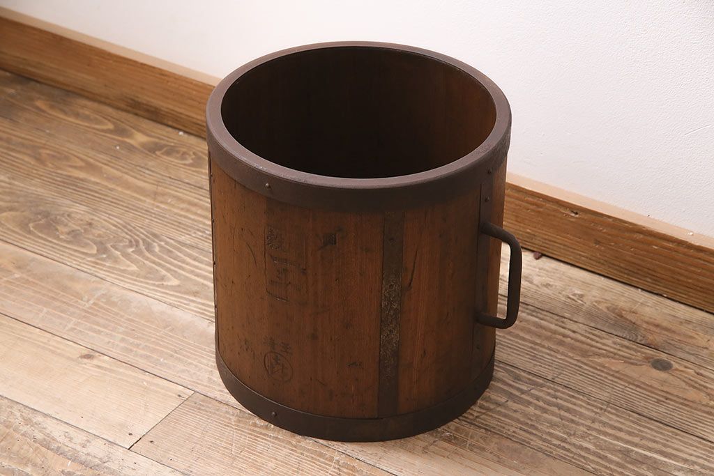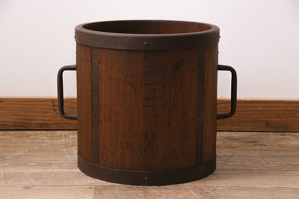 アンティーク雑貨 古い木の風合いが味わい深い取っ手付きの一斗升(マス)(R-046496)