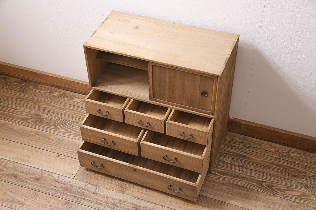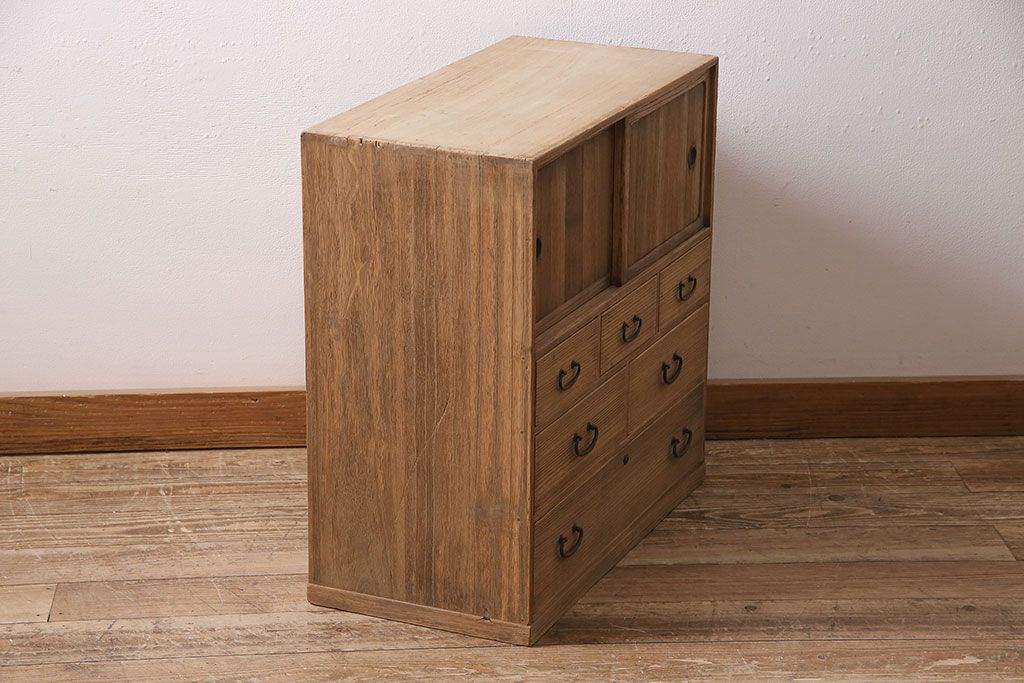 ラフジュ工房> ストリップド(剥離)家具 > アンティーク家具 昭和初期 ストリップド(剥離) 桐材 可愛らしいサイズ感が魅力の小タンス(戸棚、収納棚、チェスト)(R-046589)