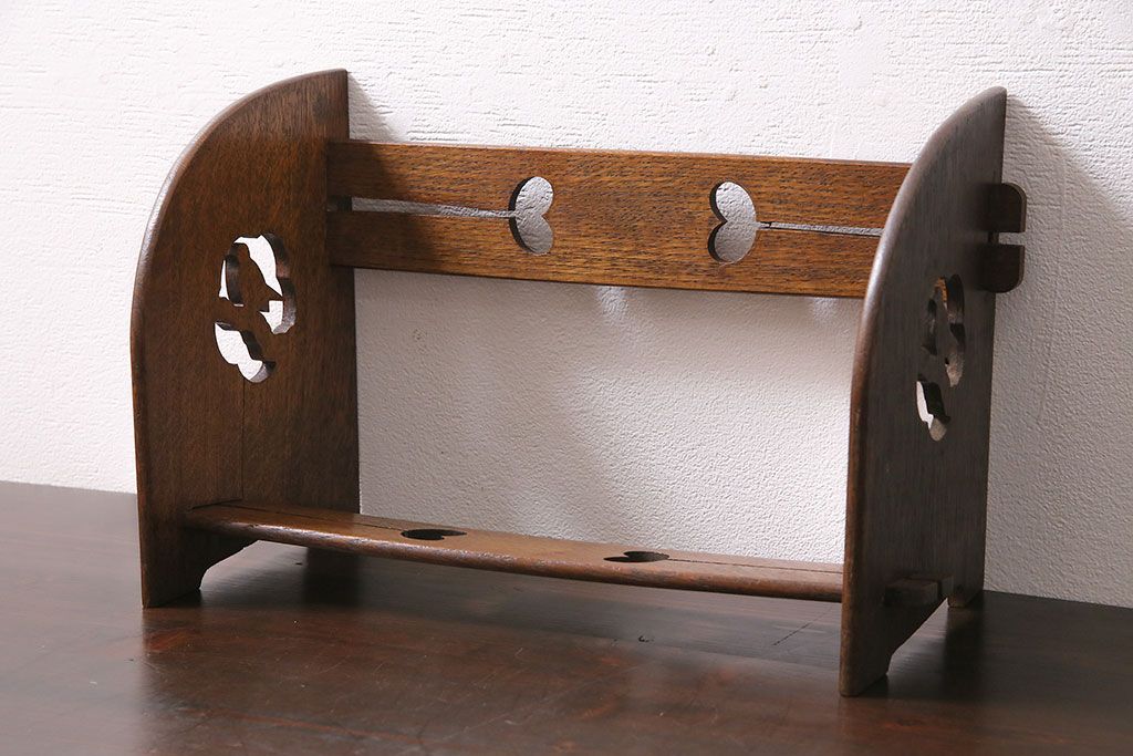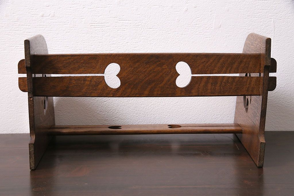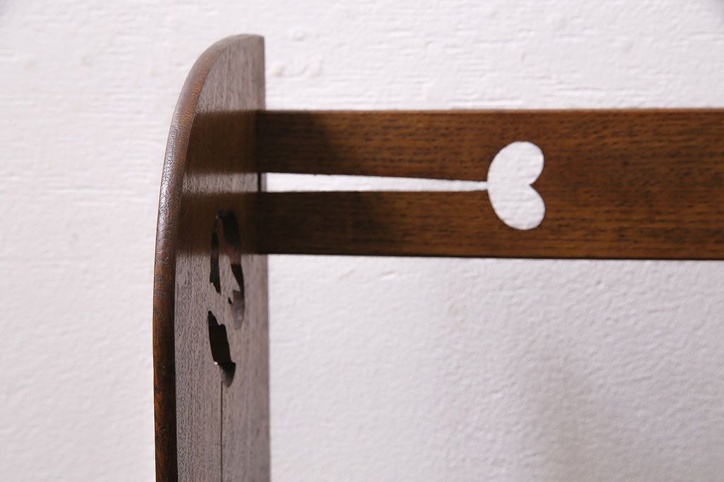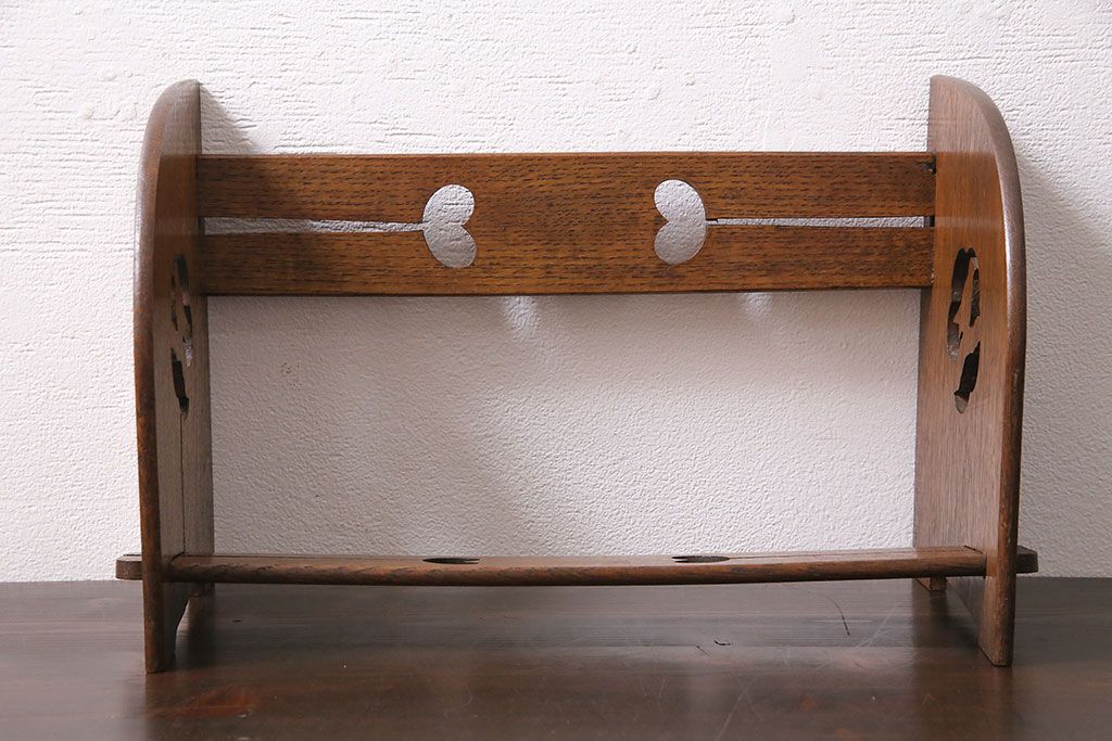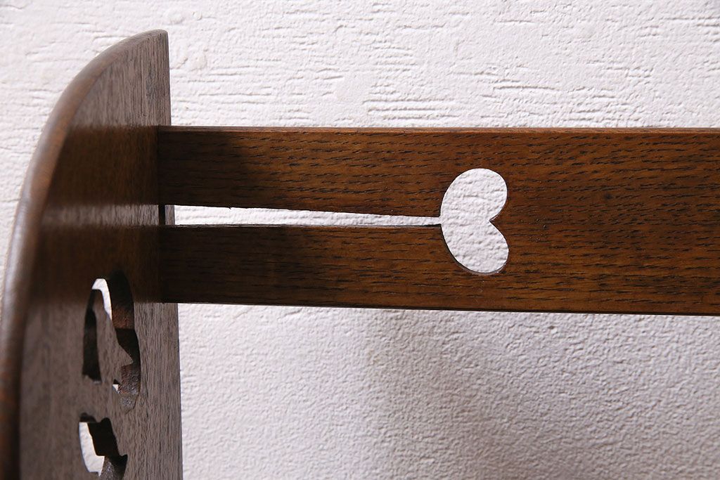 アンティーク家具 昭和初期 大正ロマン ナラ材 鳥の透かし彫りが施されたブックスタンド(本立て)(R-046593)です。