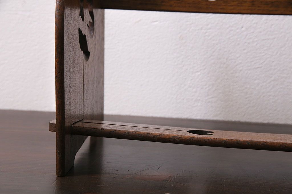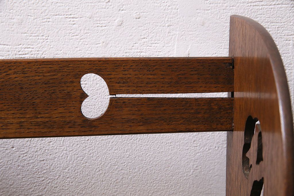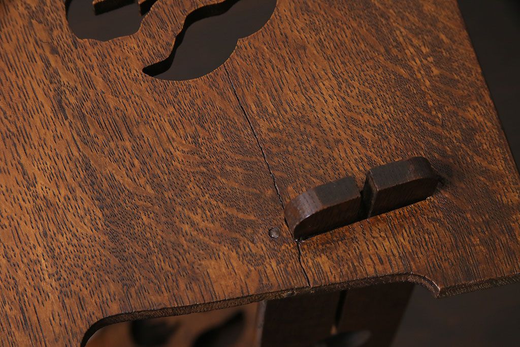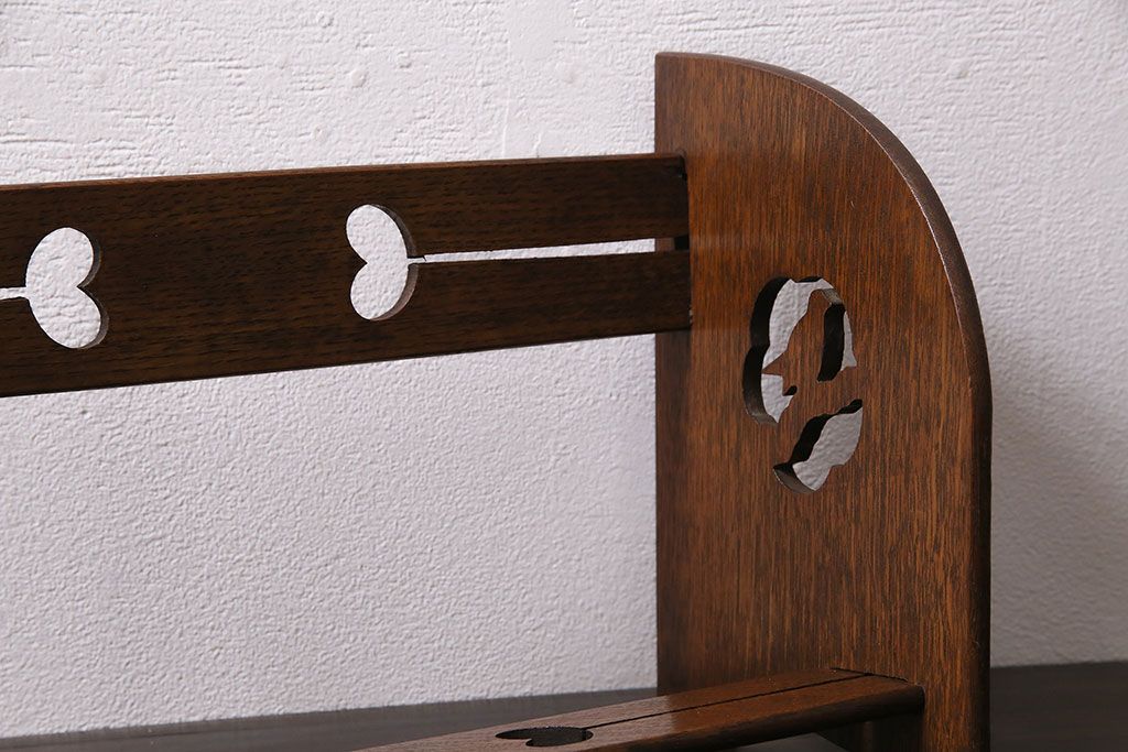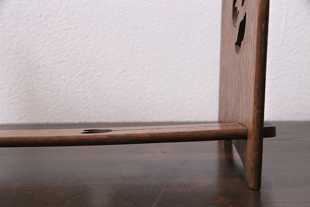 アンティーク家具 昭和初期 大正ロマン ナラ材 鳥の透かし彫りが施されたブックスタンド(本立て)(R-046593)です。