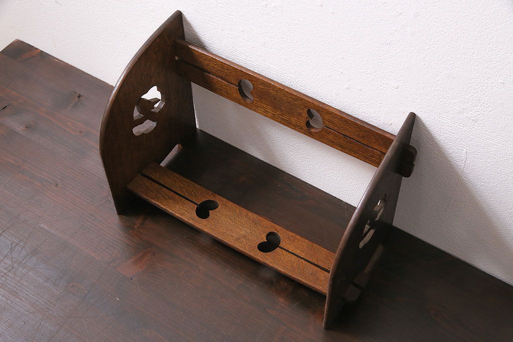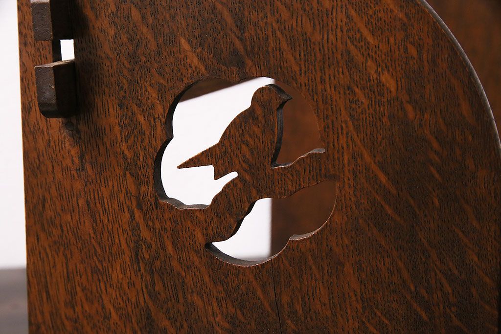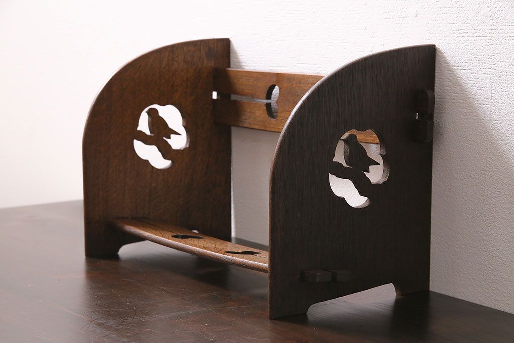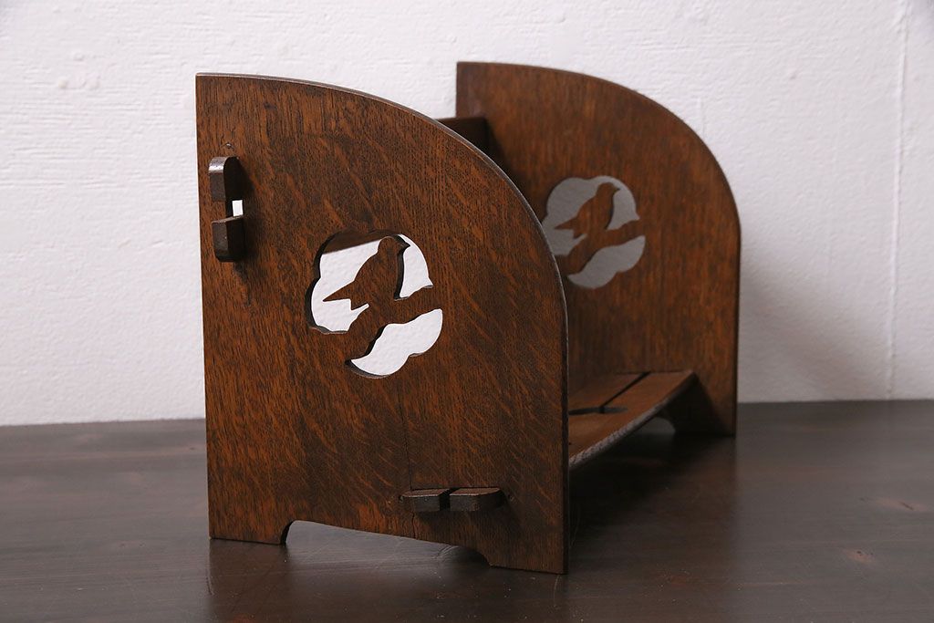 小物収納・トランク > アンティーク家具 昭和初期 大正ロマン ナラ材 鳥の透かし彫りが施されたブックスタンド(本立て)(R-046593)