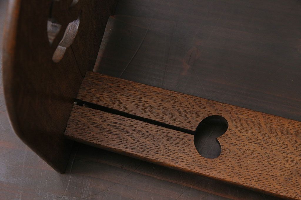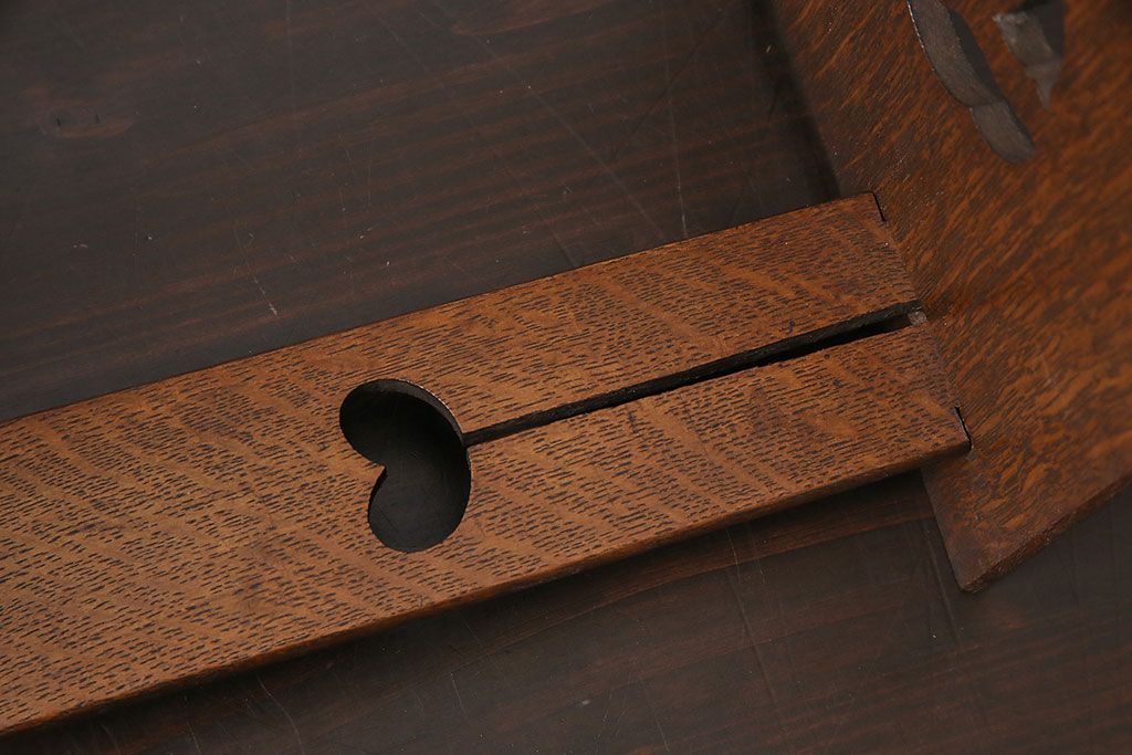 雑貨 > アンティーク家具 昭和初期 大正ロマン ナラ材 鳥の透かし彫りが施されたブックスタンド(本立て)(R-046593)