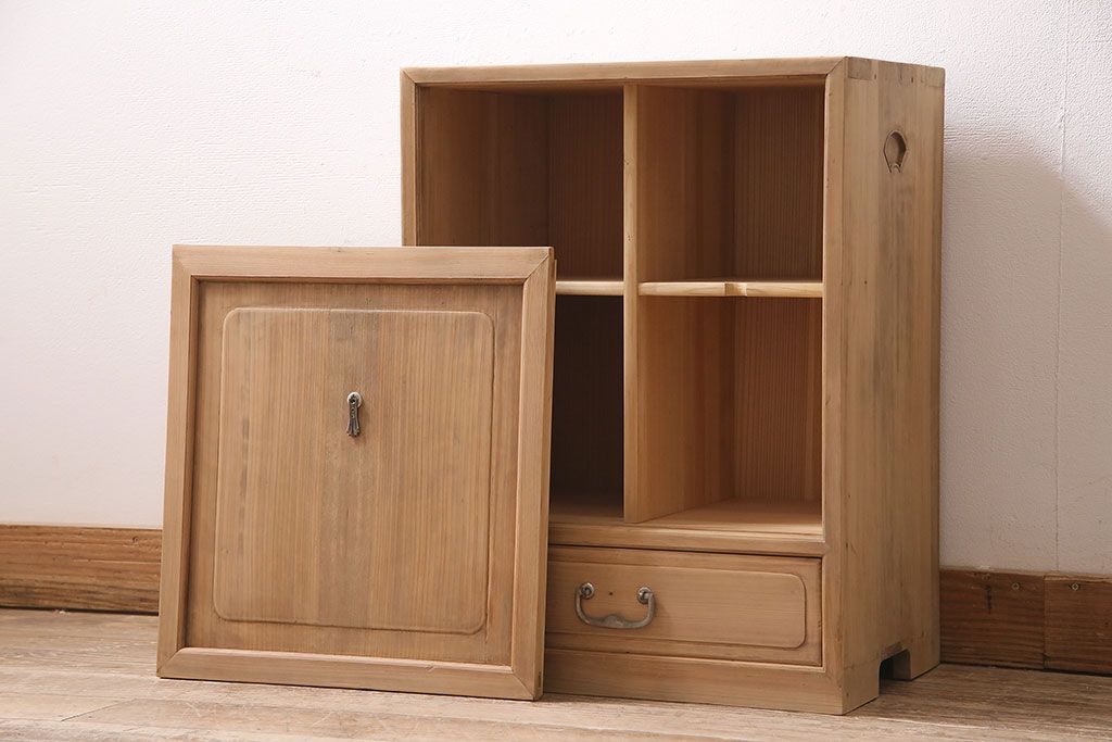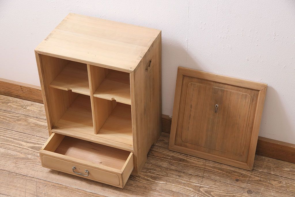 キャビネット・戸棚 > アンティーク家具 昭和中期 ヒノキ材 引き出し付き 倹飩(けんどん)式扉の小物収納箱(収納棚)(R-046590)