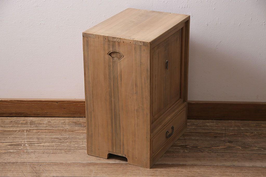 アンティーク家具 昭和中期 ヒノキ材 引き出し付き 倹飩(けんどん)式扉の小物収納箱(収納棚)(R-046590)