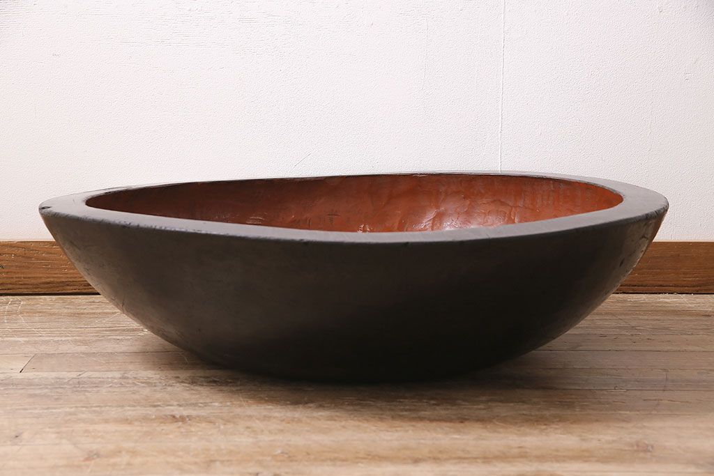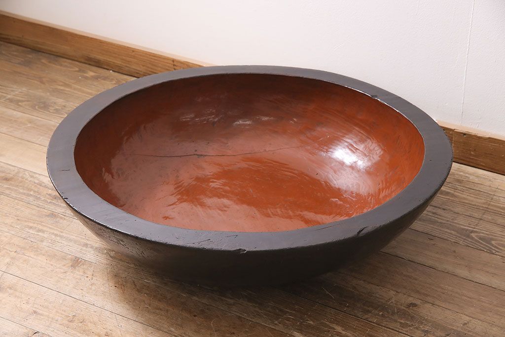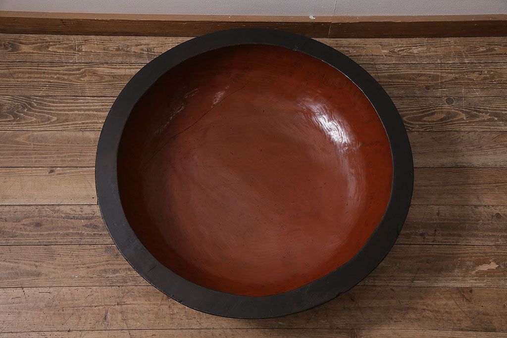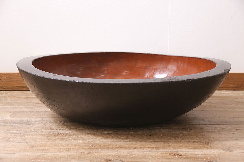 アンティーク雑貨 昭和初期 漆塗り 木製のこね鉢(木鉢、ディスプレイ)(R-046627)です。