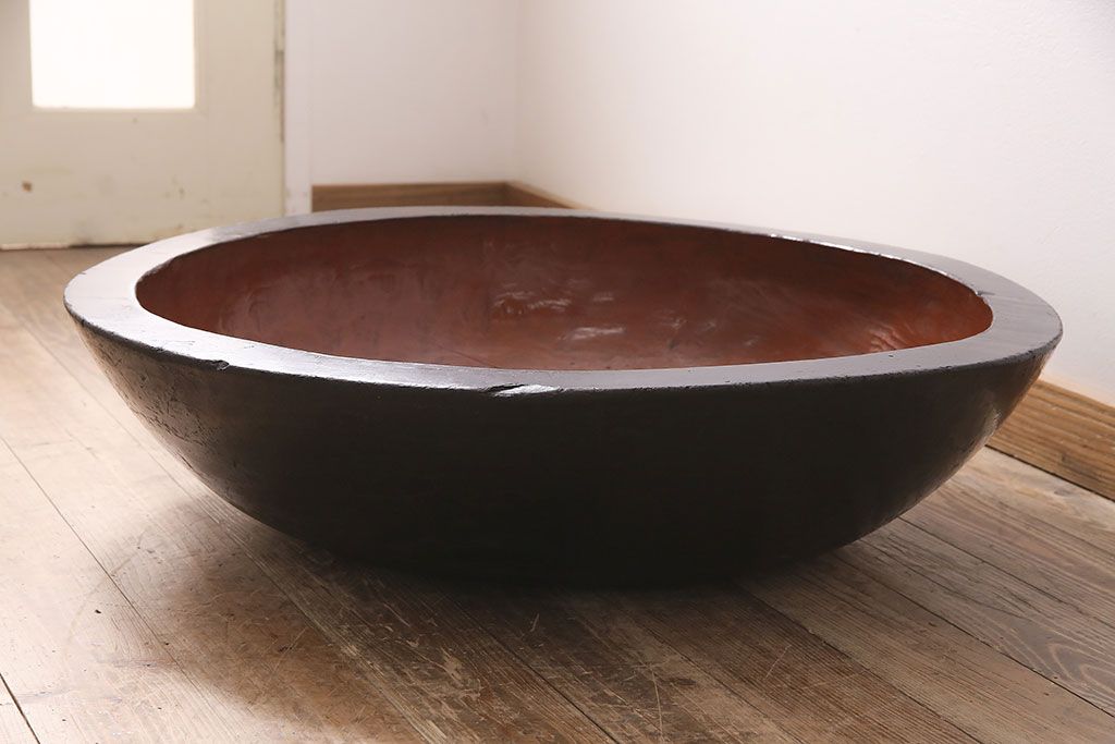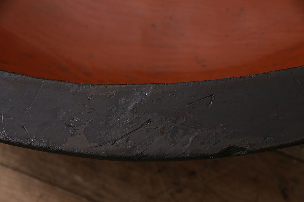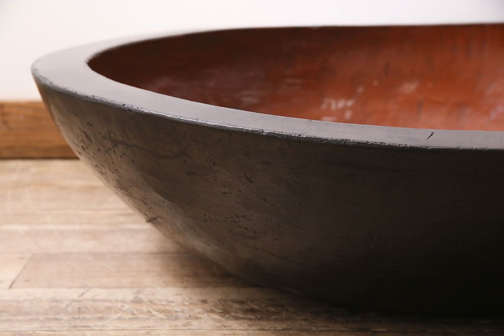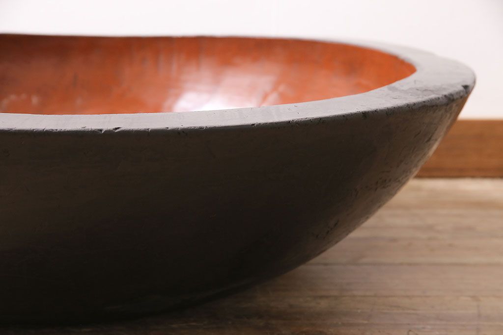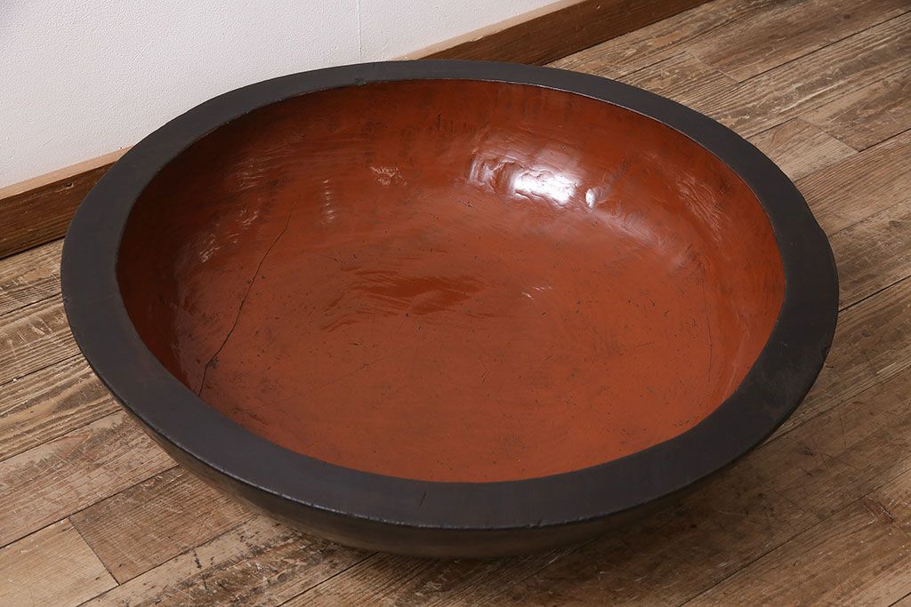 アンティーク雑貨 昭和初期 漆塗り 木製のこね鉢(木鉢、ディスプレイ)(R-046627)です。