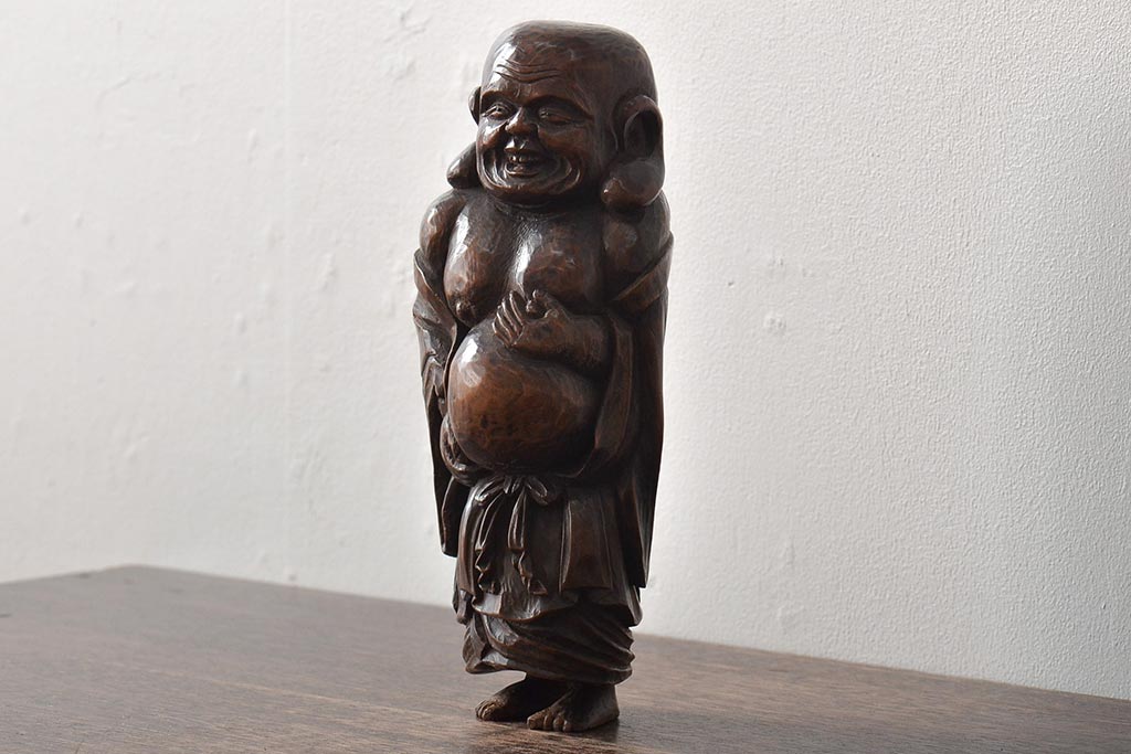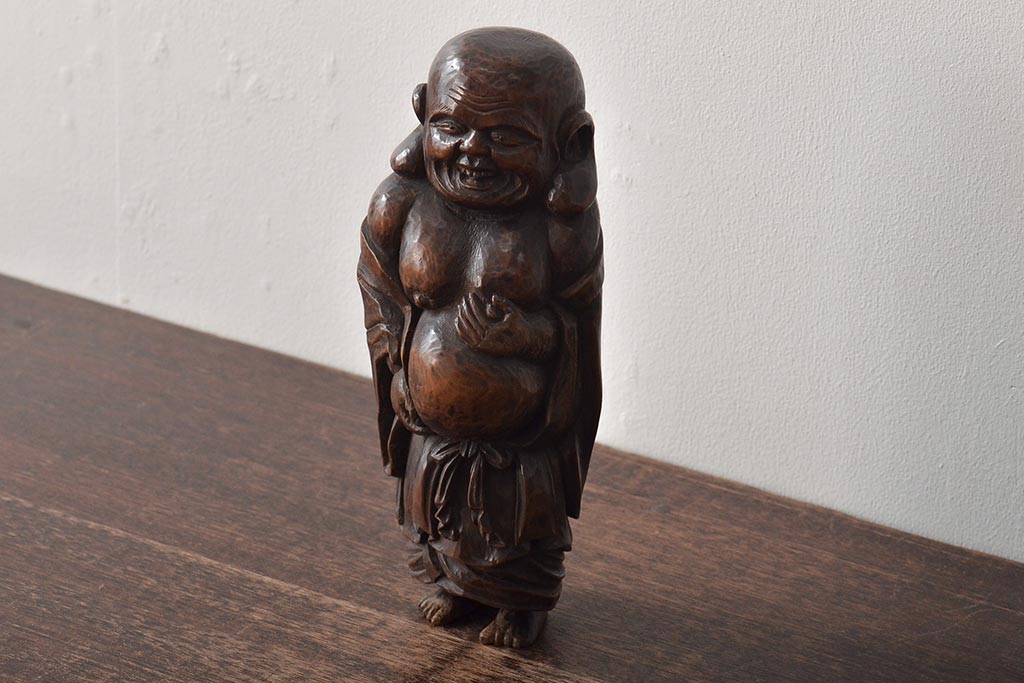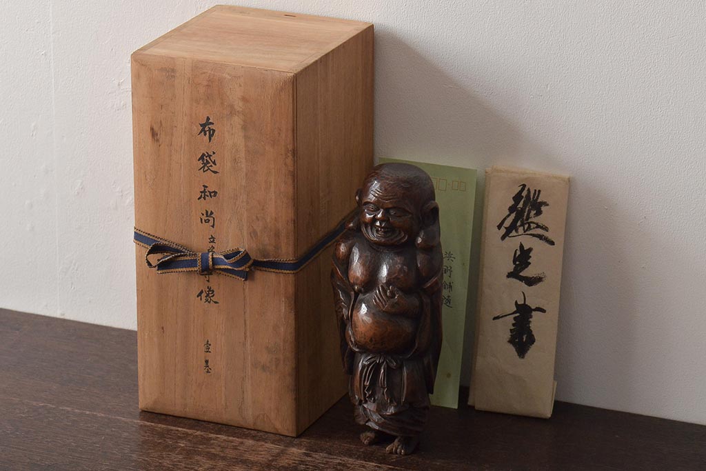 乙柳軒作 布袋和尚尊像 木彫(浜野鋪随) 鑑定書付(R-046407)
