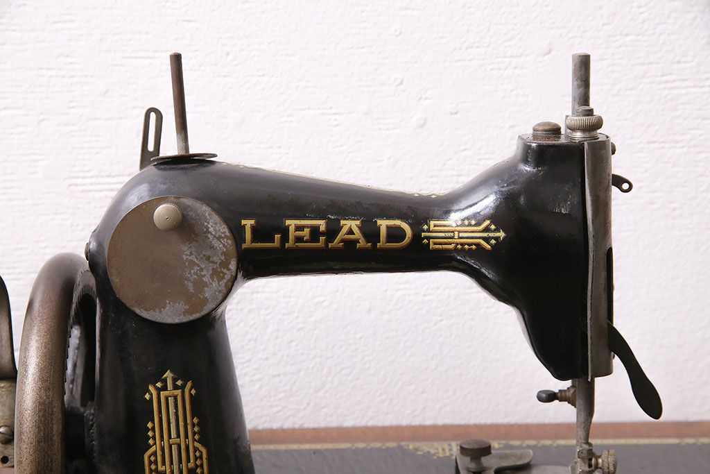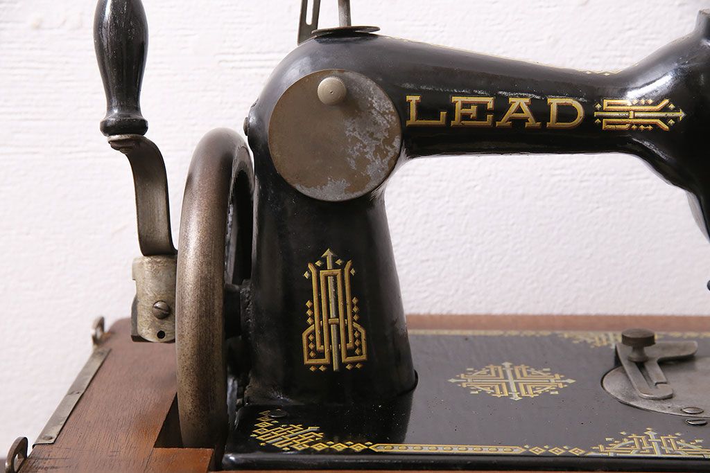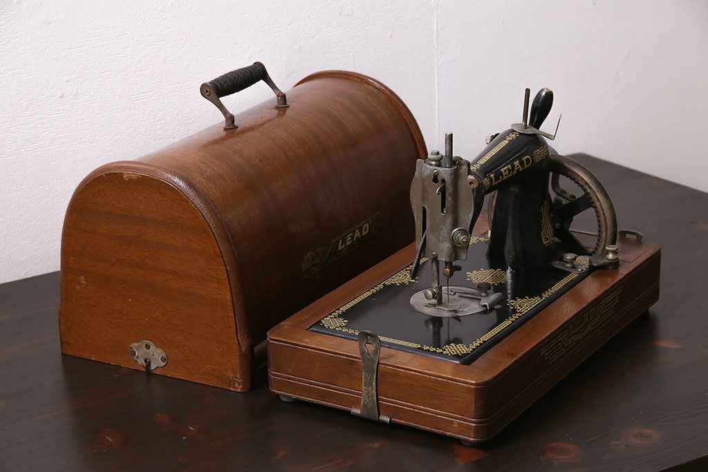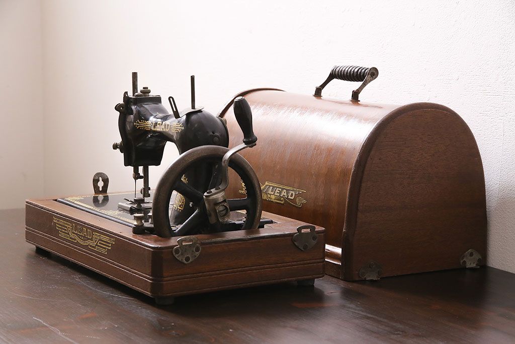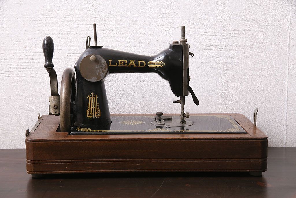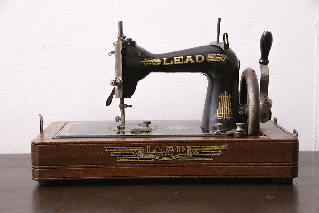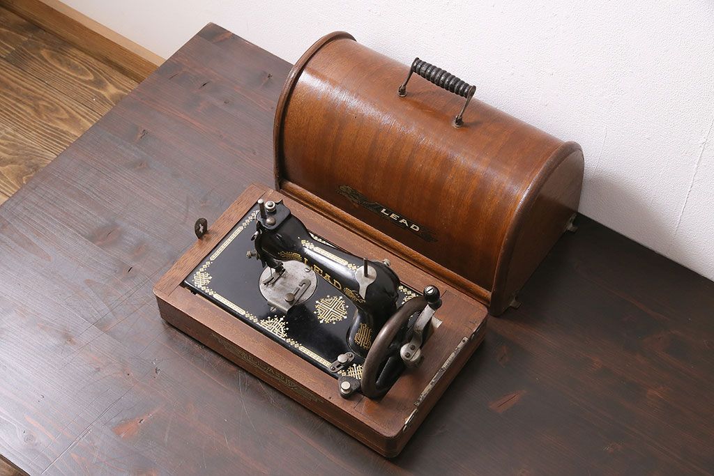 アンティーク雑貨 昭和レトロ LEAD(リード)社 カバー付き ディスプレイにおすすめの古い手回しミシン(ディスプレイ雑貨)(R-046591)