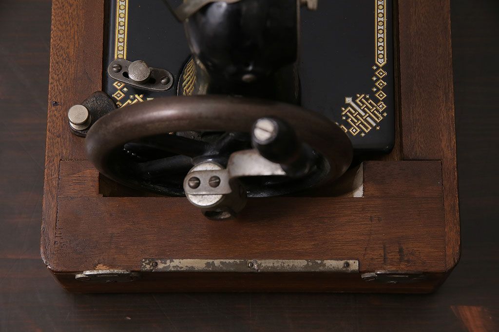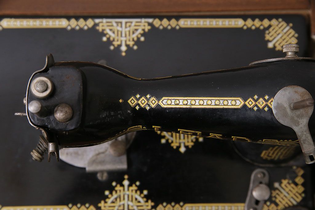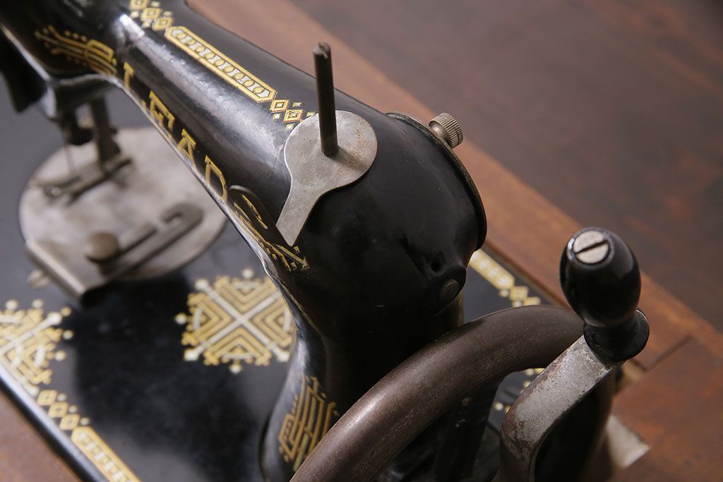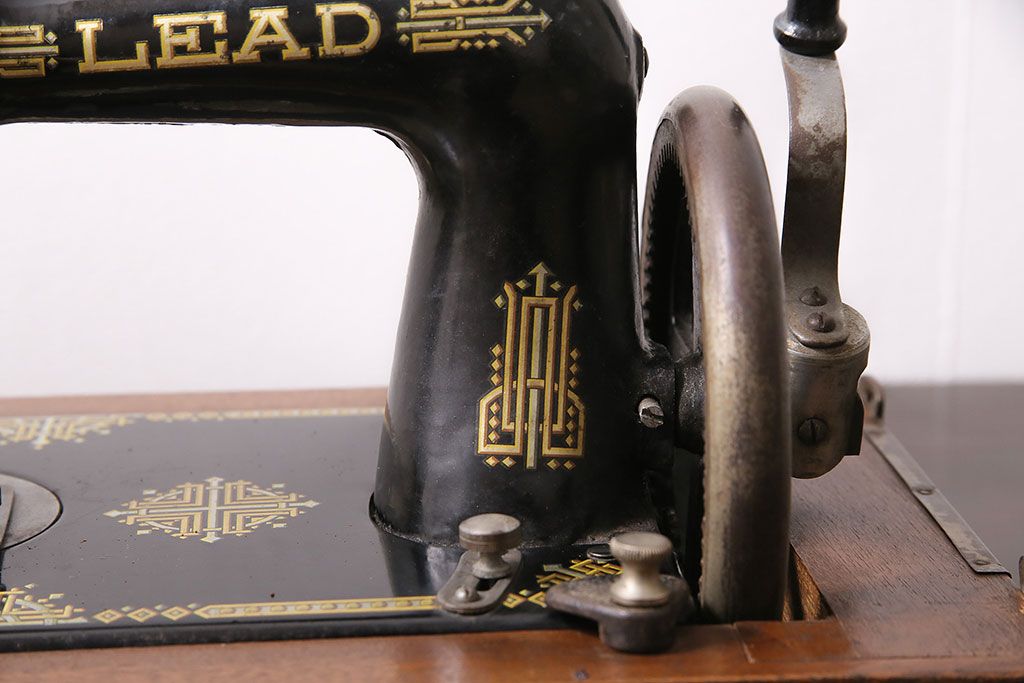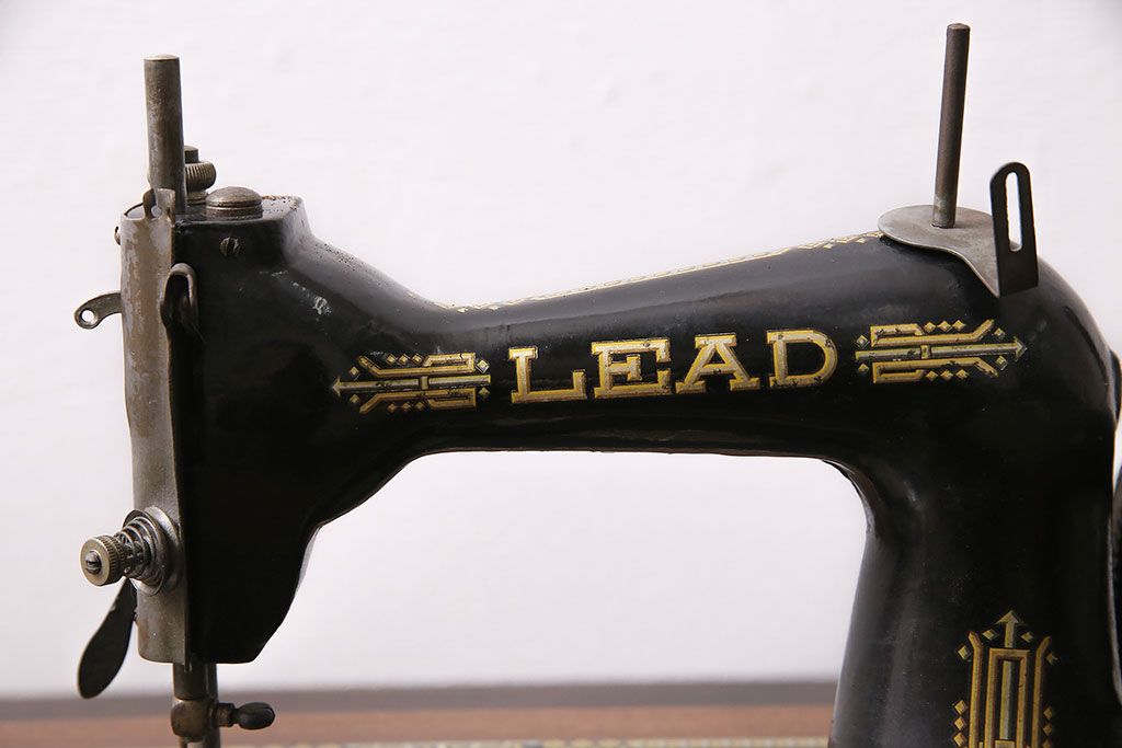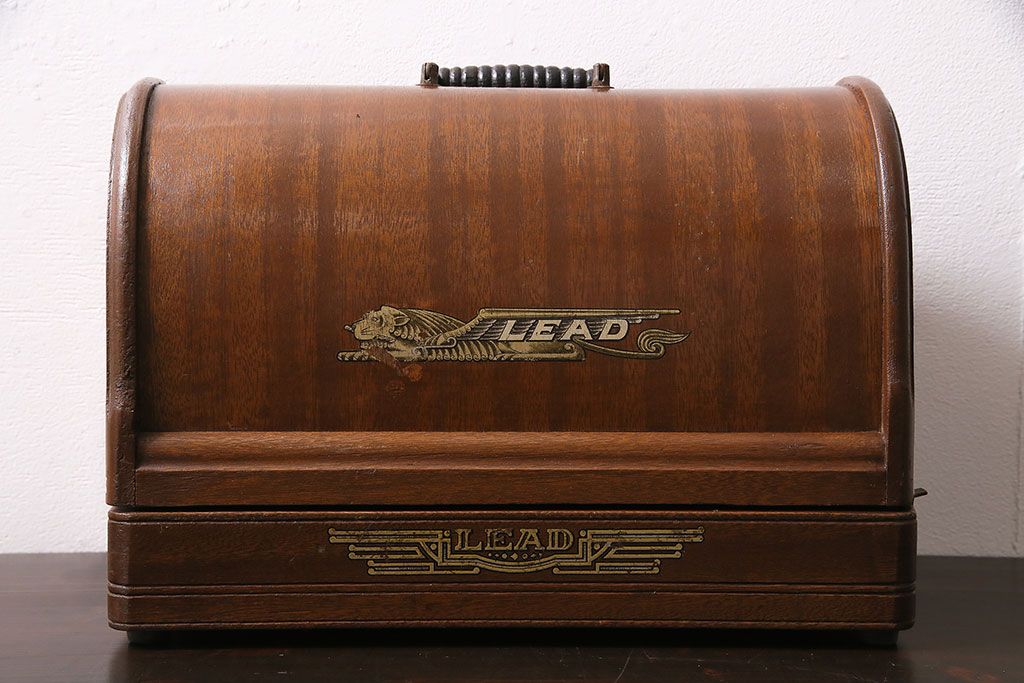 アンティーク雑貨 昭和レトロ LEAD(リード)社 カバー付き ディスプレイにおすすめの古い手回しミシン(ディスプレイ雑貨)(R-046591)