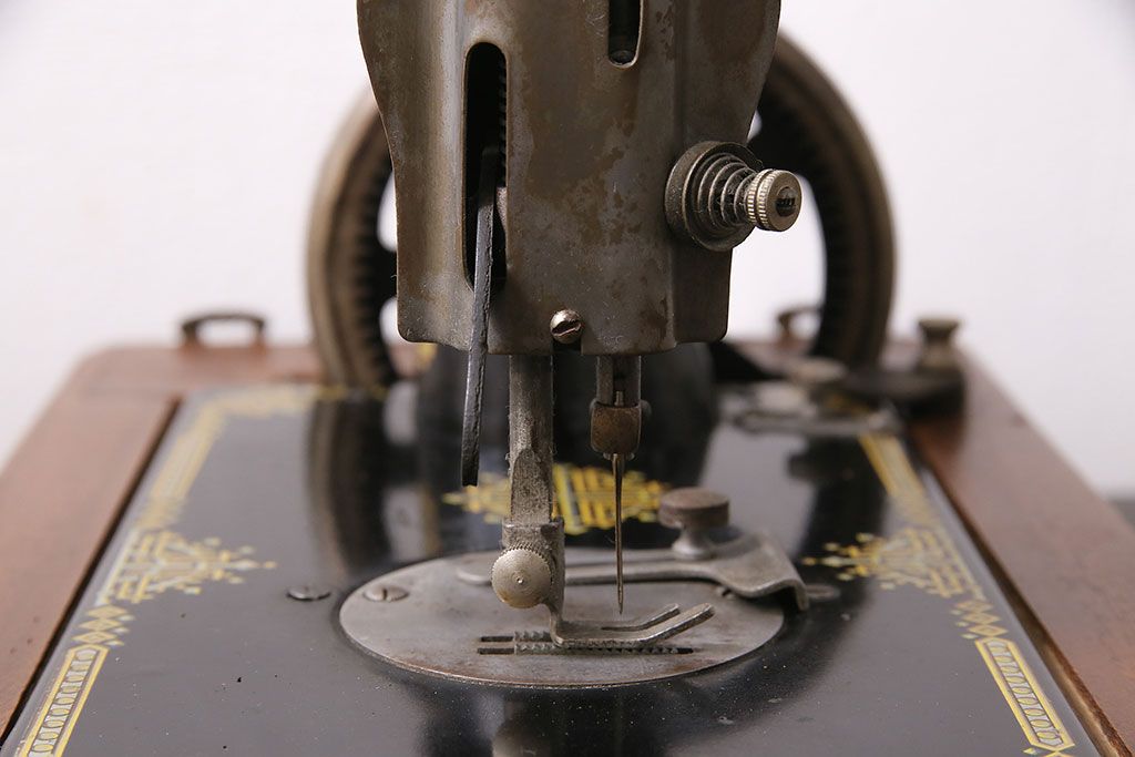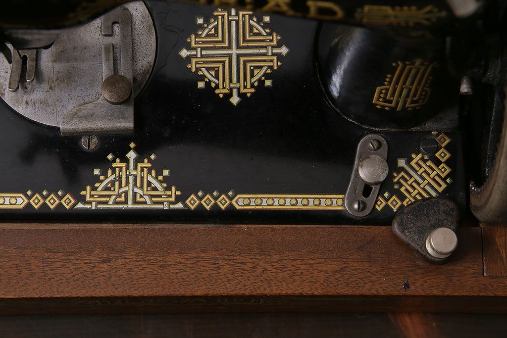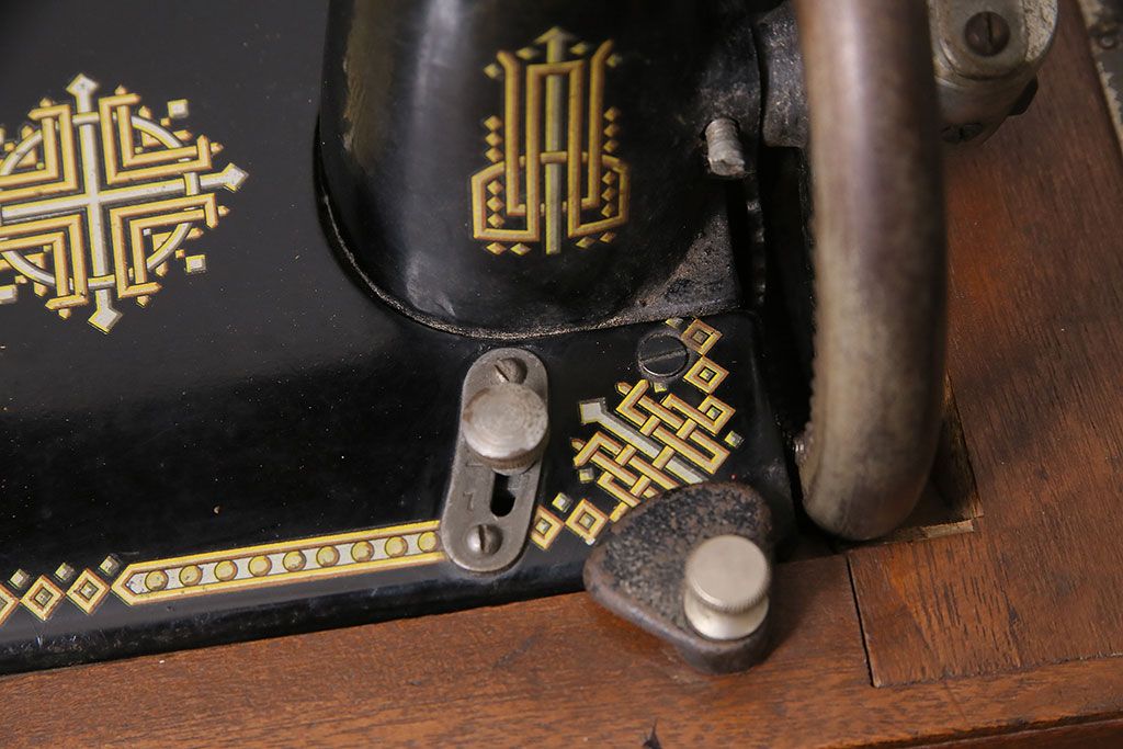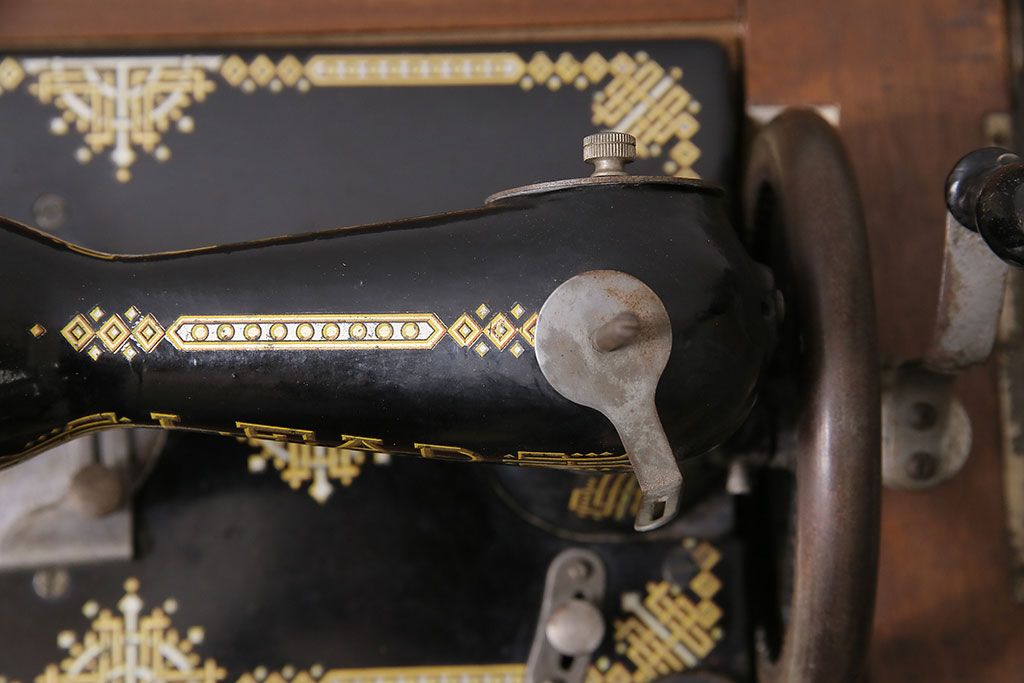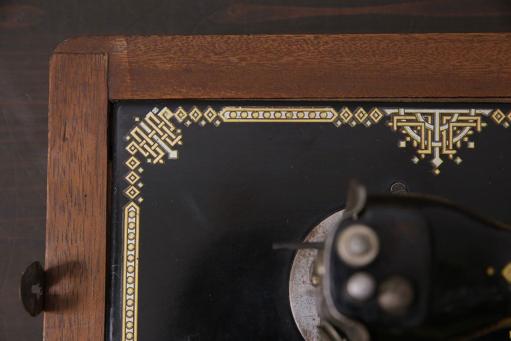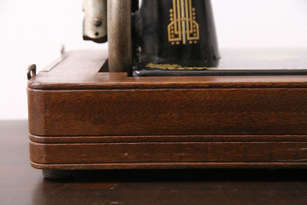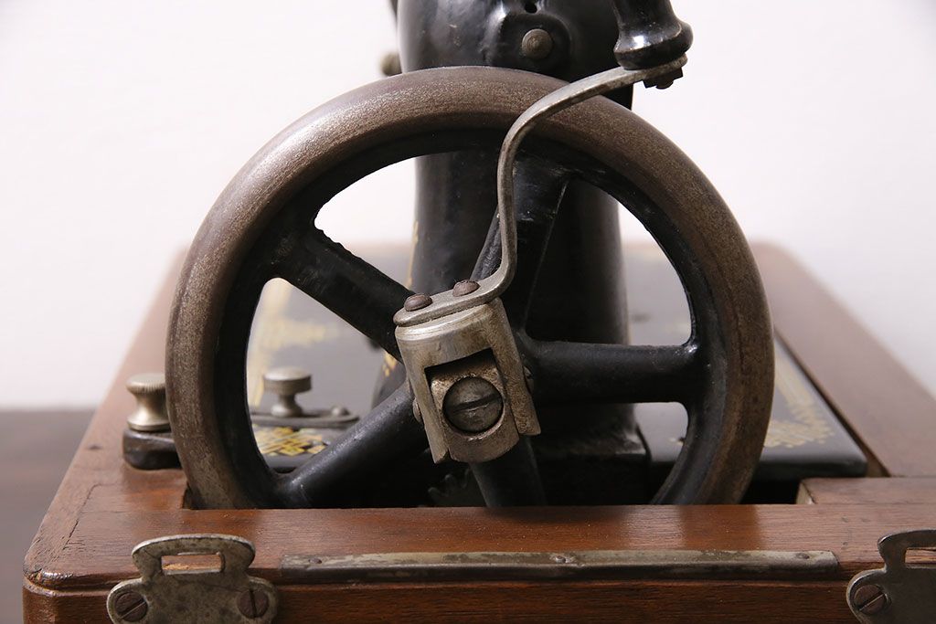 アンティーク雑貨 昭和レトロ LEAD(リード)社 カバー付き ディスプレイにおすすめの古い手回しミシン(ディスプレイ雑貨)(R-046591)