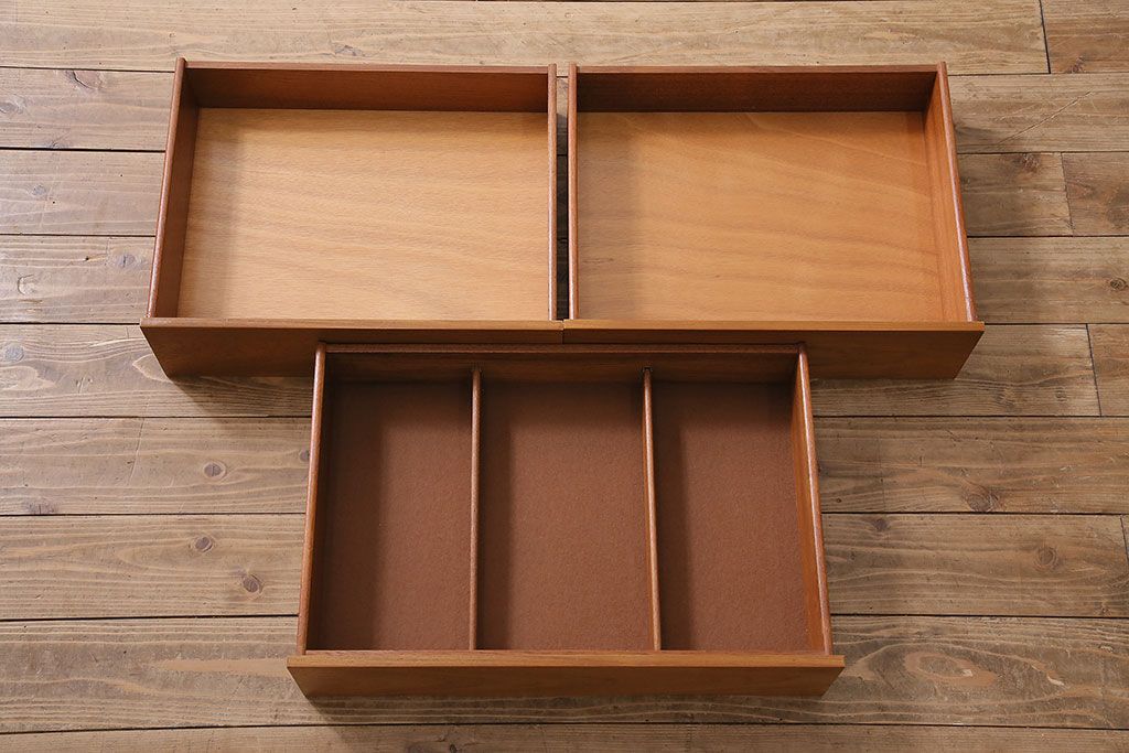 ■引き出しの内寸(中央・仕切り有) 深さ各85mm/幅160〜185mm/奥行330mm