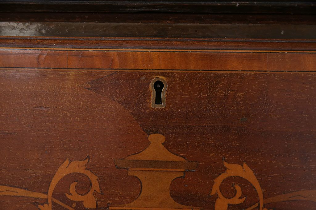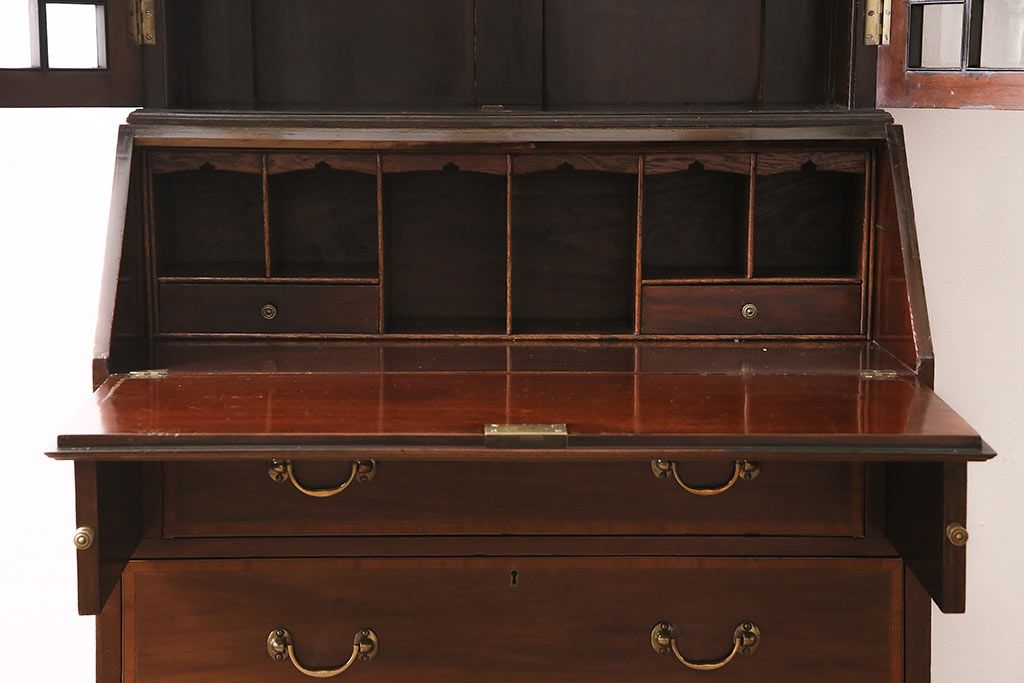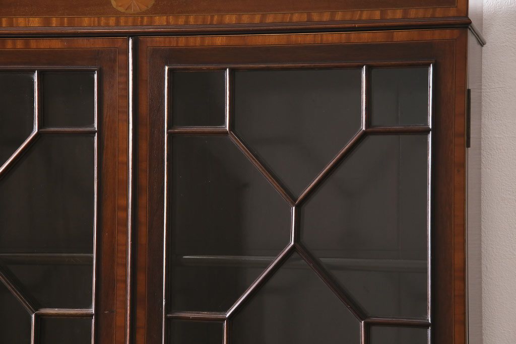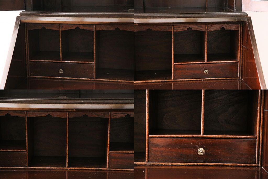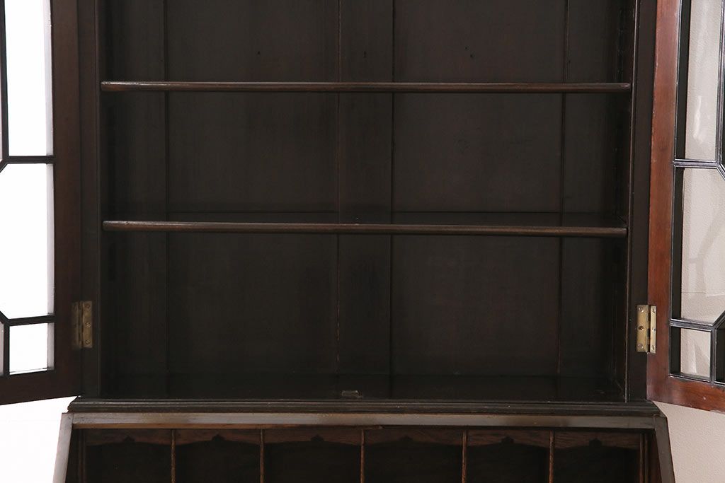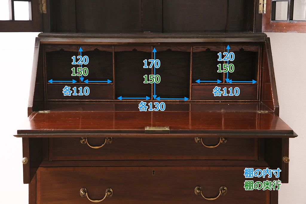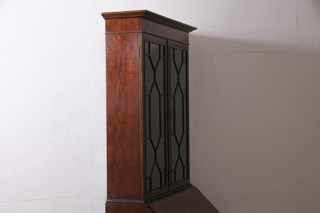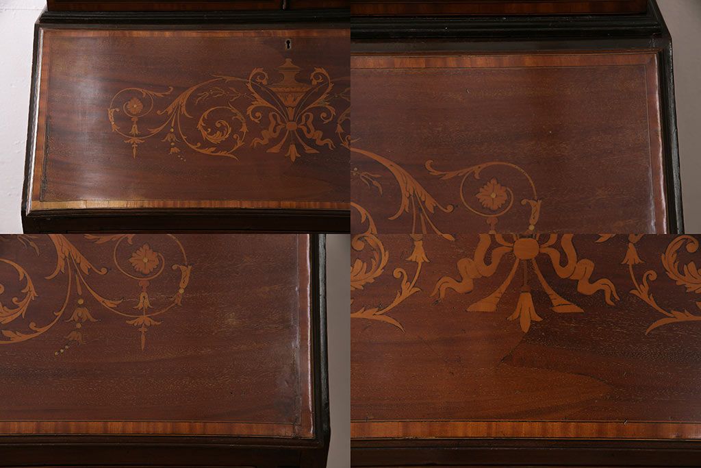 アンティーク家具 イギリス マホガニー材 象嵌入り 上品な佇まいのライティングビューロー(ビューローブックケース、簿記机、在宅ワーク、在宅用収納棚、本箱、ワークデスク)(R-046439)