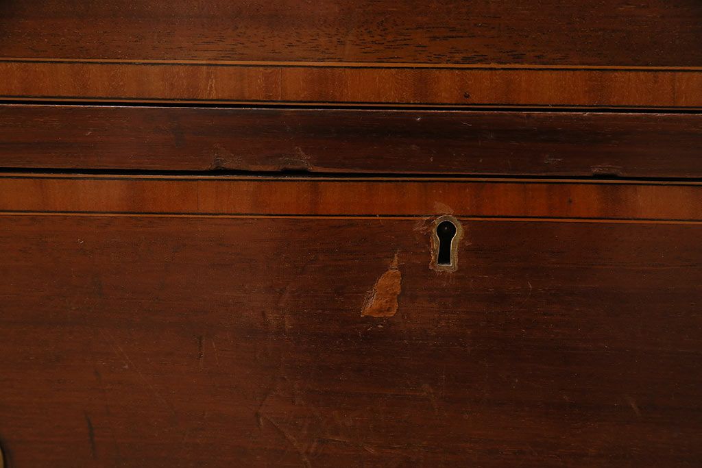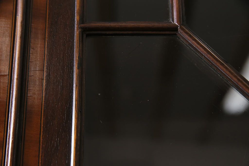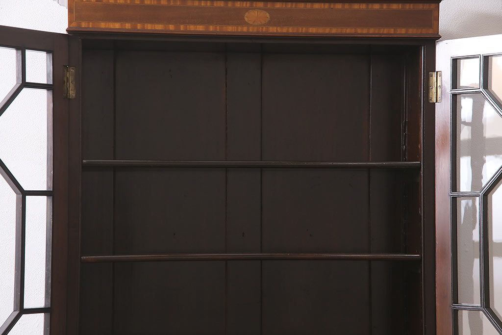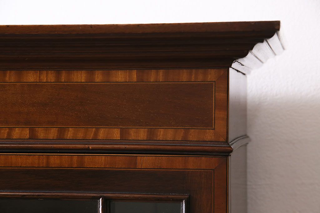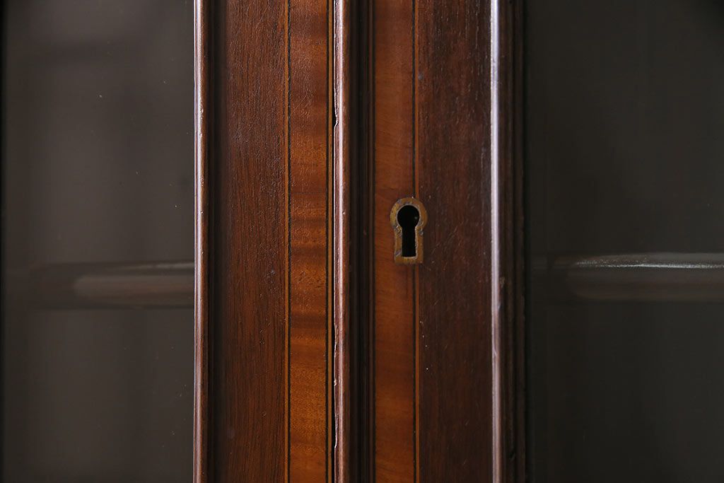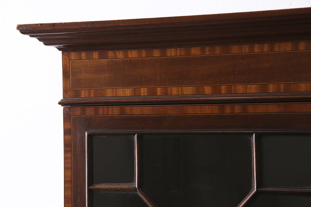 ラフジュ工房> デスク> ライティングビューロー・簿記机 > アンティーク家具 イギリス マホガニー材 象嵌入り 上品な佇まいのライティングビューロー(ビューローブックケース、簿記机、在宅ワーク、在宅用収納棚、本箱、ワークデスク)(R-046439)