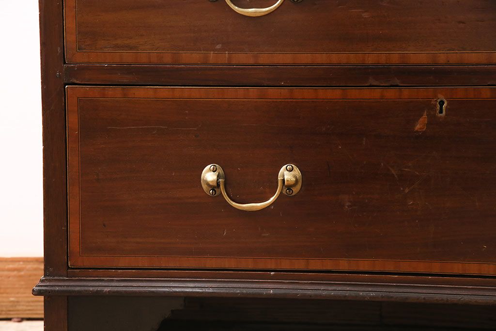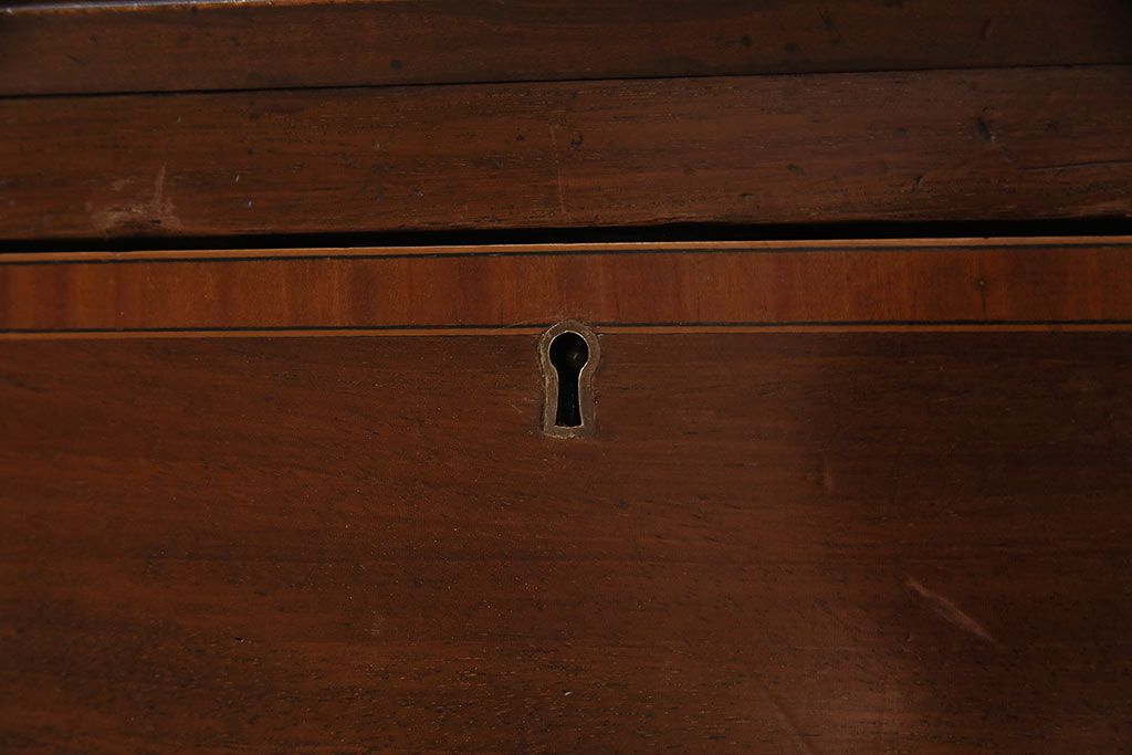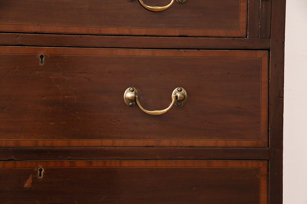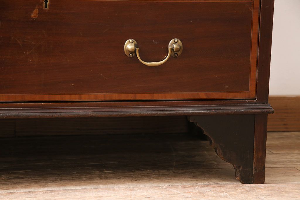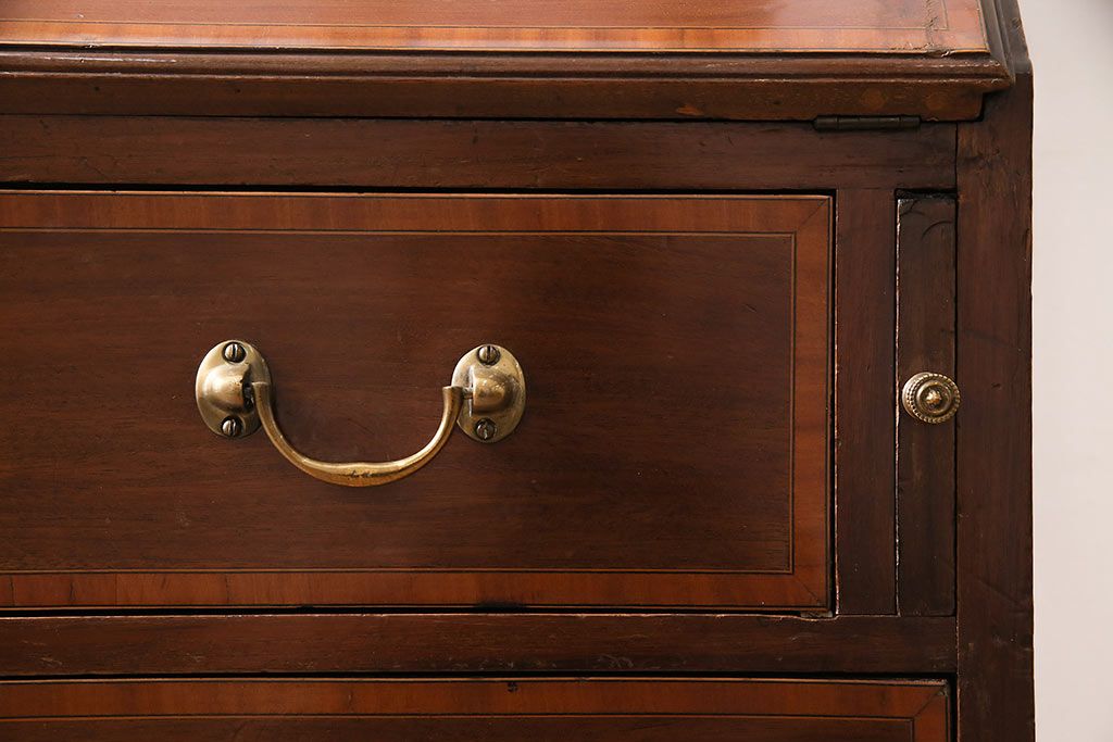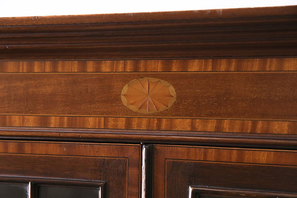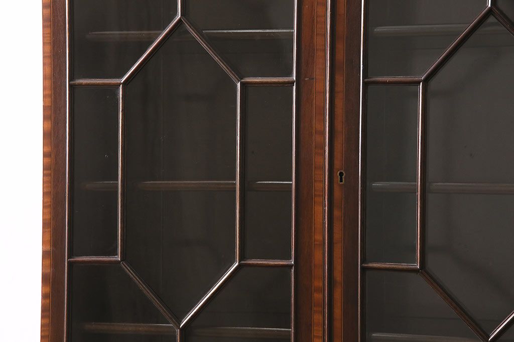 ラフジュ工房> デスク> ライティングビューロー・簿記机 > アンティーク家具 イギリス マホガニー材 象嵌入り 上品な佇まいのライティングビューロー(ビューローブックケース、簿記机、在宅ワーク、在宅用収納棚、本箱、ワークデスク)(R-046439)