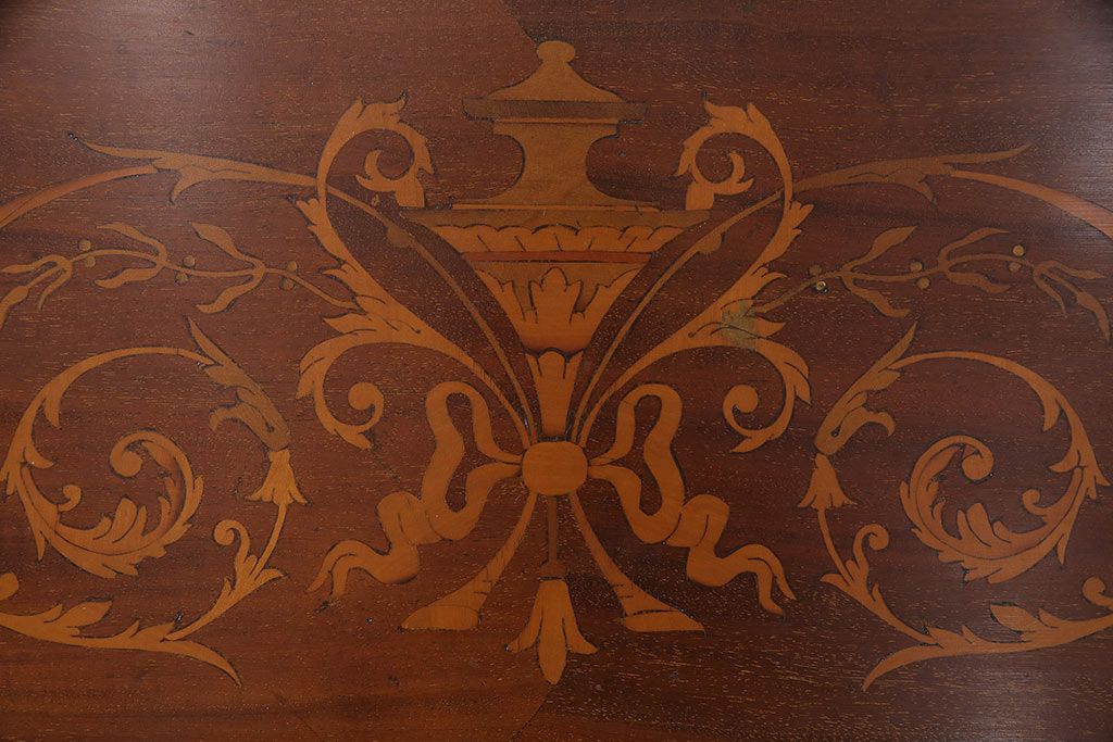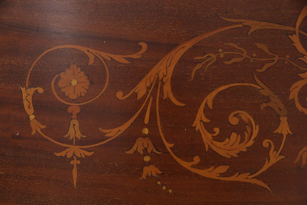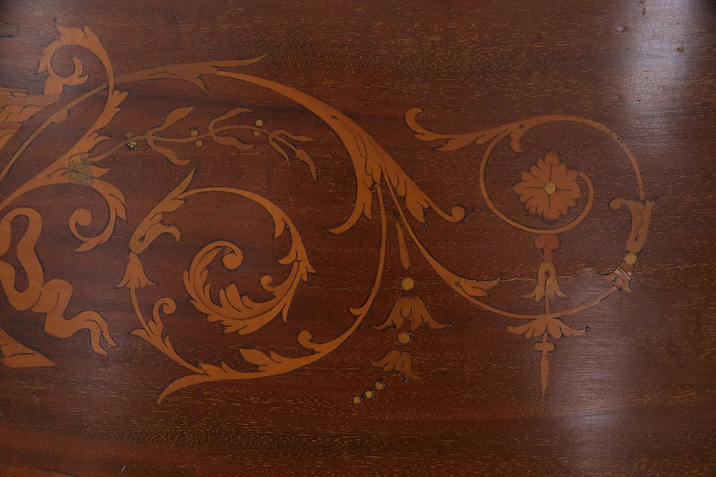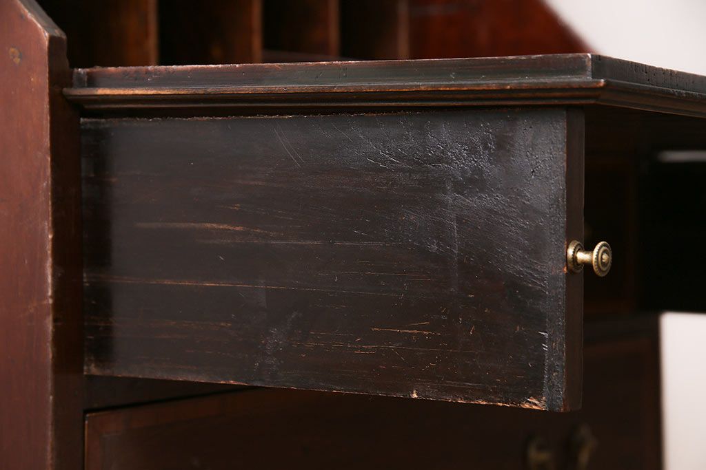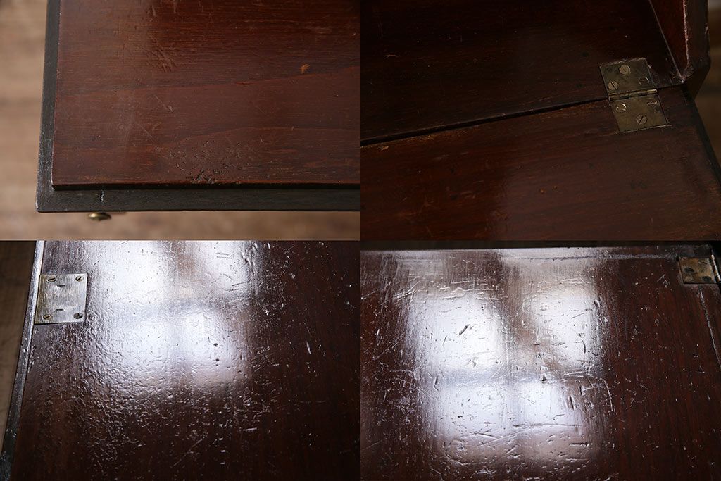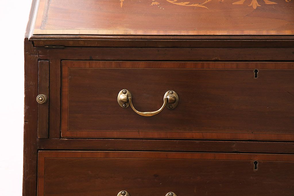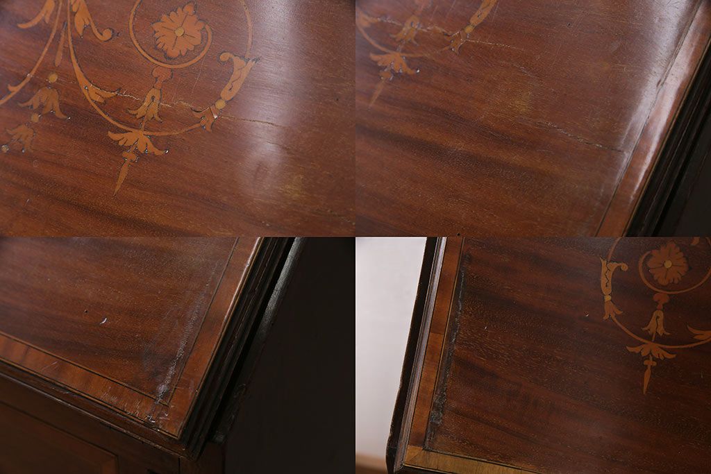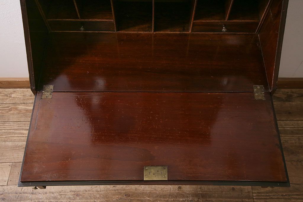ラフジュ工房> デスク> ワークデスク > アンティーク家具 イギリス マホガニー材 象嵌入り 上品な佇まいのライティングビューロー(ビューローブックケース、簿記机、在宅ワーク、在宅用収納棚、本箱、ワークデスク)(R-046439)