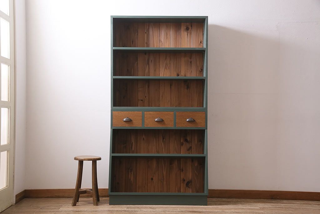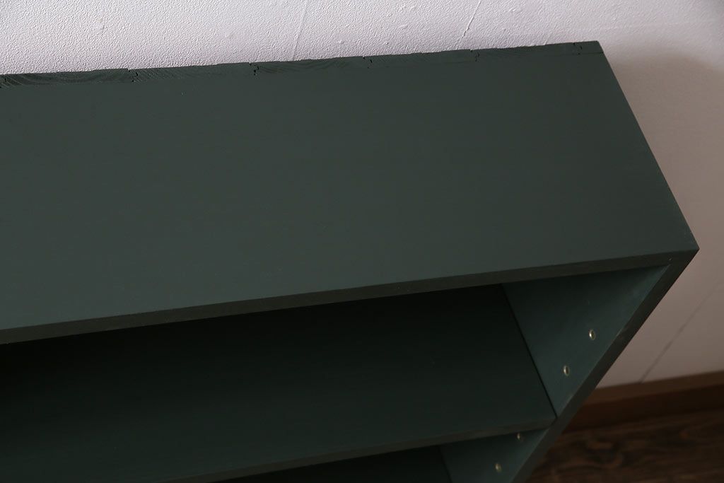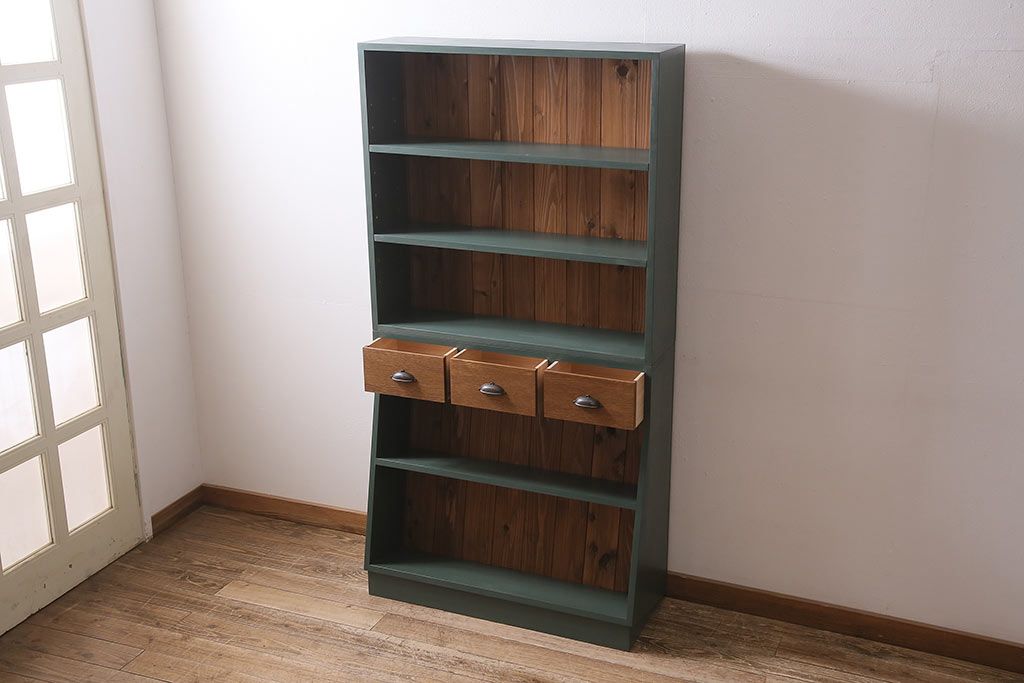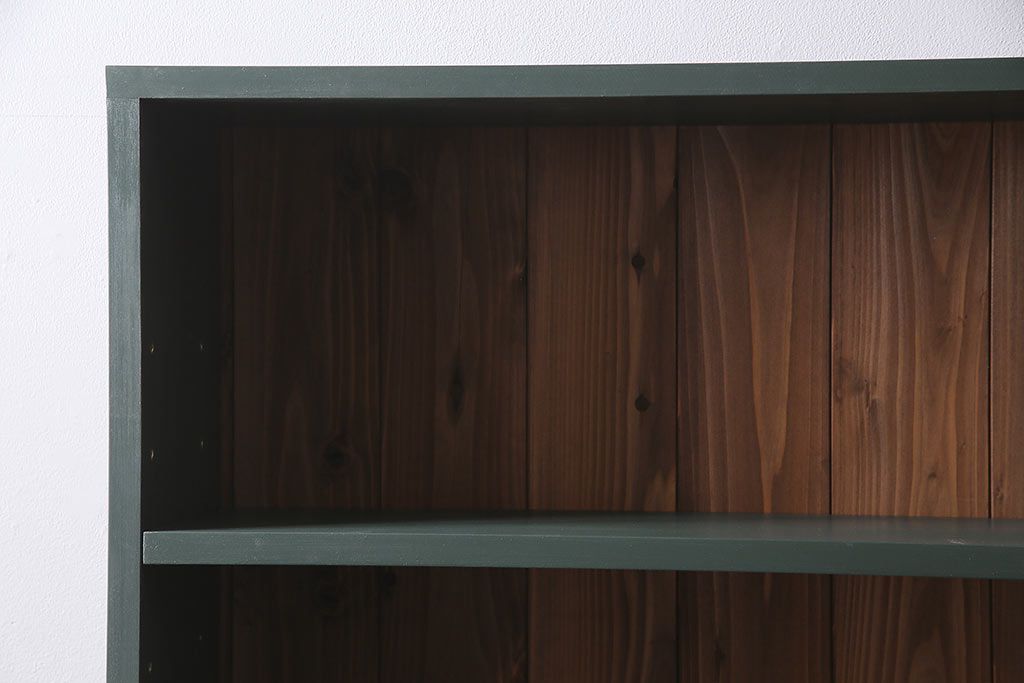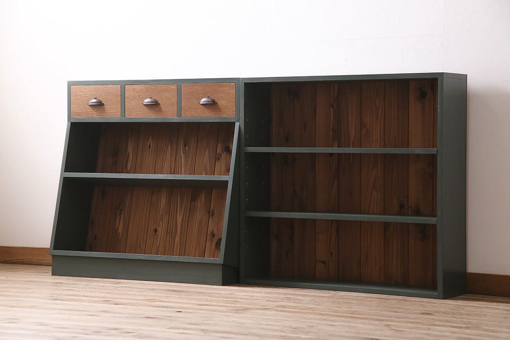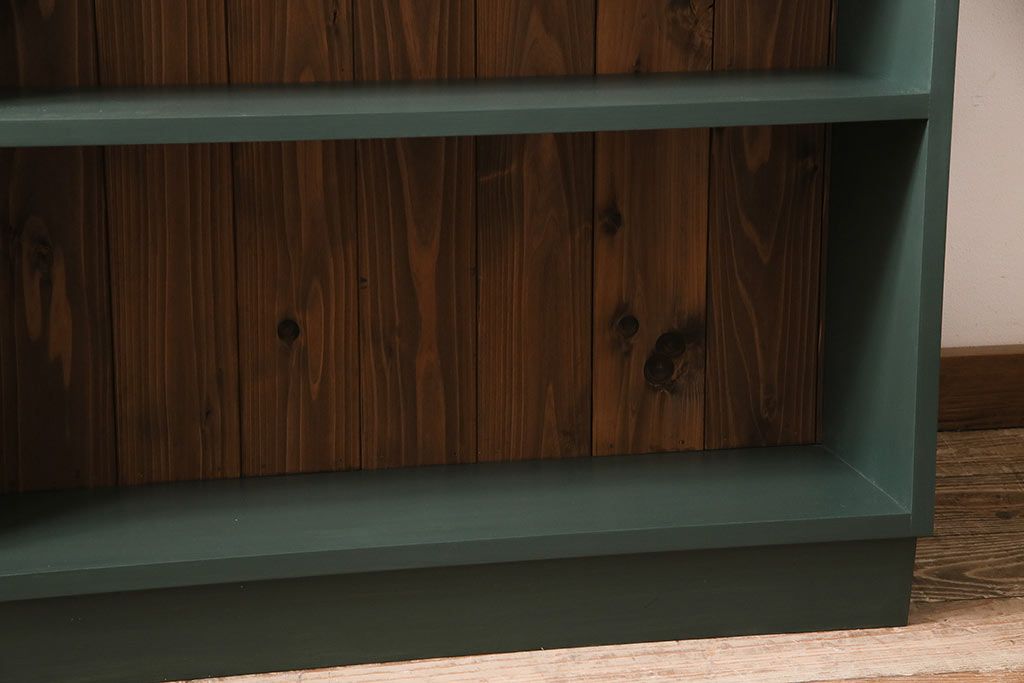 ラフジュ工房オリジナル ペイント家具 古材使用 シックな雰囲気の薄型ブックシェルフ(収納棚、本棚、ウッドシェルフ)(R-046507)