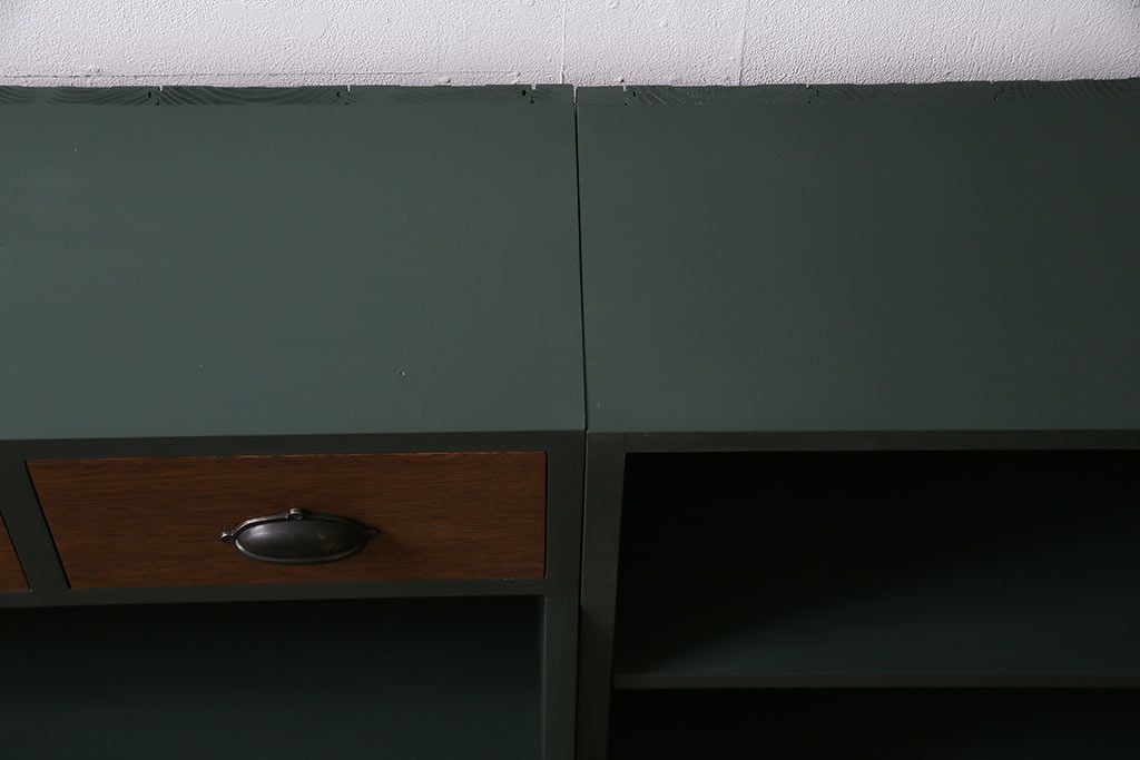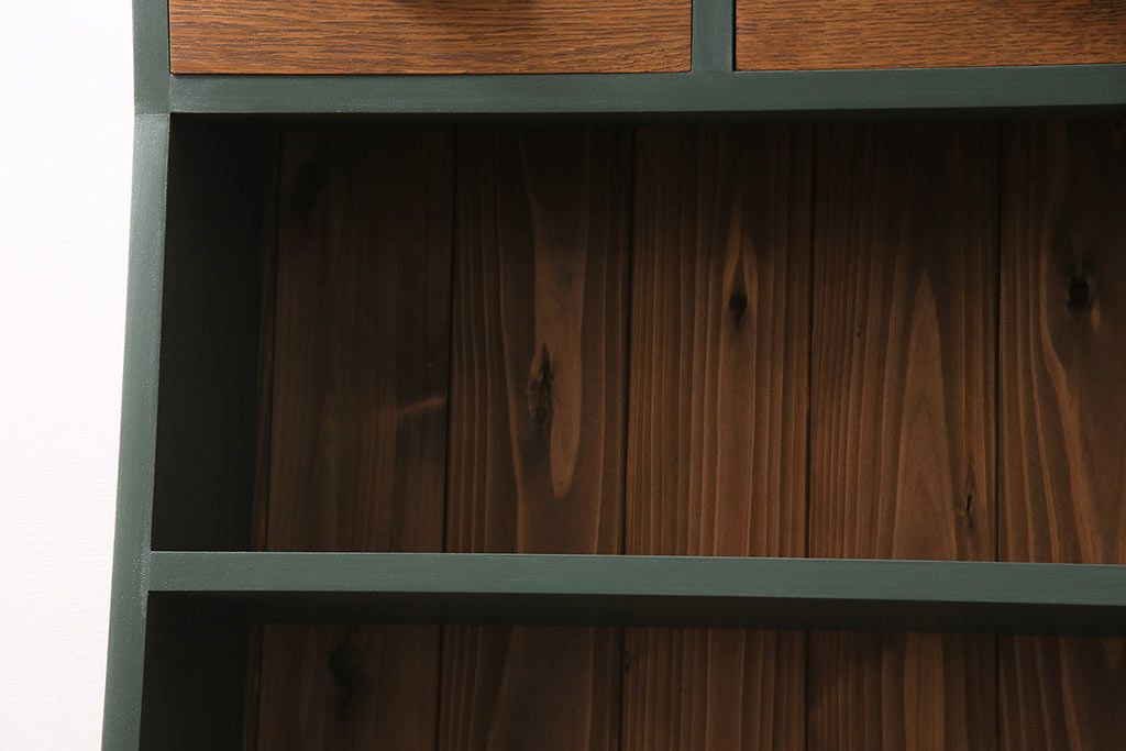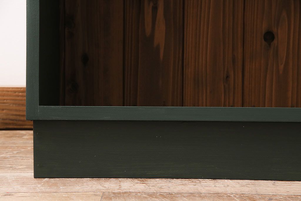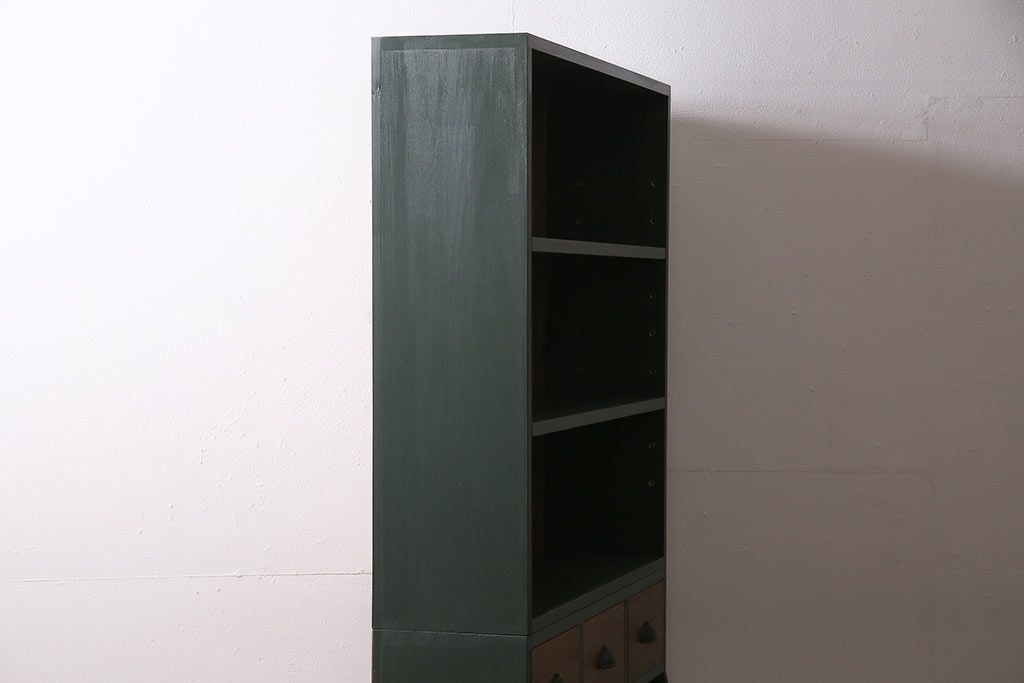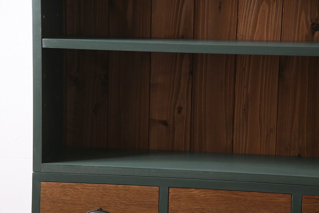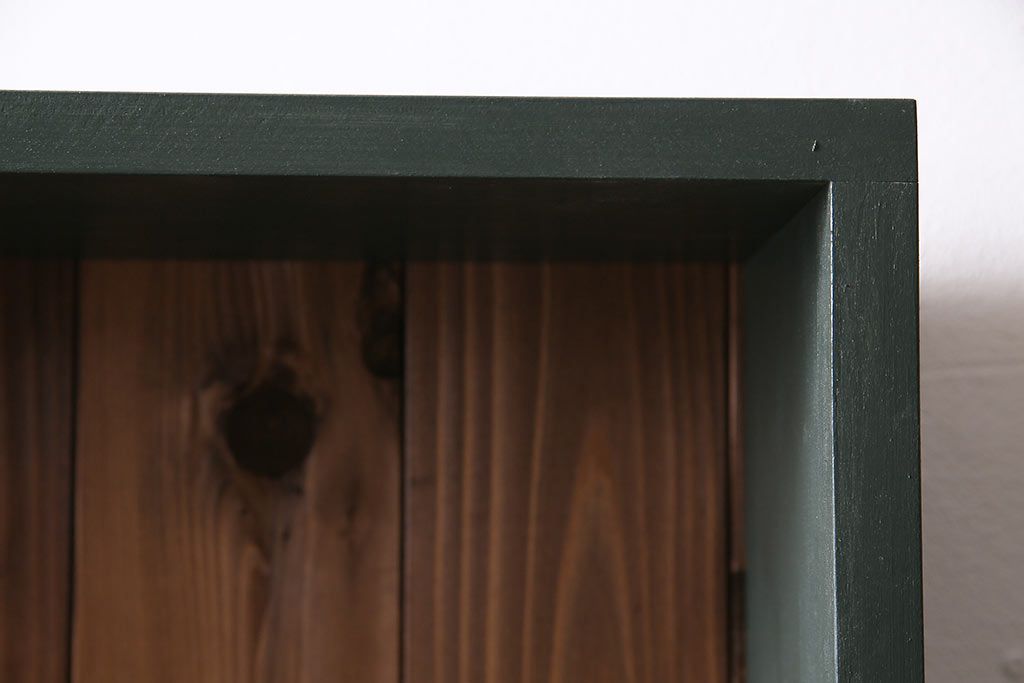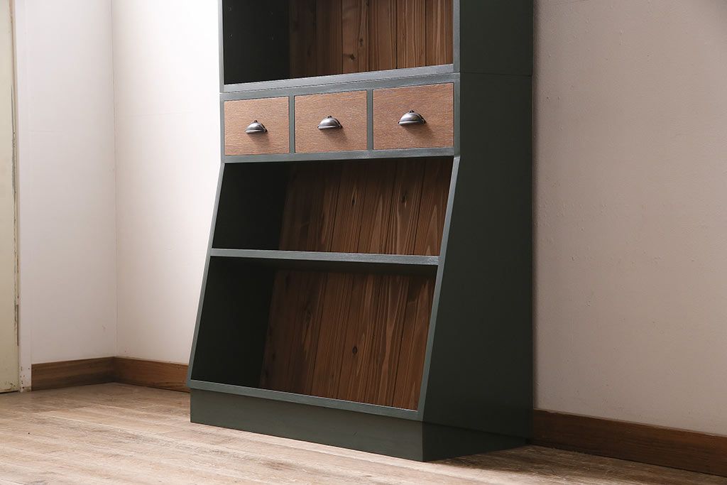 ラフジュ工房オリジナル ペイント家具 古材使用 シックな雰囲気の薄型ブックシェルフ(収納棚、本棚、ウッドシェルフ)(R-046507)