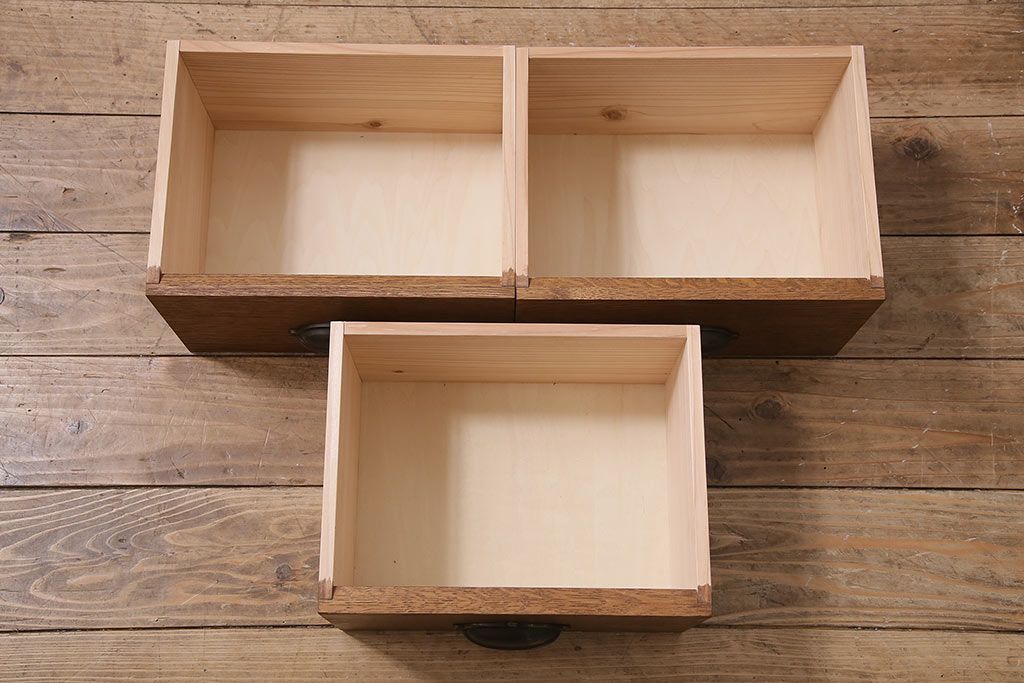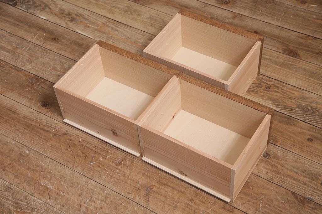 引き出しの前板に古材を使用した