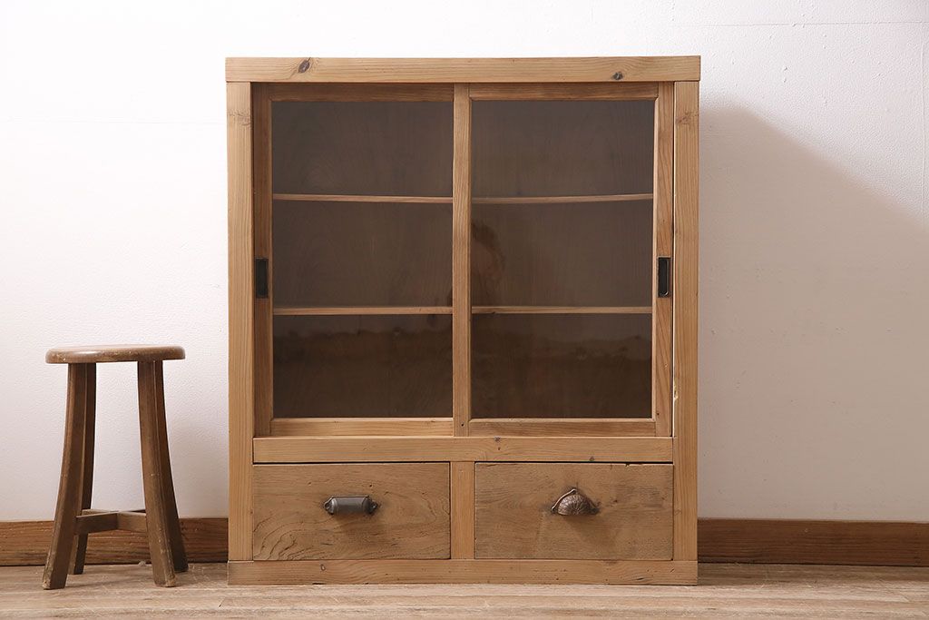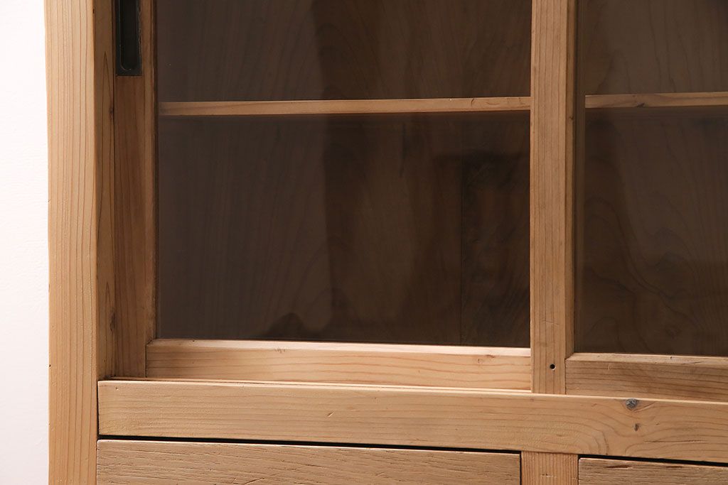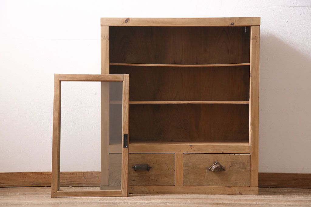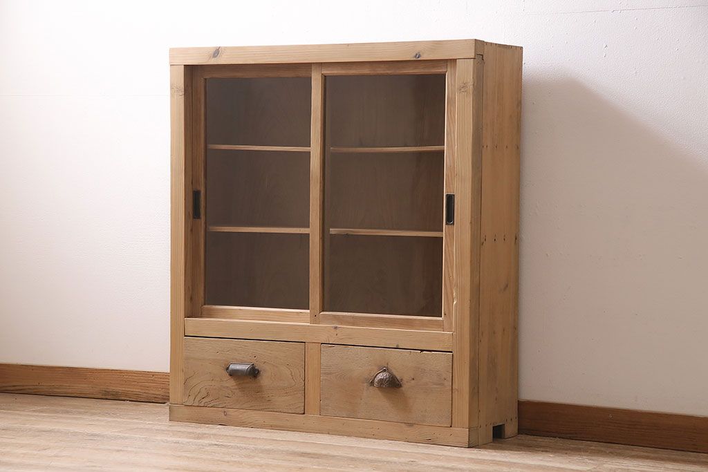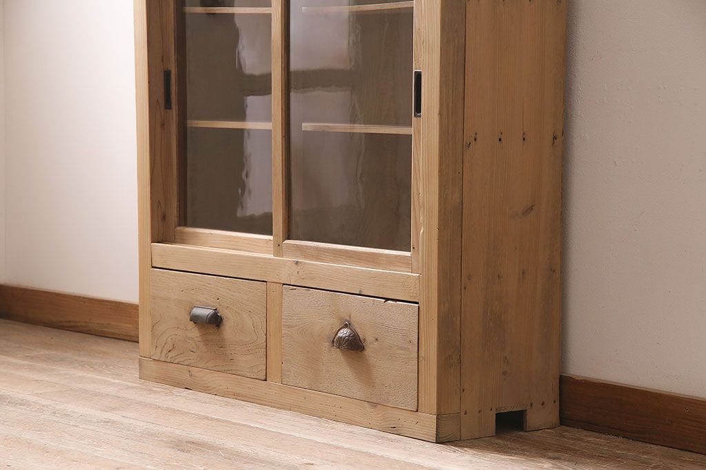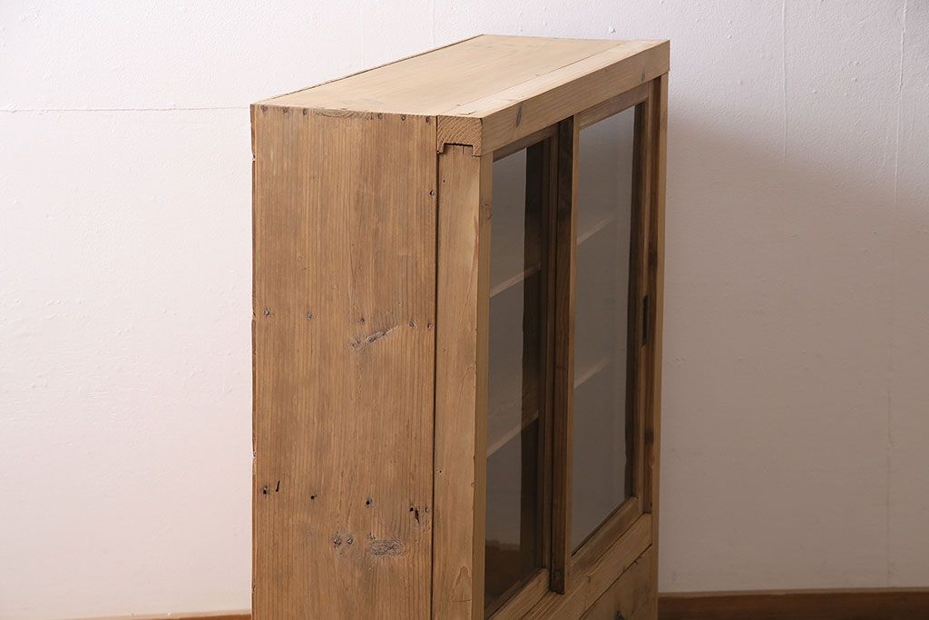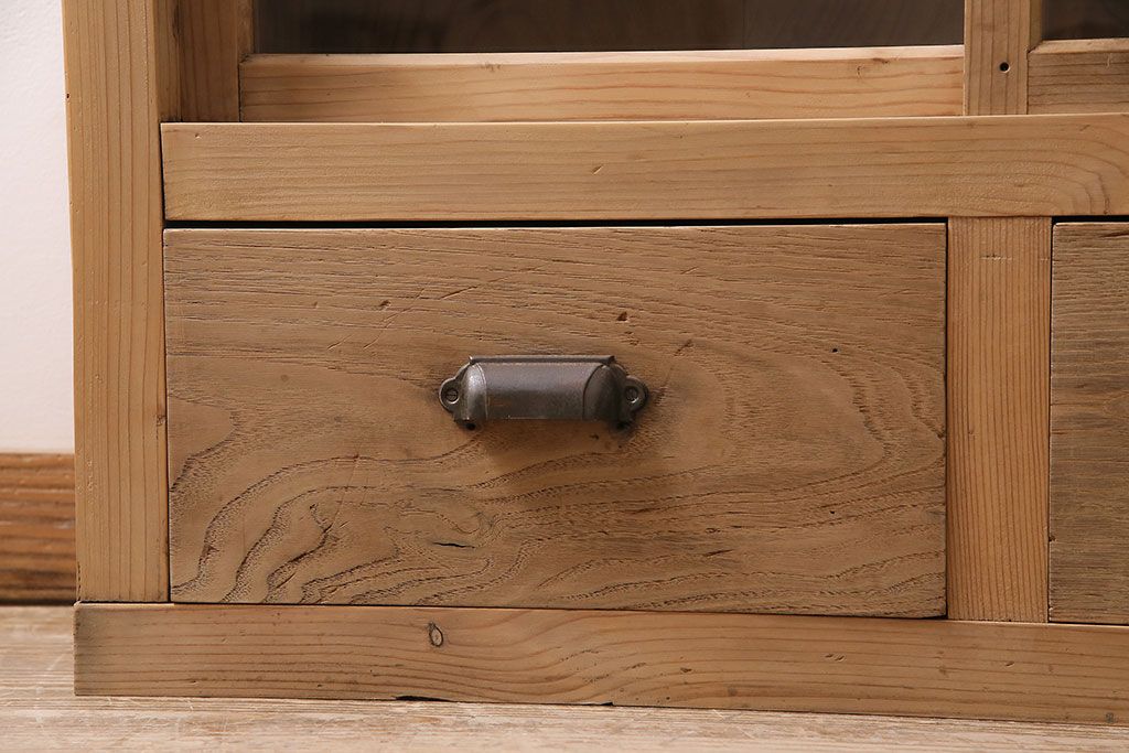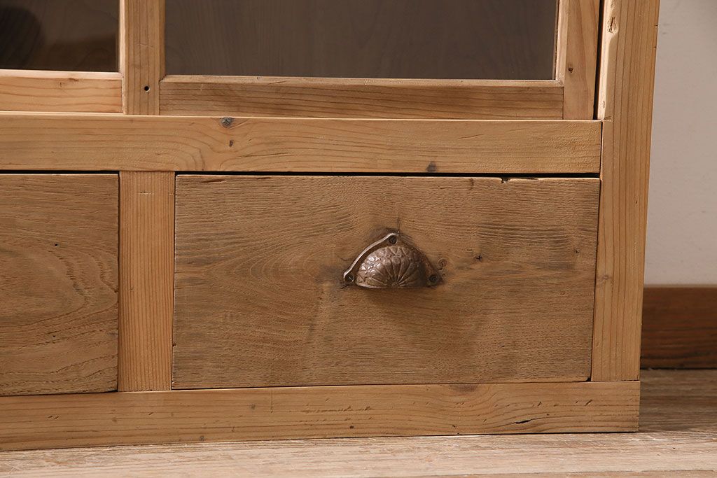 ストリップド(剥離)家具 > アンティーク家具 昭和初期 ストリップド(剥離) 古い木の風合いがレトロな雰囲気あふれる収納棚(戸棚、キャビネット)(R-038618)