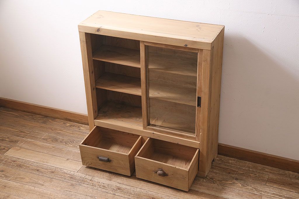 アンティーク家具 昭和初期 ストリップド(剥離) 古い木の風合いがレトロな雰囲気あふれる収納棚(戸棚、キャビネット)(R-038618)