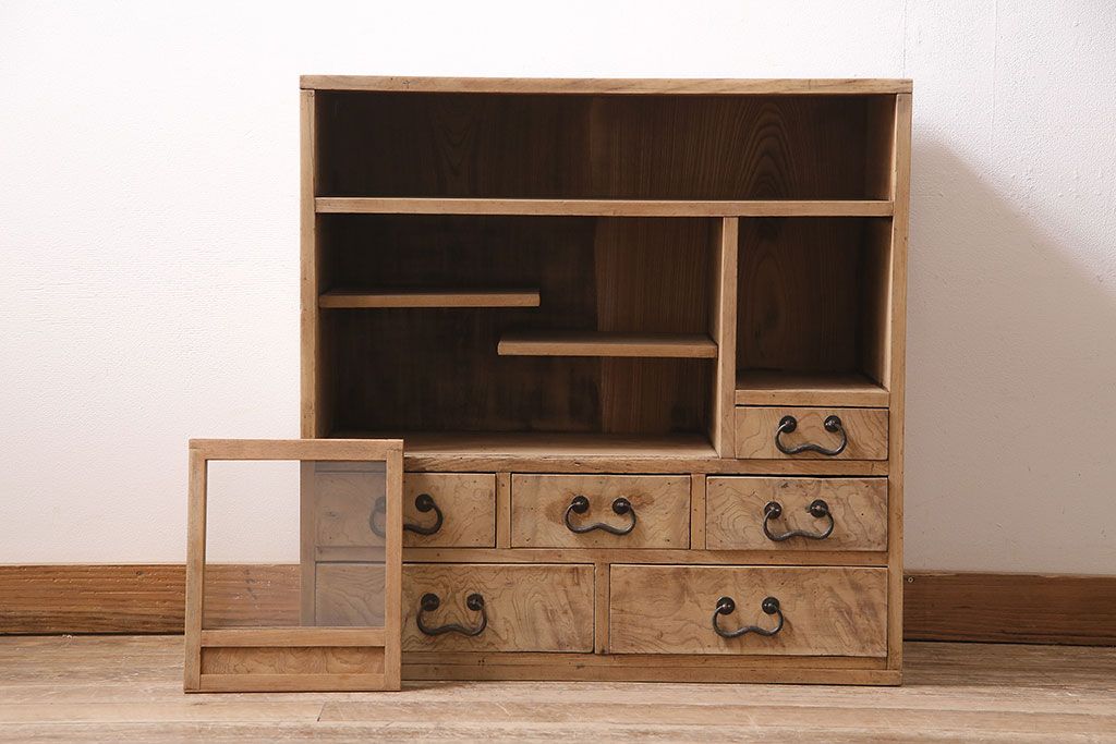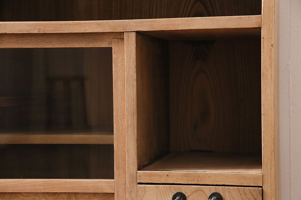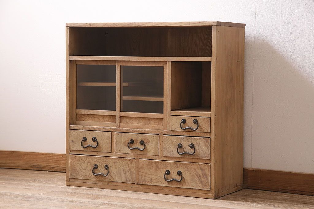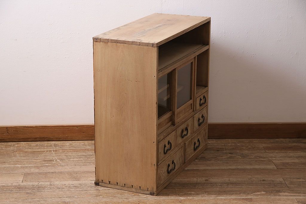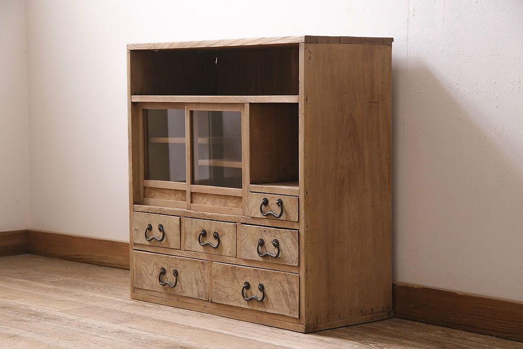 アンティーク家具 昭和初期 ストリップド(剥離) 味のある木肌が魅力の茶箪笥(飾り棚、収納棚)(R-046588)