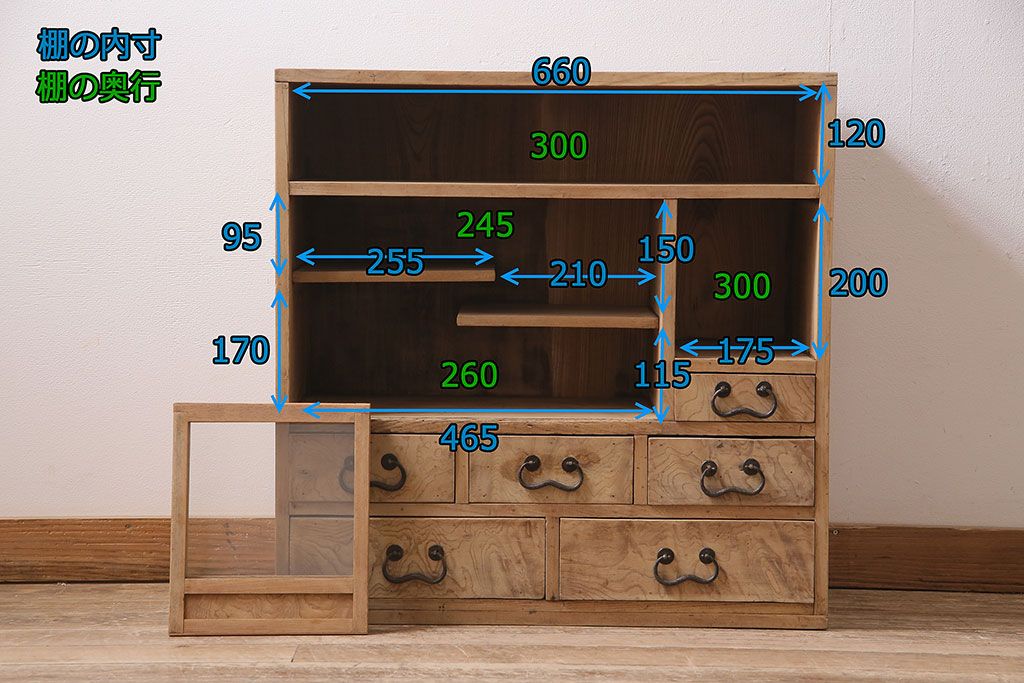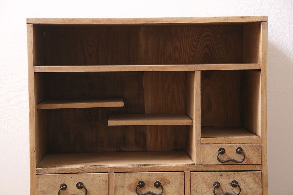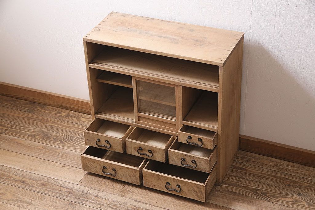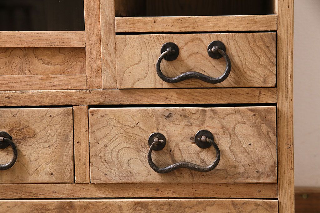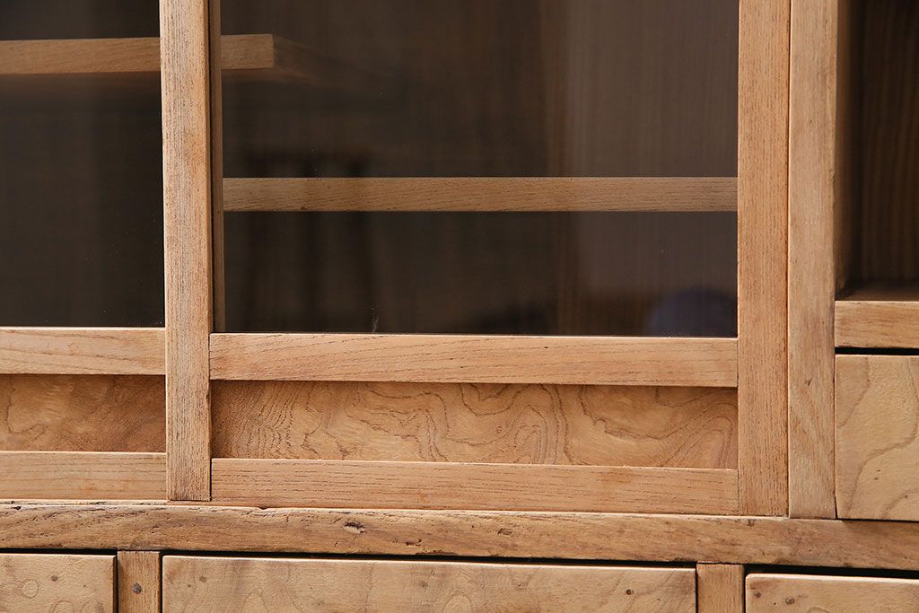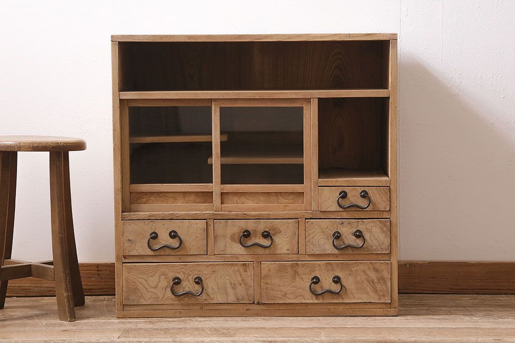 アンティーク家具 昭和初期 ストリップド(剥離) 味のある木肌が魅力の茶箪笥(飾り棚、収納棚)(R-046588)