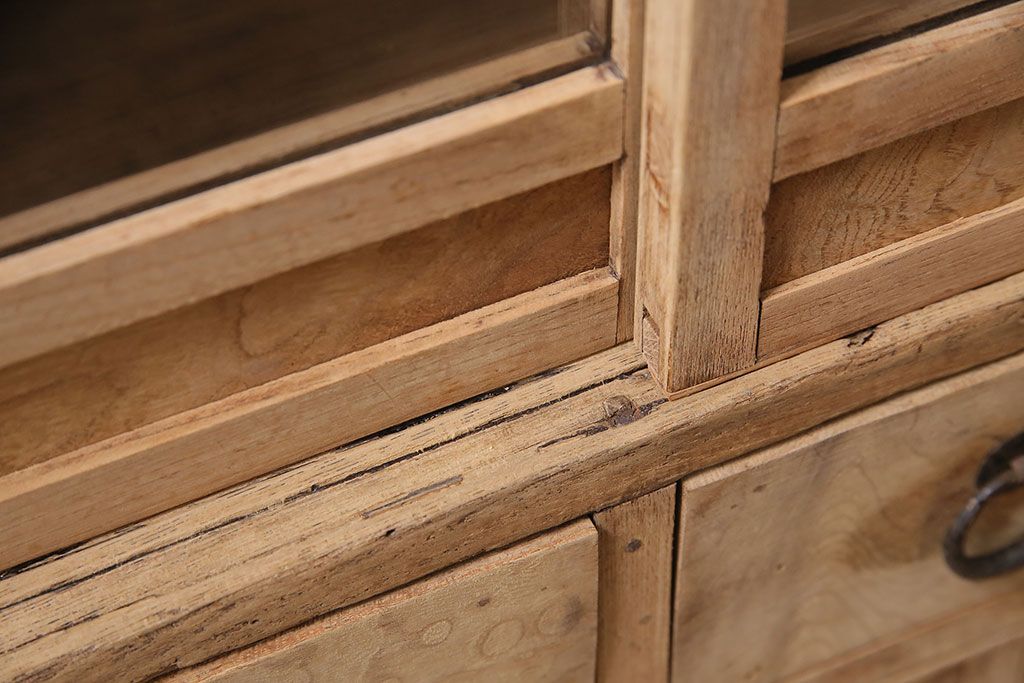 アンティーク家具 昭和初期 ストリップド(剥離) 味のある木肌が魅力の茶箪笥(飾り棚、収納棚)(R-046588)です。