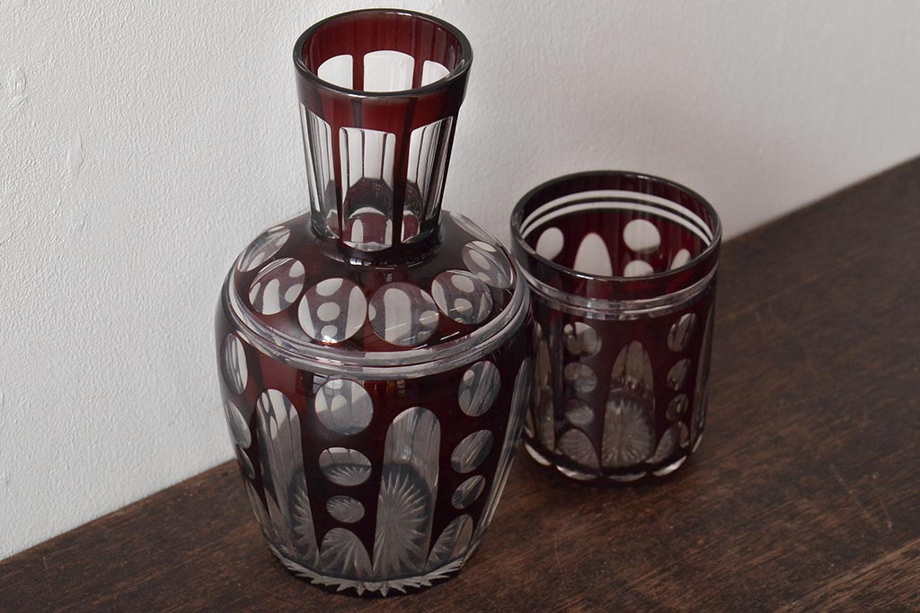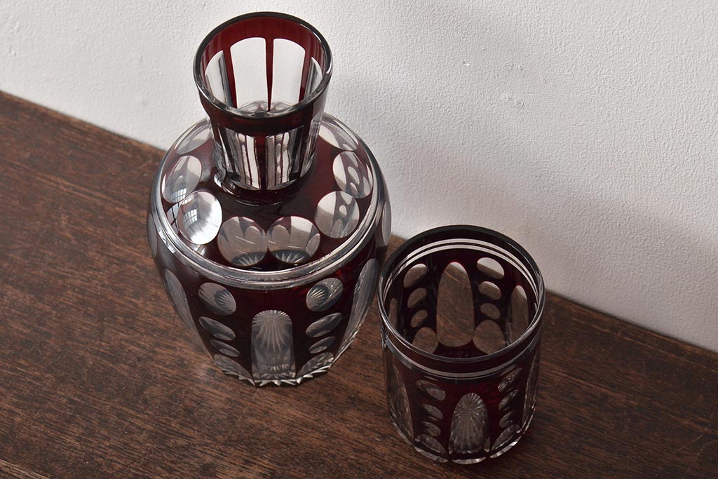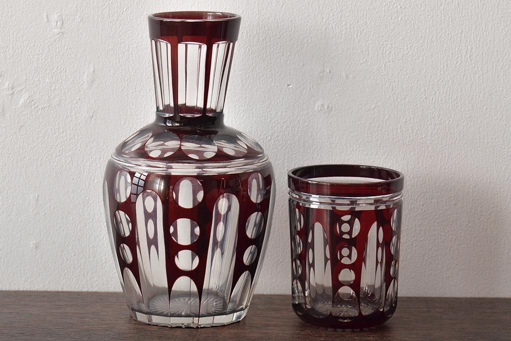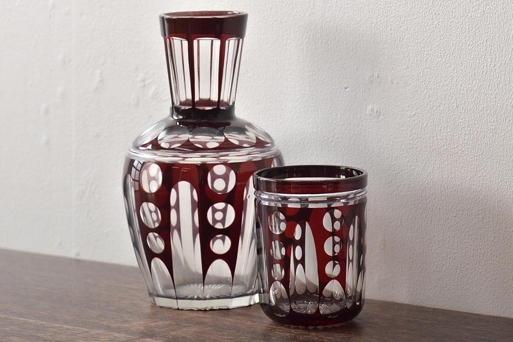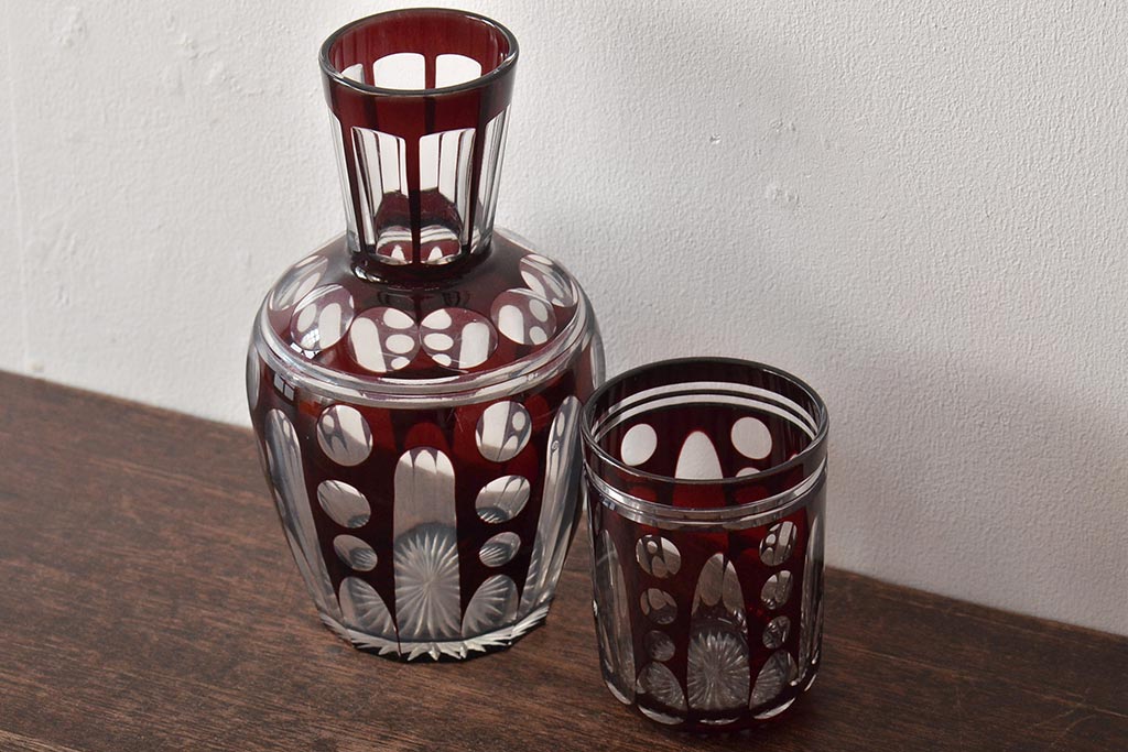 ラフジュ工房> 和食器・茶道具 > 昭和初期 赤切子 水差し・コップ(被せガラス、レトロ、ピッチャー、グラス)(R-046470)