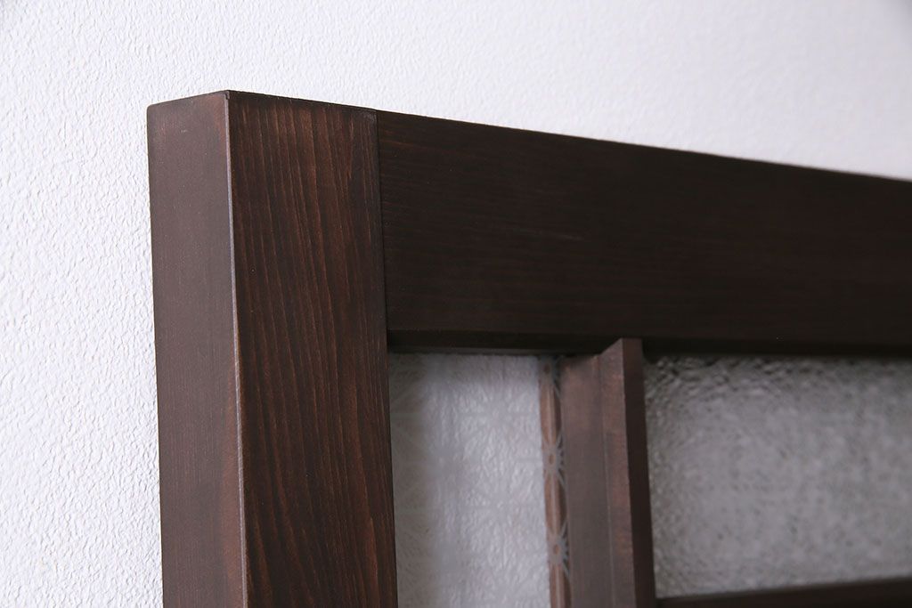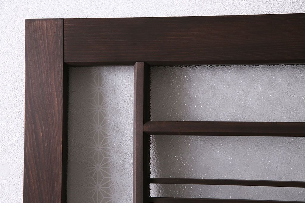 フルオーダー家具実績 > 引き戸を新規製作!当店商品を参考にデザイン。麻の葉模様ガラスを組み入れ。表示錠、引き手、戸車を取り付け。(建具)