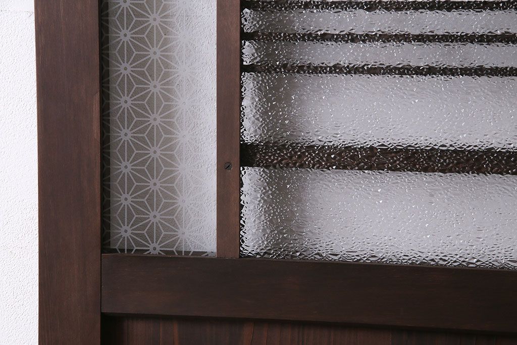 引き戸を新規製作!当店商品を参考にデザイン。麻の葉模様ガラスを組み入れ。表示錠、引き手、戸車を取り付け。(建具)