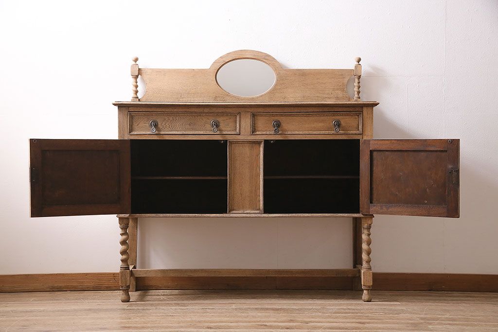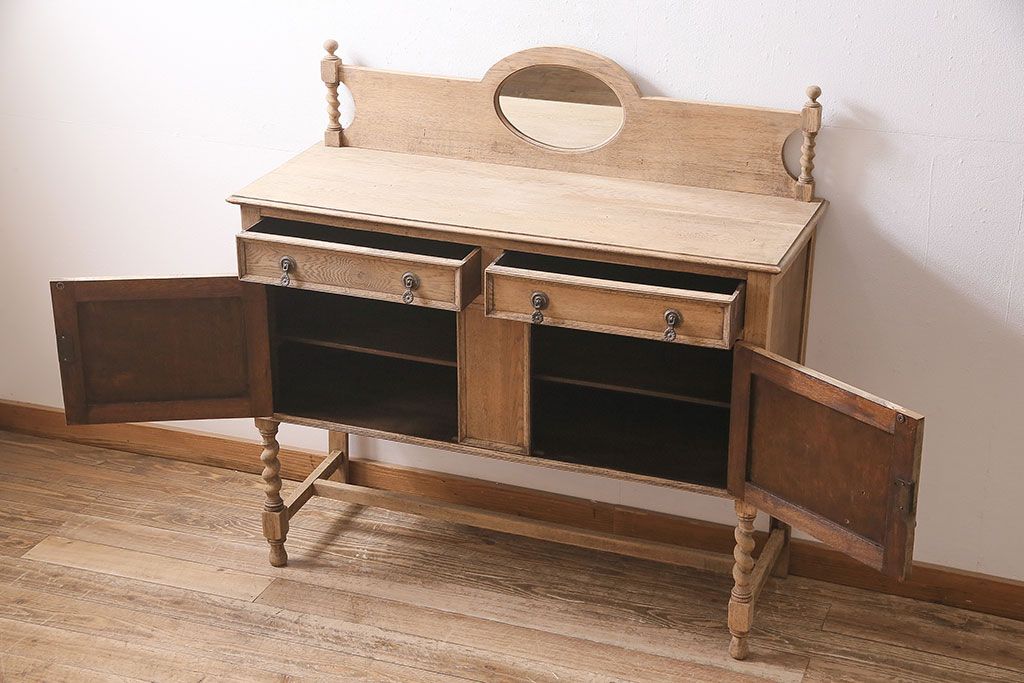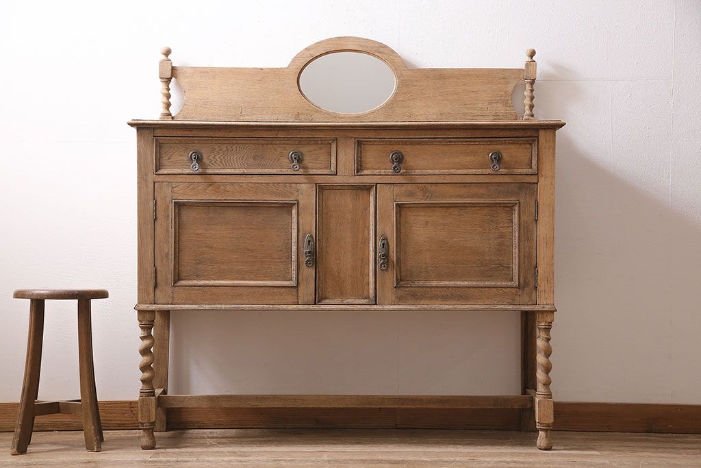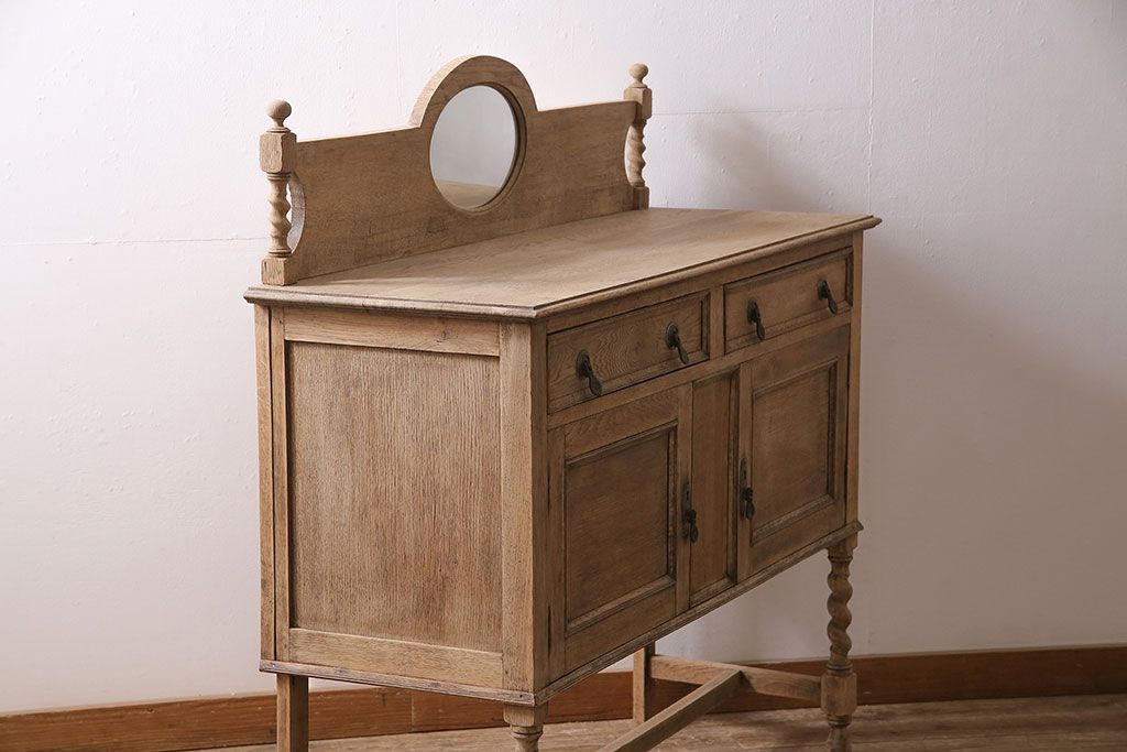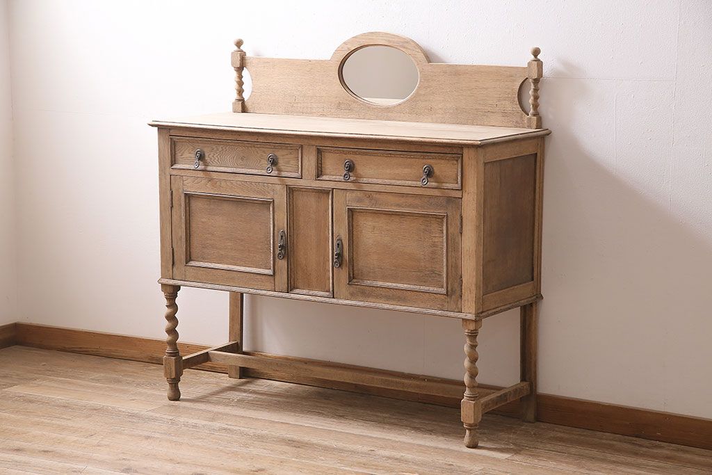 アンティーク家具 イギリスアンティーク ストリップド(剥離) オーク材 柔らかな雰囲気のミラーバックサイドボード(収納棚、キャビネット)(R-046662)