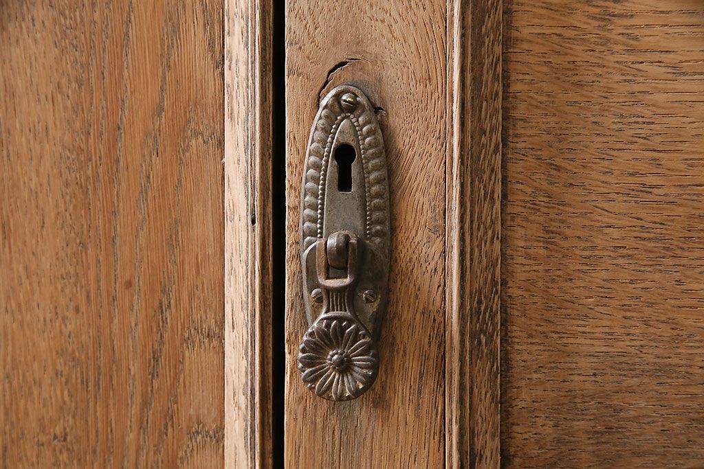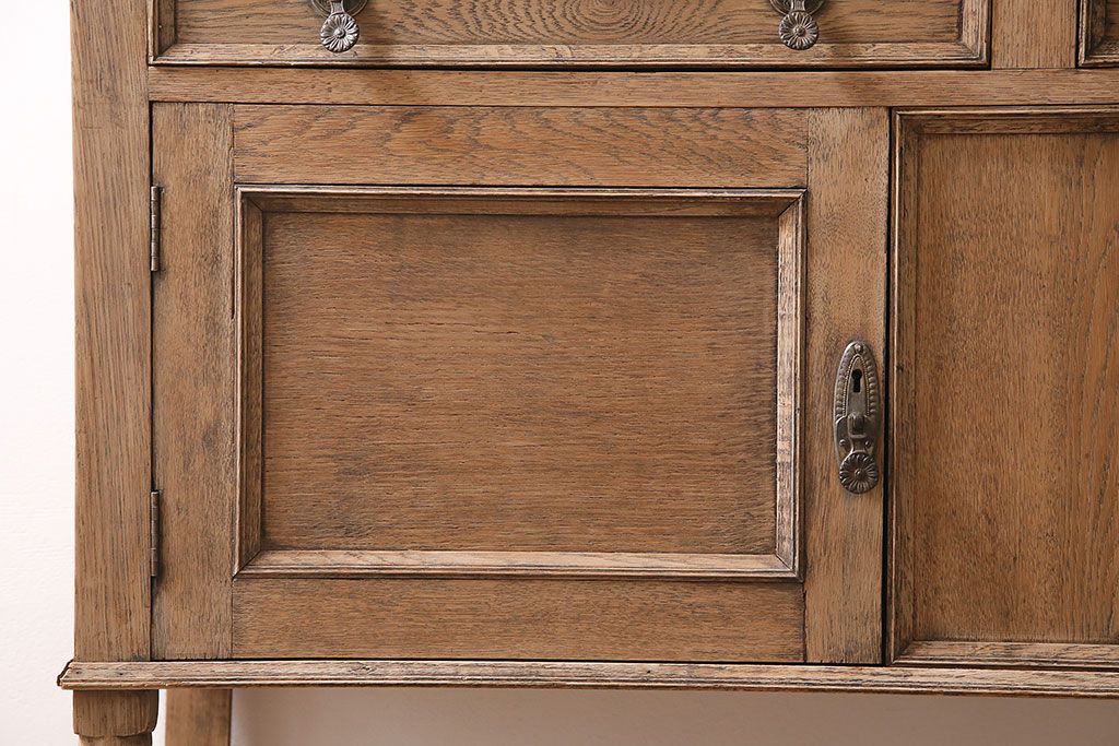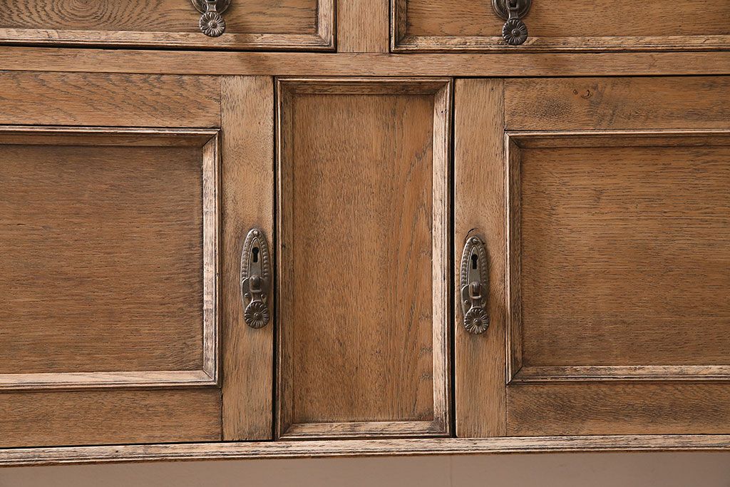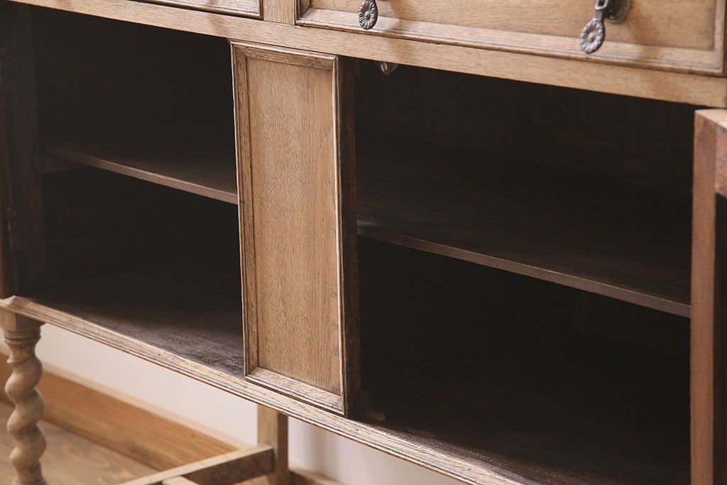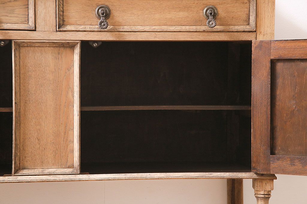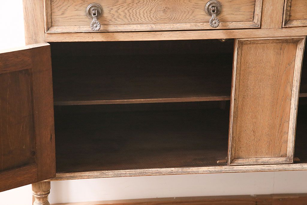 アンティーク家具 イギリスアンティーク ストリップド(剥離) オーク材 柔らかな雰囲気のミラーバックサイドボード(収納棚、キャビネット)(R-046662)