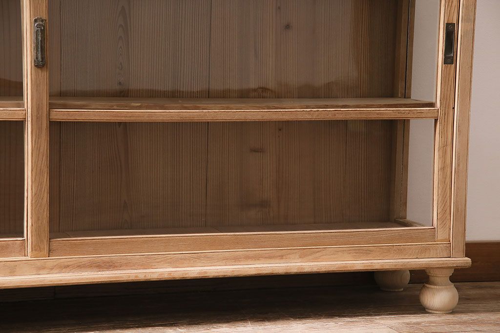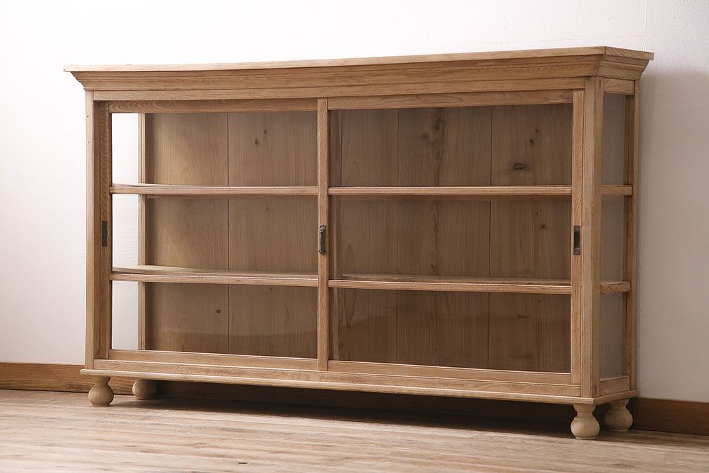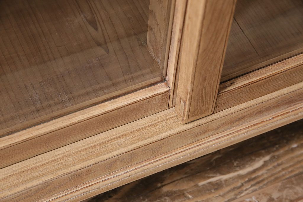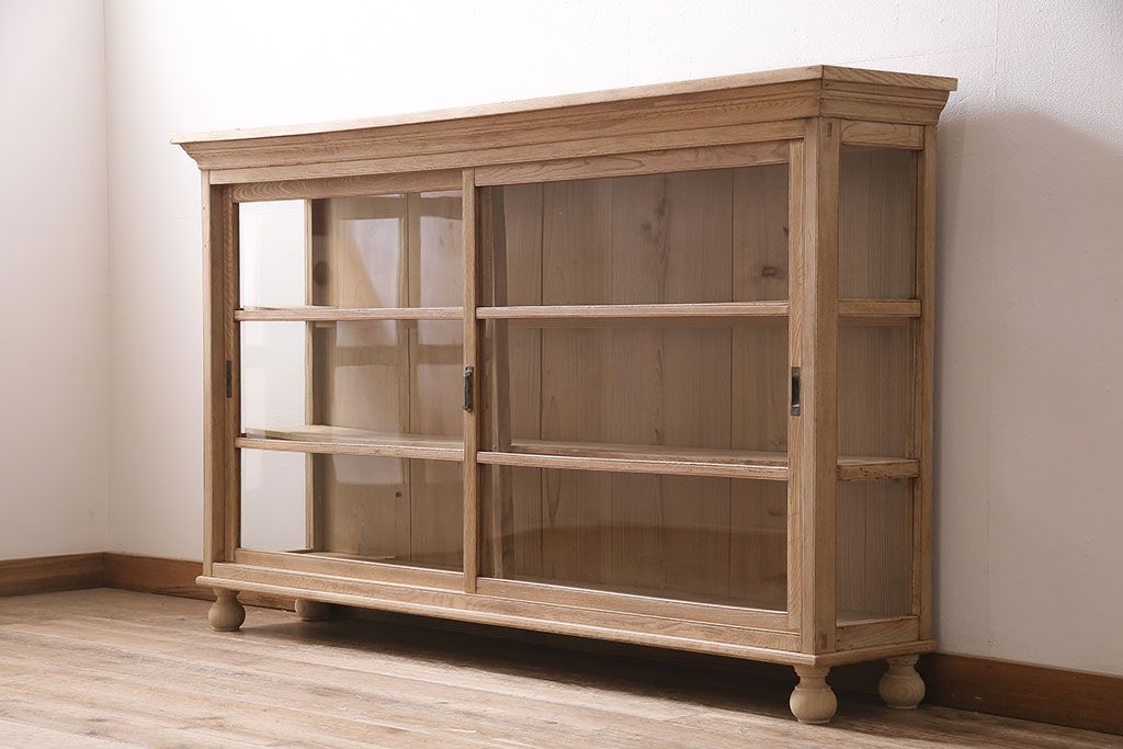 店舗什器 > アンティーク家具 昭和初期 ストリップド(剥離) 栓材の素朴な味わいが魅力的なガラスケース(飾り棚、ショーケース、陳列棚)(R-046629)
