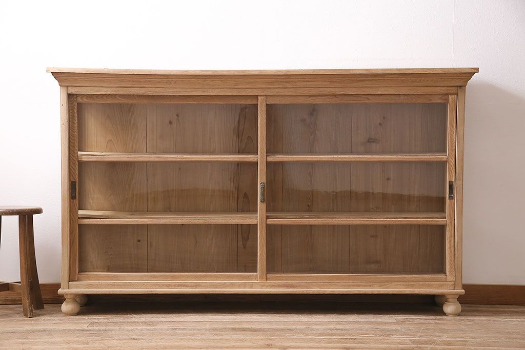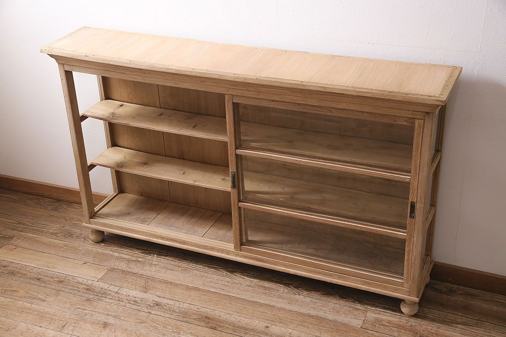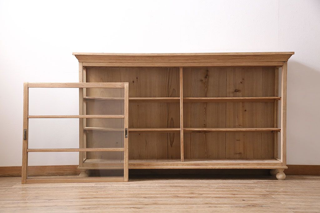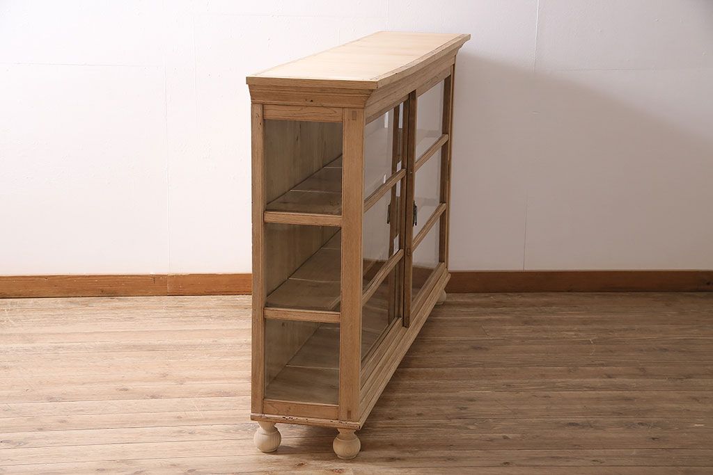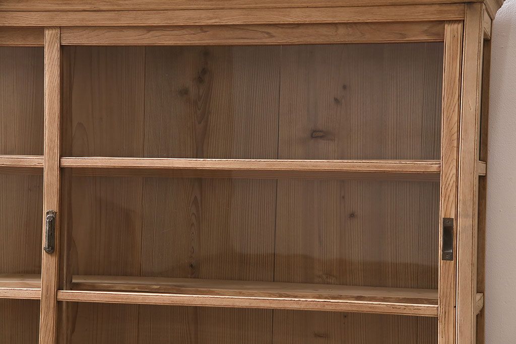 店舗什器 > アンティーク家具 昭和初期 ストリップド(剥離) 栓材の素朴な味わいが魅力的なガラスケース(飾り棚、ショーケース、陳列棚)(R-046629)
